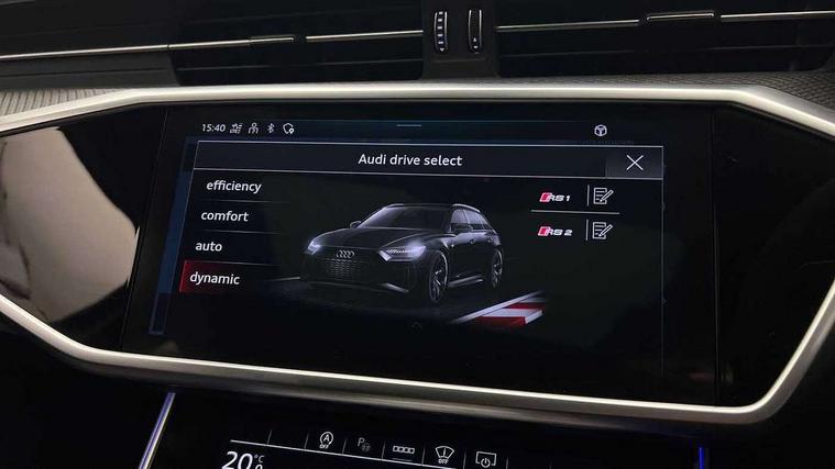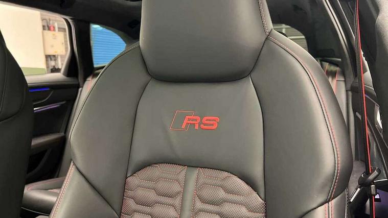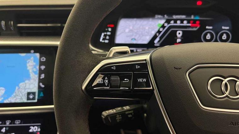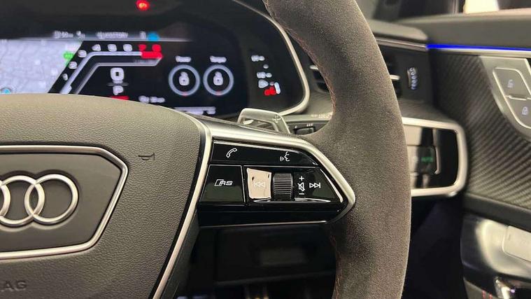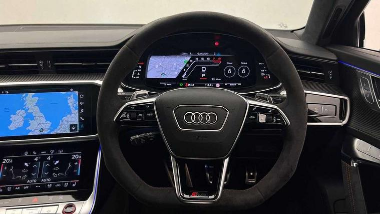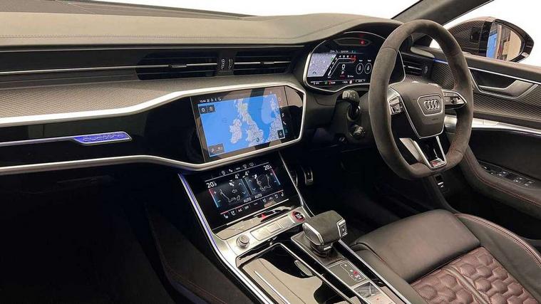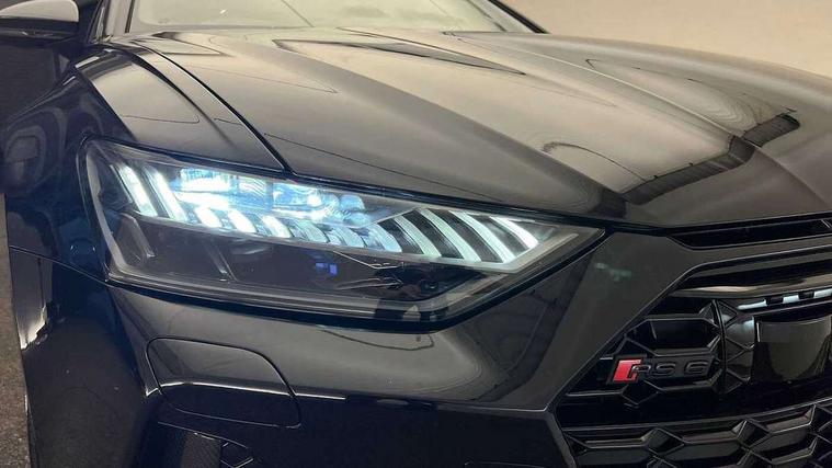 Audi connect safety and service (e-call), Audi connect with Amazon Alexa Integration, Audi drive select with 2 configurable RS modes, Audi smartphone interface with app store includes wireless Apple carplay, Android auto and Amazon alexa integration, Audi virtual cockpit plus with RS specific design and 12.3" display with additional graphic display options, Automatic start/stop system, Bluetooth interface, Dynamic all wheel steering, Head up Display, Lane departure warning system, MMI navigation with MMI touch + twin touch screens 10.1" and 8.6" with haptic and acoustic feedback, Night vision assistant, Operating buttons in black, glass look with haptic feedback including extended aluminium look, Power door closure, Power operated tailgate, Service interval indicator, Surround view camera system, Voice control system, 48V Mild hybrid technology, 73 litre fuel tank, Increased top speed to 174mph, Quattro sports differential, RS Sports suspension plus with dynamic ride control, 2 USB-C ports with charging functionality in the rear, Audi music interface, Bang & Olufsen 3D Premium Sound System, DAB Digital radio, 3rd brake light, Adaptive windscreen wipers with integrated washer jets, Black window trims, Electric front/rear windows, Electrically adjustable, heated and folding door mirrors with integrated LED indicators and kerb view function for passenger side, Frameless auto dimming interior rear view mirror, HD Matrix LED headlights with Audi laser light with dynamic light design and dynamic turn signal, Headlight washers, Heat insulating darkened glass in side and rear windows, LED daytime running lights, LED rear combination lamps with dynamic light design and dynamic turn signal, Panoramic glass sunroof, Privacy glass with rear/side windows and acoustic glazing side windows, Radiator grille in honeycomb structure, large front air inlets and rear diffuser in gloss black, Rain and light sensors, Rear side wing doors, Rear wiper, RS front bumper with air inlets on both side, RS rear spoiler in body colour, RS sports exhaust system with high gloss black oval tailpipe trims, 3 seat bench in 2nd row, 4 way electric lumbar support for driver and front passenger, 4 zone deluxe automatic climate control, Audi phone box light, Electric steering wheel adjustment, Electrically adjustable front seats with driver memory, Entry LED with RS Performance projection (Audi Beam) in front and rear, Front and rear headrests, Front centre armrest, Front seat ventilation, Heated front and rear seats, Illuminated front and rear door sill trims with aluminium inlays and RS6 logo, ISOFIX and Top Tether child seat mounting for the outer rear seats, ISOFIX child seat mounting and Top Tether with front passenger airbag deactivation, RS sports seat plus, Single passenger seat, Stainless steel pedals and foot rest, Valcona leather upholstery with perforated honeycomb and coloured RS logo, Air quality pack - RS6, Ambient lighting pack plus - RS6, City assist pack - RS6 Performance/carbon/vorsprung, Park assist pack with park assist plus - RS6, Storage pack - RS6, Tour pack - RS6 Performance/carbon/vorsprung, 3 point rear seatbelts, Airbags - Front side, front and rear including head, Direct tyre pressure monitoring system, EBD - Electronic brakeforce distribution, Electromechanical parking brake, Electronic Stability Control (ESC) including ABS, ASR and EDL, Extended pedestrian protection measures, Manual child lock in rear doors, Rear side airbags, Warning triangle and first aid kit, Anti theft alarm with tow away protection, Immobiliser, Keyless Go, Remote central locking, Performance tyres, Tyre repair kit,