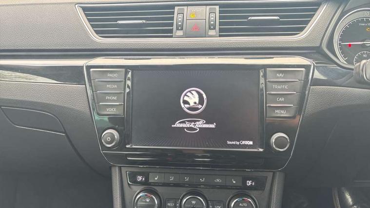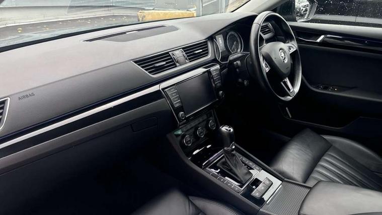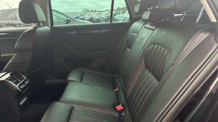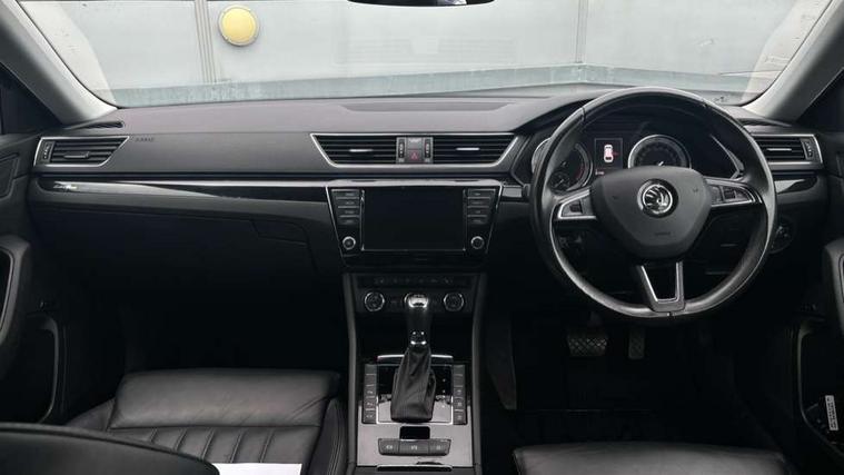 Adaptive cruise control, Colour maxi dot trip computer, Columbus colour 8" touch screen satellite navigation system, Radio/MP3/aux-in/USB, SD card and Wi-fi, Drive mode selector, Dynamic steering response (DSR), Electro-mechanical PAS, External temperature gauge, Fatigue detection system, Front assistant collision mitigation, Lane change assist and blind spot monitor, Park assist (inc front/rear parking sensors), Power boot opening and closing, Remote fuel cap release, Service interval indicator, SmartLink, Speed warning indicator, Diesel particulate filter, Dynamic chassis control, XDS electronic differential lock, Canton sound system, DAB Digital radio, Aero wiper + intermittent function, Auto dimming rear view mirror, Bi-Xenon headlights with AFS + integrated headlight washers + LED daytime running lights, Body colour bumpers, Body colour door mirrors and handles, Chrome plated radiator grille, Cornering front fog lights, Front and rear electric windows, Heated windscreen, LED brake lights, Light assistant (coming home/tunnel light), Rain sensor, Rear wiper, Silver roof rails, Sunset glass from b-pillar back, Tinted glass, 12v power point in centre console, 12V power point in luggage area, 3 rear height adjustable headrests, 3 Spoke leather multi function steering wheel, Boot net, Electric front seats with memory function, Electric lumbar support, Electrically operated Boot release, Front and rear cupholders, Front armrest with storage box, Front/rear floor mats, Heated front and rear seats, Height/reach adjust steering wheel, Height/tilt adjustable front headrests, Illuminated air conditioned glovebox, Isofix on 2nd row rear seats, Leather gearknob and handbrake lever, Leather upholstery, Luggage compartment lighting, Removable LED light in boot, Split folding rear seats, Sunglasses storage, Ticket holder, Tri zone climate control, Umbrella compartments in front doors with umbrellas, Virtual pedal for boot opening, LED package plus - Superb, LED rear pack - superb, 3 point height adj front seatbelts + pretensioners, 3 rear 3 point seatbelts + pretensioners, ABS + EDL + ASR + MSR + ESC, Cornering brake control (CBC), Curtain airbags, Door open warning, Driver and passenger seatbelts with warning light, Driver/Front Passenger airbags, Driver/front passenger side airbags, Drivers knee airbag, Electromechanical parking brake, Hill hold control, Hydraulic Brake Assist (HBA), Multi-Collision braking, Passenger airbag deactivate switch, Rear door child safety locks, Tyre pressure monitor, Anti theft alarm with interior monitor and tilt sensor, Anti-theft wheel bolts, Immobiliser, Keyless entry and start, Remote central locking with SAFE system, Piano black inserts,