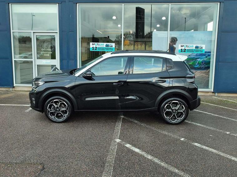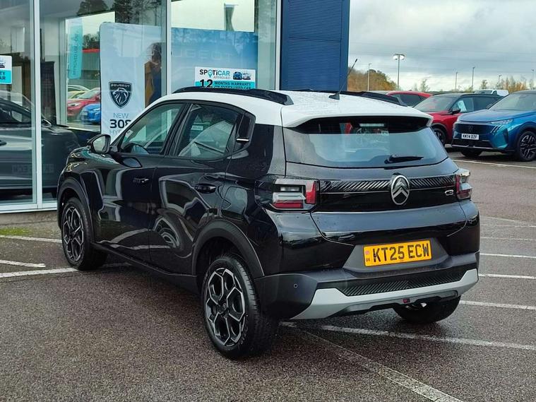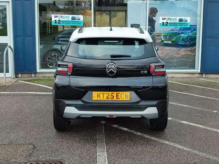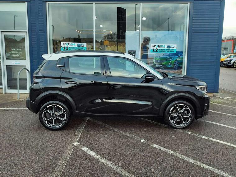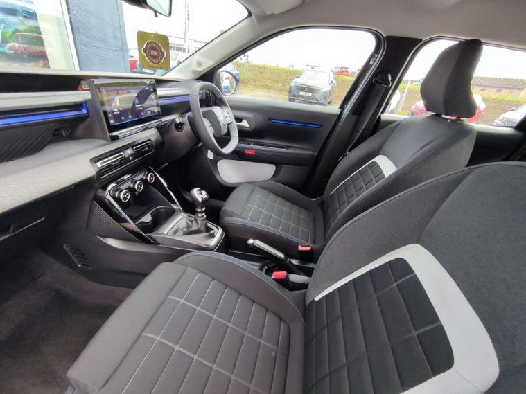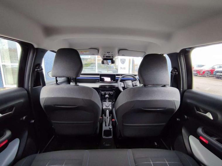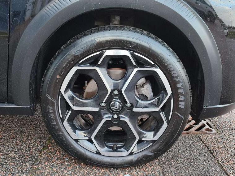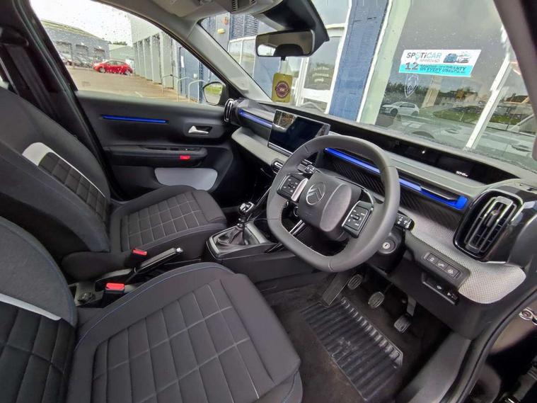 1x USB-C connection on dashboard, 1x USB-C fast charge in row 2, Active lane departure warning system, Citroen connect box emergency and assistance system, Connected services, Cruise control + speed limiter, eCall emergency call system, Electric power steering, Exterior temperature display, Head up Display, Manual gearshift indicator, Multi function trip computer, Rear parking sensors, Advanced comfort suspension with progressive hydraulic cushions, DAB digital radio, 6 loudspeakers, 10.25" capacitive touchscreen, wireless mirror screen includes apple carplay/android auto and bluetooth, 3D rear light signature, Automatic activation of hazard warning lights, Automatic headlights, Black roof bars, Black wheel arch extensions, Body colour bumpers, Electric front power windows with auto up/down for the driver and auto down for passenger, Electric rear power windows, Electrically heated, folding and adjustable external rear view mirrors, Front and rear skid plates in grey, Front intermittent wipers, Gloss black exterior door handles, Gloss black finish B and C pillar, Gloss black rear view mirror caps, Heated rear window, Intelligent beam headlights, LED daytime running lights, LED headlights with electric levelling, LED third brake light, Rear roof spoiler, Rear side wing doors, Standard day night switchable interior rear view mirror, Tinted side windows, Turn indicators integrated into rear view mirrors, 1 litre bottle storage in front and rear door pockets, 1/3 to 2/3 split folding rear seat, 12V socket on console, 4x anchoring rings on boot, Advanced comfort front and rear seats, Bag support hook in boot, Central storage with 2 cupholders, Chrome effect interior door handles, Closed glove box, Cloth upholstery, Driver and passenger's sun visor with courtesy mirror, Driver's seat height adjustment, Fixed boot light, Front seats adjustable with forward back slide and adjustable backrest, Height adjustable front head restraints, Height/reach adjust steering wheel, ISOFIX mounting on outer rear seats with top tether and labels indicating fixing points, Leather effect steering wheel with gloss black and chrome elements and integrated audio/telephone/cruise control/speed limit controls, LED front lighting panel with map reading lights, Manual air conditioning, Map pockets in back of driver and front passenger seats with additional pocket for smartphone storage, Matt black gear knob with gloss black insert, Padded fabric armrests in front and rear doors with labels, Parcel shelf, Seatbelt unfastened on the move audible and visual alert for front and rear seats, Single front passenger seat, Three rear headrests, Safety pack - C3 Plus and Max, Visibility pack - C3 Plus and Max, ABS, Child locks on rear doors, Driver and front passenger seatbelts with pyrotechnic pretensioners and force limiters, Driver's airbag, ESP with anti skid system, Front passenger airbag, Front passenger airbag deactivation, Front side airbags + front/rear curtain airbags, Hill start assist, Manual parking brake, Mono-tone horn, Three rear 3-point seatbelts, Tyre pressure monitoring system, Automatic door and boot locking when moving off with automatic unlocking in case of impact, Central locking with deadlocks, Connected anti theft alarm (Volumetric and perimetric with tilt sensor), Immobiliser, Remote control central locking with 1x plip key and 1x non plip key, 2 side air vents and 2 central air vents on dashboard, Grey decor on dasbhboard, Grey decor on front doors, 17" Atacamite diamond cut bi-tone alloy wheels with locking wheel nuts,