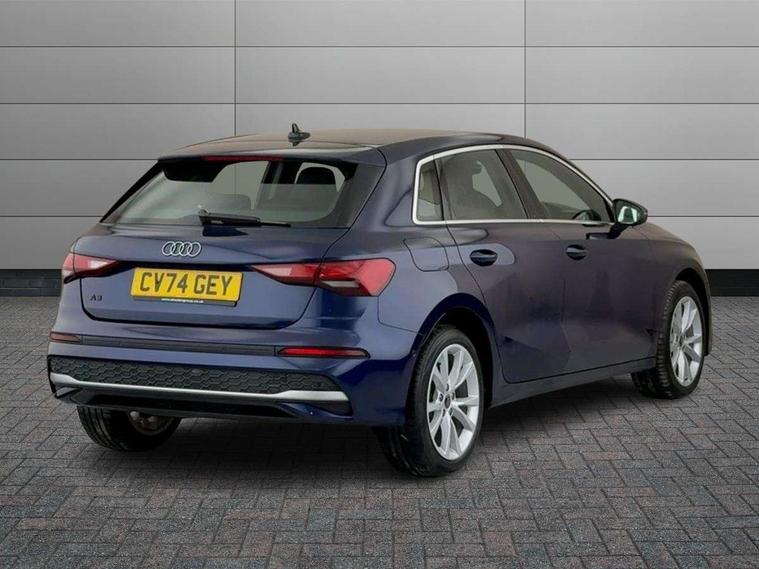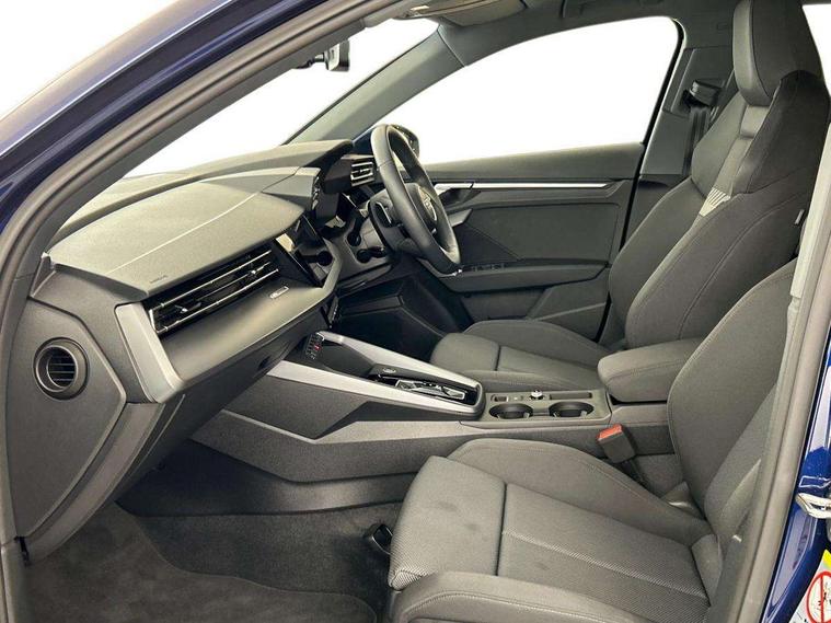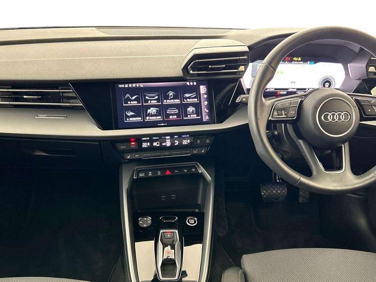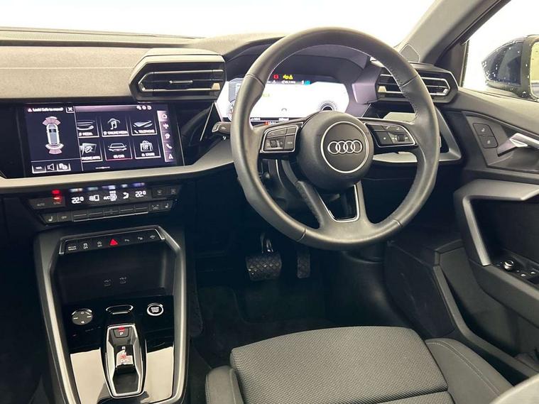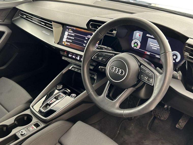 Adjustable speed limiter, Audi drive select, Audi smartphone interface with app store includes wireless Apple carplay, Android auto and Amazon alexa integration, Audi virtual cockpit plus - 12.3" full HD resolution dynamic digital instrument cluster, Automatic start/stop system with recuperation, Bluetooth interface, Camera based traffic sign recognition, Collision avoidance assistant, Cruise control, Distraction and Fatigue warning, e-Call (emergency call), Electromechanical power speed sensitive steering, Lane departure warning system, MMI Navigation Plus with high resolution 10.1" colour touch screen display, Park Assist with parking system Plus, Service indicator, Tailgate, Trip computer, Voice control system with natural language interaction, Standard suspension, Audi Phonebox light with wireless charging, Audi sound system - 10 loudspeakers including centre loudspeaker and subwoofer, DAB Digital radio, USB ports with charging function in the rear, 3rd brake light, Acoustic glass windscreen, Aluminium window trim, Auto dimming frameless rear view mirror, Body colour exterior mirrors, Body colour roof spoiler, Electrically adjustable/heated/folding/auto dimming door mirrors with integrated LED indications + kerb view function for passenger side, Exterior model badging, Front electric windows, Front radiator grill in high gloss dark chrome, Front side air inlets in grained matt black with silver frame, Heat insulating glass windscreen, LED daytime running lights, LED headlights and halogen rear lights, Light and rain sensors, Rear diffuser and grill in grained matt black with silver frame, Rear electric windows, Rear side wing doors, Rear window, rear door windows and rear side windows in clear glass, Rear wiper, 12V socket and storage compartment in front centre console, 3 seat bench in 2nd row, 3 spoke leather multifunction steering wheel with gear shift paddles, 3-zone deluxe automatic air conditioning, 4 way electrically adjustable lumbar support for driver and front passenger, 60/40 split folding rear seat bench, Front and rear headrests, Front centre armrest, Front door sill trims with aluminium inlay, Front/rear floor mats, Heated front seats, Height and reach adjustable steering wheel, Manual boot compartment lid, Manually adjustable front seats, Routine cloth upholstery with front sports seats, Seat side bolsters, Single front passenger seat, Steel grey cloth headlining, Aluminium interior elements pack - A3 Sportback, LED interior lighting pack -A3, 3x3 point rear seat belts, Driver and front passenger airbag with passenger airbag deactivation, Electronic Stabilisation Control (ESC) including ABS, ASR and EDL, First aid kit with warning triangle and 2 safety vests, Front side airbags with head airbags and interaction airbag, Hill hold assist, Pre-sense front with pedestrian and cyclist detection, Seatbelt monitoring, Tyre pressure loss indicator, Anti theft alarm, Anti-theft wheel bolts, Electronically operated child locks, Immobiliser, Remote central locking with safelock, Inlays in volcano grey fine paint finish,