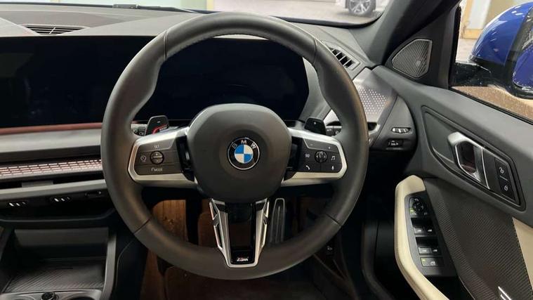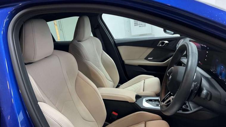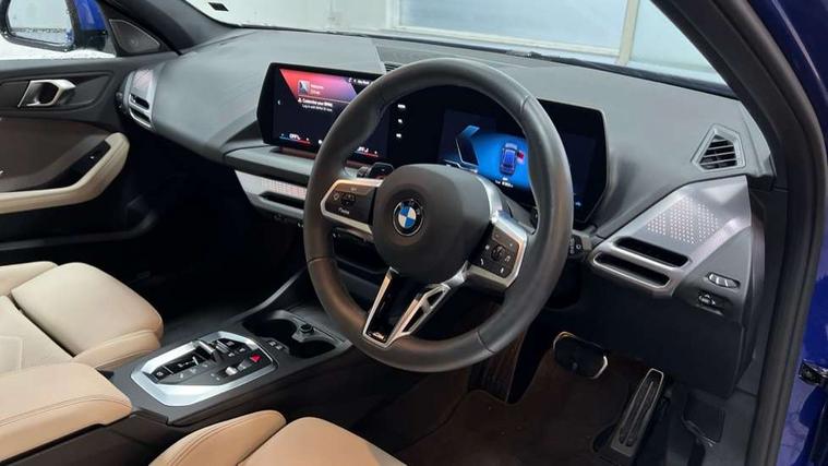 Active guard plus, Attentiveness assist, Bluetooth / WiFi interface for wireless connection of mobile terminal devices and audio streaming, BMW ConnectedDrive online services, BMW Live cockpit plus, BMW Teleservices, Check Control warning system for monitoring of lights and door/luggage compartment open warning, Cruise control with speed limiter, Eco pro mode, Electric power steering with Servotronic steering optimised at all speed ranges, Front and rear parking sensors, Front axle single joint with specific axle kinematics to minimise drive influences on steering + provide increased rigidity agile driving behaviour, Integrated owners handbook, Lane departure warning system, Oil sensor for level and grade, On board computer, Optimum shift indicator, Park assist including reversing assistant, lateral parking aid and reversing assist camera, Personal Profile, Pull away assistant, Rigidly mounted rear subframe - Multi link construction with separate spring / damper configuration and excellent driving characteristics, Speed limit Info including no-overtaking indicator, Speedometer, 49 litre fuel tank, Aluminium lightweight construction, Anti roll bar front and rear, Balancer shaft, Double VANOS twin scroll turbocharging system, Drive Performance Control, Electronic differential lock, High precision injection, M Adaptive suspension, Petrol Particulate Filter, Twin tube gas filled shock absorbers with degressive characteristic curve, VALVETRONIC engine management, DAB Digital radio, Auto dimming rear view mirror, Automatic headlight beam throw control, Automatic windscreen wipers and automatic headlight, Body colour door handles, Body colour mirror caps, Body colour roof trims, Chrome 'M' logo side designation, Chrome exhaust twin tailpipes round 90mm in left, Chrome kidney grille frame with Satin Aluminium struts, Direction indicator side lights in exterior mirrors, Electrically adjustable exterior mirror with mirror adjustment switch on drivers armrest and aspheric on driver side, convex on passenger side, Fading support, Folding side mirrors with auto dimming/folding wing mirrors with auto dimming, Follow me home headlights, Front and rear bumper system with replaceable deformation elements, Front and rear electric windows with open and close fingertip control, anti trap facility and comfort closing, Front door sill finishers in black plastic with M designation in metallic look, Green tinted heat protection glazing, High gloss shadowline window frame, Recess cover mirror frames and B/C pillar embelisher trim, High level third brake light, Integrated front windscreen with washer jets, LED daytime running lights, LED eyebrow turn indicators, LED front fog lights, LED Headlights, Lightweight engineering, Matt black air guide grilles, Matt black wheel arch trim, Nearside reverse light in rear light cluster, Preparation for high beam assistant, Rear fog lights, Rear side wing doors, Rear window wiper, Shark fin antenna, Trailer stabilisation logic, Visible VIN plate, Welcome lighting, 12V power socket in front centre console with blanking plug, 3 rear seat head restraints, 3 seat bench in 2nd row, 3 spoke sports leather steering wheel with black leather and stitching, pearl chrome decorative finish, specific M Badge, Anthracite headlining, Black boot net with lashing eyes, Cargo function on 2nd seat row, Child seat ISOFIX attachment for two outer rear seats and front passenger seat with anchorage points, Conditioned based service, Driver and front passenger backrest net on rear, Driver and front passenger seat heating, Driver side folding compartment in instrument panel, Folding rear clothes hook, Four grab handles integrated in roof lining, Front and rear door pockets with bottle holders, Front and rear side armrest integrated into door trim, Front armrest, Glove compartment, Height adjustable front head restraints, Luggage compartment for bag hooks on left and right, foldable luggage compartment liner and four lashing eyelets, Manual adjust steering wheel, Multi-function controls for steering wheel, Rear seat backrest with manual 60:40 split folding with 3 top tether clips integrated on rear of seat panels, Single front passenger seat, Storage compartment in centre console, Storage compartment in luggage compartment, Stowage of the parcel shelf in luggage compartment trim, Sun visors with vanity mirrors and insert tab, Two front centre console cupholders, Type C two USB ports in rear centre console, Velour floor mats, Connected pack professional - 1 Series, Interior lights pack - 1 Series, M Sport exterior styling aerodynamics pack - 1 Series, 2 tone horn, 3 point seatbelts on all seats, front pyrotechnic belt tensioners, stopper and belt force limiters, rear coded belt buckles, Airbags - Front driver/passenger, front and rear curtain head protection, front side, manual deactivation of front passenger airbag, Anti lock braking system (ABS) with brake assist, BMW emergency call, Brake drying, Braking readiness, Child proof locking system in rear door, Comfort modes, Cornering brake control, Crash sensor activating of airbags, Unlocking doors, hazard warning lights, interior light, safety battery terminal, Driver and front passenger seat belt security check, Dynamic stability control + (DSC+), Dynamic Traction Control - DTC, Electrically operated hand brake including automatic hold function, Front and rear disc brakes, Seatbelt warning, Side impact protection, Tyre pressure monitoring system, Warning triangle and first aid kit, Central locking switch for all doors, fuel filler cap and luggage compartment, Deadlocking function system to all doors, Drive away locking system on all doors and luggage compartment with de-activated in iDrive settings, Locking wheel bolts, Remote control with integrated key with High-gloss Black inlay and M designation and 1 button for open/ close lock, window, open luggage compartment, Start/stop button illuminated in centre console with keyless engine start and auto 