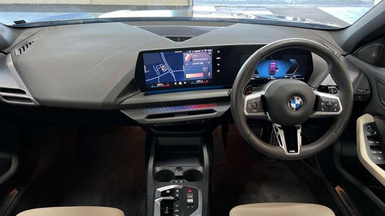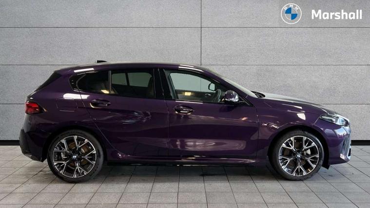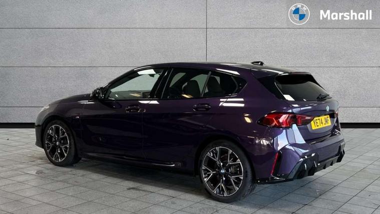 Active guard plus, Attentiveness assist, Bluetooth / WiFi interface for wireless connection of mobile terminal devices and audio streaming, BMW ConnectedDrive online services, BMW Live cockpit plus, BMW Teleservices, Check Control warning system for monitoring of lights and door/luggage compartment open warning, Cruise control with speed limiter, Eco pro mode, Electric power steering with Servotronic steering optimised at all speed ranges, Front and rear parking sensors, Front axle single joint with specific axle kinematics to minimise drive influences on steering + provide increased rigidity agile driving behaviour, Integrated owners handbook, Lane departure warning system, Oil sensor for level and grade, On board computer, Optimum shift indicator, Park assist including reversing assistant, lateral parking aid and reversing assist camera, Personal Profile, Pull away assistant, Rigidly mounted rear subframe - Multi link construction with separate spring / damper configuration and excellent driving characteristics, Speed limit Info including no-overtaking indicator, Speedometer, 49 litre fuel tank, Aluminium lightweight construction, Anti roll bar front and rear, Balancer shaft, Double VANOS twin scroll turbocharging system, Drive Performance Control, Electronic differential lock, High precision injection, M Adaptive suspension, Petrol Particulate Filter, Twin tube gas filled shock absorbers with degressive characteristic curve, VALVETRONIC engine management, DAB Digital radio, Auto dimming rear view mirror, Automatic headlight beam throw control, Automatic windscreen wipers and automatic headlight, Body colour door handles, Body colour mirror caps, Body colour roof trims, Chrome 'M' logo side designation, Chrome exhaust twin tailpipes round 90mm in left, Chrome kidney grille frame with Satin Aluminium struts, Direction indicator side lights in exterior mirrors, Electrically adjustable exterior mirror with mirror adjustment switch on drivers armrest and aspheric on driver side, convex on passenger side, Fading support, Folding side mirrors with auto dimming/folding wing mirrors with auto dimming, Follow me home headlights, Front and rear bumper system with replaceable deformation elements, Front and rear electric windows with open and close fingertip control, anti trap facility and comfort closing, Front door sill finishers in black plastic with M designation in metallic look, Green tinted heat protection glazing, High gloss shadowline window frame, Recess cover mirror frames and B/C pillar embelisher trim, High level third brake light, Integrated front windscreen with washer jets, LED daytime running lights, LED eyebrow turn indicators, LED front fog lights, LED Headlights, Lightweight engineering, Matt black air guide grilles, Matt black wheel arch trim, Nearside reverse light in rear light cluster, Preparation for high beam assistant, Rear fog lights, Rear side wing doors, Rear window wiper, Shark fin antenna, Trailer stabilisation logic, Visible VIN plate, Welcome lighting, 12V power socket in front centre console with blanking plug, 3 rear seat head restraints, 3 seat bench in 2nd row, 3 spoke sports leather steering wheel with black leather and stitching, pearl chrome decorative finish, specific M Badge, Anthracite headlining, Black boot net with lashing eyes, Cargo function on 2nd seat row, Child seat ISOFIX attachment for two outer rear seats and front passenger seat with anchorage points, Conditioned based service, Driver and front passenger backrest net on rear, Driver and front passenger seat heating, Driver side folding compartment in instrument panel, Folding rear clothes hook, Four grab handles integrated in roof lining, Front and rear door pockets with bottle holders, Front and rear side armrest integrated into door trim, Front armrest, Glove compartment, Height adjustable front head restraints, Luggage compartment for bag hooks on left and right, foldable luggage compartment liner and four lashing eyelets, Manual adjust steering wheel, Multi-function controls for steering wheel, Rear seat backrest with manual 60:40 split folding with 3 top tether clips integrated on rear of seat panels, Single front passenger seat, Storage compartment in centre console, Storage compartment in luggage compartment, Stowage of the parcel shelf in luggage compartment trim, Sun visors with vanity mirrors and insert tab, Two front centre console cupholders, Type C two USB ports in rear centre console, Velour floor mats, Connected pack professional - 1 Series, Interior lights pack - 1 Series, M Sport exterior styling aerodynamics pack - 1 Series, 2 tone horn, 3 point seatbelts on all seats, front pyrotechnic belt tensioners, stopper and belt force limiters, rear coded belt buckles, Airbags - Front driver/passenger, front and rear curtain head protection, front side, manual deactivation of front passenger airbag, Anti lock braking system (ABS) with brake assist, BMW emergency call, Brake drying, Braking readiness, Child proof locking system in rear door, Comfort modes, Cornering brake control, Crash sensor activating of airbags, Unlocking doors, hazard warning lights, interior light, safety battery terminal, Driver and front passenger seat belt security check, Dynamic stability control + (DSC+), Dynamic Traction Control - DTC, Electrically operated hand brake including automatic hold function, Front and rear disc brakes, Seatbelt warning, Side impact protection, Tyre pressure monitoring system, Warning triangle and first aid kit, Central locking switch for all doors, fuel filler cap and luggage compartment, Deadlocking function system to all doors, Drive away locking system on all doors and luggage compartment with de-activated in iDrive settings, Locking wheel bolts, Remote control with integrated key with High-gloss Black inlay and M designation and 1 button for open/ close lock, window, open luggage compartment, Start/stop button illuminated in centre console with keyless engine start and auto 
