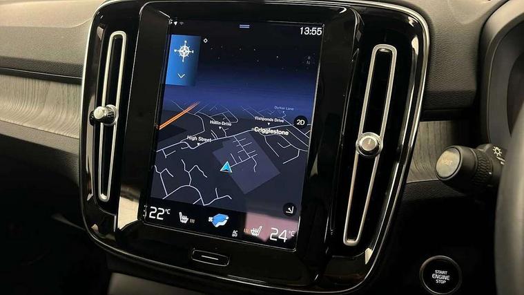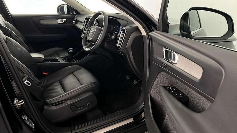 12.3" Active TFT crystal driver's instrument display, 9" centre console portrait touch screen, Adjustable steering wheel force, Bluetooth hands free telephone kit, Drive mode selector, E-call, Lane keep assist with driver alert control, Oncoming Lane Mitigation, Power operated tailgate, Sensus navigation with European mapping and traffic information, Speed limiter, Speed sensitive steering, Voice activated control for key functions, Volvo on call, Dynamic chassis, DAB Digital radio, Steering wheel mounted remote controls, Adaptive brake lights with high level LED brake lights, Auto dimming interior mirror, Automatic headlamp levelling, Chrome window surround, Colour coordinated auto folding and heated power door mirrors, Front aluminium tread plates, Front and rear electric windows, High gloss black front grille with chrome inserts, High gloss black sensus surround deco, High Gloss silver front and rear skid plate, Home safe and approach lighting, Integrated roof rails in silver, LED Headlights + Active high beam incorporating daytime running lights, Rain sensor with automatic windscreen wiper activation, Rear side wing doors, Rear wiper, Roof antenna, Roof spoiler, Visible VIN plate, 12V socket in front tunnel console and luggage compartment, 2 zone electronic climate control and rear air vent, 3 seat bench in 2nd row, 3 Spoke tailored steering wheel with chrome trim, 60/40 versatile split folding rear seat, A-pillar parking ticket holder, Bright metal luggage threshold, Centre console cupholders and storage, Floor mats, Front footwell illumination, Front headrests, Front reading light and theatre lighting, Glovebox bag hook, Height/reach adjustable steering column, Height/tilt adjustable driver's seat, Illuminated glovebox, Illuminated luggage compartment, Illuminated vanity mirrors, Isofix attachments on outer rear seats, Leather faced upholstery, Leather gearknob, Load protection net, Multi directional lumbar support, Power driver seat with memory + exterior mirrors memory, Rear armrest / integral cup holders / storage tray, Rear coat hook, Single front passenger seat, Underfloor cargo storage, Vanity mirror with ticket holder, Park assist pack - XC40, 3x3 point rear seatbelts, City safety includes pedestrian, cyclist and large animal detection and front collision warning with full auto brake, Drivers knee airbag, Dual stage driver/passenger airbags, Electronic parking brake with auto hold, First aid kit, Front and outer rear seatbelt reminder and pretensioners, Front seats SIPS airbags, Hill descent control, Hill start assist, Inflatable curtain, Passenger airbag cut-off device, Road sign information display, Run off Road Mitigation, Run off Road Protection, SIPS (Side Impact Protection System), Slippery road and hazard light alert, Stability and Traction Control with Spin control, Engine Drag Control and Corner Traction Control, Tyre pressure monitoring system, Vehicle deceleration control with Anti-lock Brake System, Electronic Brake Distribution and Emergency Brake Assist, Warning triangle, WHIPS whiplash protection system - front, Anti-theft alarm including immobiliser/volume sensor + level sensor, Care key with user defined top speed, Key integrated remote control central locking + fuel flap with deadlocking system and auto open/close power windows, Locking wheel nuts, Private locking for tailgate, Driftwood inlays,