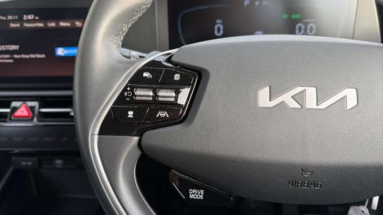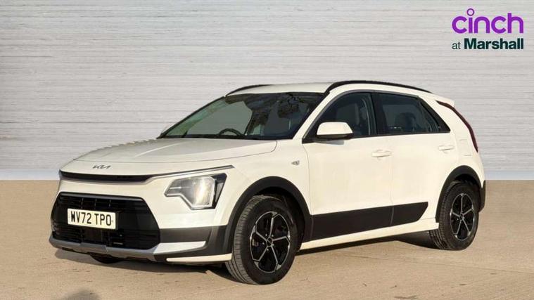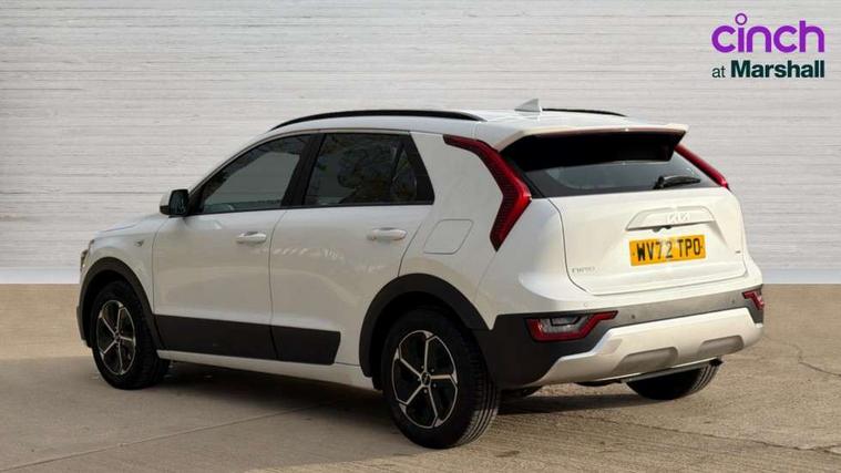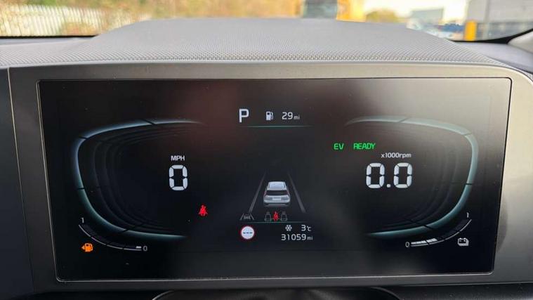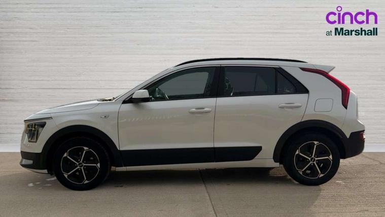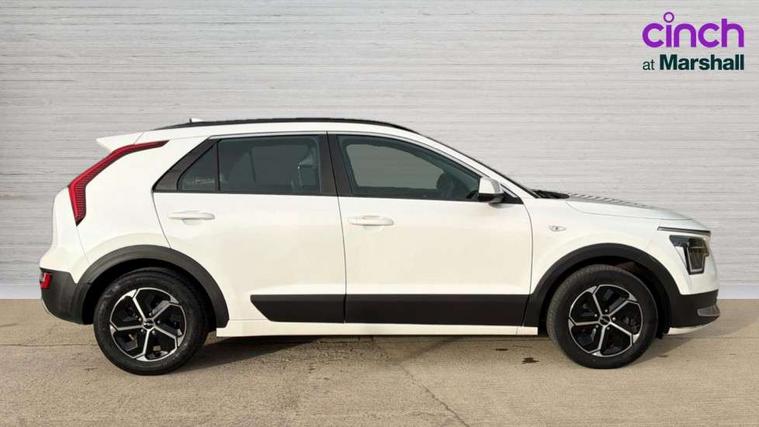 4.2" supervision colour cluster display, 8" touch screen, Adaptive smart cruise control function (SCC) with stop and go, Apple car play/Android Auto with voice control, Drive mode select (Eco, sport), E-call, Emergency stop signalling system, Forward Collision-Avoidance Assist (FCA) 1.5 - City/Pedestrian/Cyclist/Junction turning, Lane Following Assist (LFA), Lane keep assist, Motor driven power steering, Rear parking sensors, Reversing camera with dynamic guide lines, Speed limit assist, Tailgate, Trip computer with distance/fuel consumption/average speed, Sports H-Matic Automatic, 'Shark fin' mobile antenna, 2 type C USB ports on front seats, 2 USB ports in centre console including 1 type C, 6 speakers, Bluetooth with music streaming, DAB Digital radio, Steering wheel mounted controls, Acoustic windshield, All round electric windows with drivers auto up/down function, Auto dimming rear view mirror, Automatic defog system, Automatic headlight control system, Black beltline mouldings, Black embossed cladding, Body colour bumpers, Body colour door mirrors, Body colour exterior door handles, Dual LED headlights (low and high projection), Electric heated door mirrors, Front and rear silver skid plates, Heated rear window with timer, LED daytime running lights, LED rear combination lights, LED third brake light, Manual folding door mirrors, Rain sensor, Rear fog lights, Rear side wing doors, Rear spoiler, Rear wiper, Roof rails, Solar glass rear windows and tailgate, Solar glass windscreen, Welcome and follow-me home light functionality, Windscreen Washer Level Warning, 12V socket in front, 12V socket in luggage compartment, 3 seat bench in 2nd row, 60/40 split/folding 2nd row of seats, All-round height adjustable headrests, Artificial leather centre console storage box, Artificial leather steering wheel, Bulb type overhead console lamp with sunglasses case, Centre console cupholder, Cloth upholstery, Driver seat manual adjustment, Driver/passenger sunvisors with illuminated vanity mirrors, Dual zone automatic air conditioning, Front and rear door storage, H-Matic gear selection, Illuminated glovebox, Interior door lock/unlock function, ISOFIX Child seat top tethers and anchor fixings, Luggage area lamp, Luggage area load cover, Luggage board, Metal paint interior door handles, Passenger seat height adjuster, Rear armrest, Seatback pocket - driver, Single front passenger seat, Tilt/telescopic adjustable steering wheel, Towing pack - Niro, 3 point seatbelts on all seats, ABS, Automatic unlocking of doors in case of impact, Centre side front airbags, Curtain and side airbags, Drivers knee airbag, Dual shell horn, Electric parking brake with auto hold function, Electronic stability control, Front passenger airbag deactivation, Height adjustable front seatbelts, Hill start assist control (HAC), Manual rear child locks, Rear seat alert system, Traction control, Tyre pressure monitoring system, Alarm system and engine immobiliser, Deadlocks, Locking wheel nuts, Remote central door locking with fold away key, Visible vehicle identification number, Warranty - 7 Years/ 100, 000 miles, Graphite paint centre fascia, 16" alloy wheels, Tyre mobility kit,