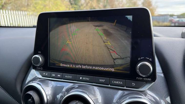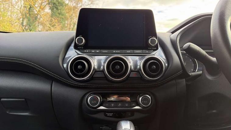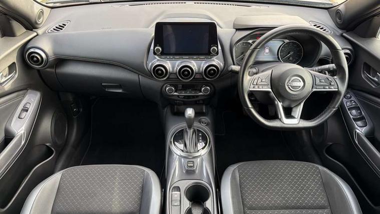 7" full colour TFT screen combimeter, Apple CarPlay and Google Android auto, Drive modes select (Eco, normal and sport), Emergency and breakdown call, Front parking sensor, Idle start/stop system, Intelligent lane intervention, Lane departure warning system, Nissan connect 8" touch screen entertainment system, Nissan connect nav with TomTom traffic, Nissan connect services and Wifi connection, Outside temperature sensor, Power Steering, Rear parking sensor, Traffic sign recognition, Trip computer, Voice recognition, Gasoline particulate filter, 6 speakers, Bluetooth system, USB, Aux-in and 12V socket, DAB Digital radio, Rear console USB port, Auto dimming interior rear view mirror, Auto headlights, Automatic hazard signal with emergency stop signal, Body colour bumpers, Body colour door handles, Electrically adjustable door mirrors with integrated indicators, Follow me home headlights, Front and rear electric window with one touch driver window, Heated and auto folding door mirrors, High beam assist, LED daytime running lights, LED headlamps, LED rear fog lamp, LED rear lamps, Rain sensor windscreen wipers, Rear privacy glass, Rear side wing doors, Rear wiper, Shark fin roof antenna in Pearl Black, Three blink turn signal, 3 height adjustable rear headrests, 3 seat bench in 2nd row, 60/40 split folding rear seat, Automatic climate control, Card holder on driver sunvisor, Cloth upholstery with black and metallic grey syntech leather inserts, Driver and passenger sliding and reclining seats, Driver side rear coat hanger, Driver/passenger sunvisors and vanity mirrors, Front and rear cabin lights, Front armrest, Front door pockets with bottle holders, Front head restraints, Front/rear passenger grab handles, Grey synthetic leather kneepad, Height adjustable driver's seat, Internal chrome door handles, Leather gearshift knob, Leather steering wheel, Luggage board, Luggage space lighting, Monoform sporty seats, Multifunction steering wheel, Rear door bottle holders, Single front passenger seat, Steering wheel mounted gearshift paddles, Telescopic steering wheel adjustment, Two cupholders in front centre console, Two rear isofix child seat anchorage points with top tether, Welcome light and console tray ambient lighting, ABS with EBD and brake assist, Active ride control, Active Trace Control, Driver and passenger airbags, Driver and passenger side airbags, Electric handbrake with auto hold function, Electronic Stability Programme (ESP), Front and rear curtain airbags, Height adjustable seatbelts, Hill start assist, Intelligent emergency braking with pedestrian and cyclist recognition, Rear door child safety locks, Seatbelt reminder for driver/front passenger and rear seats, Single tone horn, Three 3 point rear seatbelts, Traction control, Tyre pressure monitoring system, VDC Dynamic Vehicle Control, Ventilated rear brake discs, Alarm, Immobiliser, Intelligent key and start push button with walk away lock and approach unlock functions, Remote central locking,