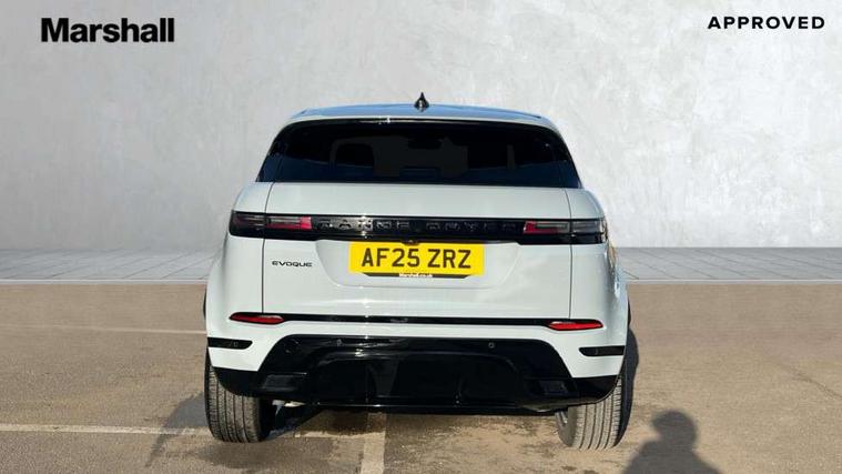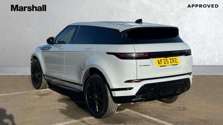 11.4" touch screen, Adaptive cruise control, Android Auto, Apple car play, Blind spot assist, Bluetooth connectivity, Brake pad wear indicator warning light, Driver condition monitor, eCall emergency system, Eco mode, Electronic power assisted steering (EPAS), Front and rear parking aid, InControl remote, Interactive driver display, Land Rover InControl apps, Lane keep assist, Pivi pro connected includes diamond pivi variant, smart settings, connected navigation pro, nuance speech licence, Powered tailgate/boot lid, Rear collision monitor, Rear traffic monitor, Traffic sign recognition with adaptive speed limiter, Voice control system, Wireless device charging, All terrain progress control, Diesel exhaust fluid (DEF) large tank, Efficient Driveline, Large fuel tank, Passive suspension, Terrain Response 2, Digital Audio Broadcast radio-DAB, Steering wheel mounted controls, Acoustic laminated windscreen, Auto headlights, Automatic headlight levelling, Electric windows with one touch open/close and anti trap, Flush deployable exterior door handles, Front and rear recovery eyes, Heated rear window with timer, Heated washer jets, Heated windscreen, Pixel LED headlights with signature DRL and LED tail Lights, Power fold, auto-dimming, heated door mirrors with approach lights and auto dimming driver side, Rain sensing windscreen wipers, Rear animated directional indicators, Rear fog lights, Rear side wing doors, Rear wiper, Side repeater indicators in mirror, Tailgate spoiler, Third brake light, Winter wiper park position, 14 way driver memory electric front seats with 2 way manual headrests + 4 way lumbar support, bolsters, 40:20:40 split folding rear seats with centre headrest and armrest, Ambient interior lighting, Bright metal pedals, Carpet mats, Chrome tread plates with range rover branding Includes stainless steel loadspace scuff plate with etched graphic, Customer configurable single point entry, Electrically adjustable steering column with memory function and easy entry/exit, Front and rear cupholders, Heated steering wheel, Isofix system on outer rear seats, Overhead lighting console, Overhead stowage for sunglasses, Passive front head restraints, Rear air vents, Rear head restraints, Satin chrome gearshift paddles, Single passenger seat, Sunvisors with illuminated vanity mirrors, Twin sliding front centre armrest, Online pack with data plan - Evoque, Power socket pack 2 - Evoque, 3 rear 3 point seatbelts, Anti-lock braking system (ABS), Brake hold function, Customer configurable autolock, DSC - Dynamic Stability Control, Electronic brake force distribution, Electronic parking brake, Electronic traction control, Emergency braking, Front and rear seatbelt reminder, Hill descent control, Hill launch assist, Low traction launch, Occupant protection assist, Passenger seat occupant detector, Power operated child locks, Roll stability control, Six airbags - Driver and passenger airbags/driver knee airbag/front side airbag and curtain airbags, Torque vectoring brake, Tyre pressure monitoring system, Alarm, Immobiliser, Intrusion sensor, Keyless entry, Locking wheel nuts,