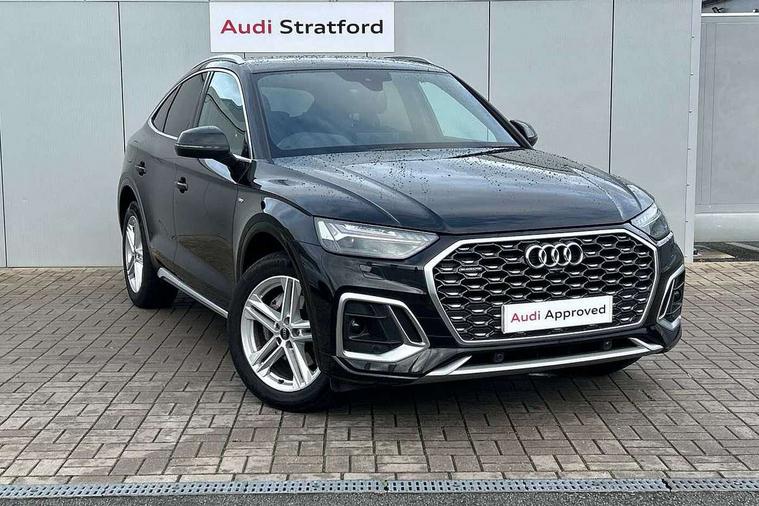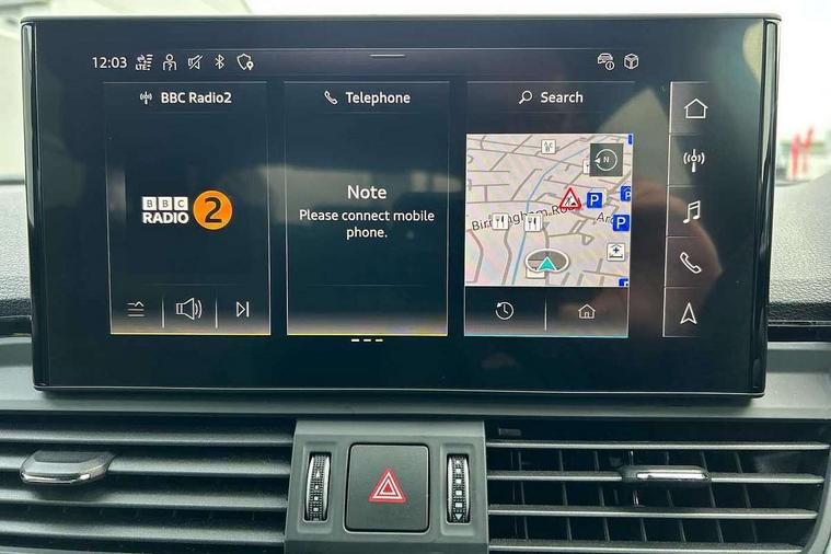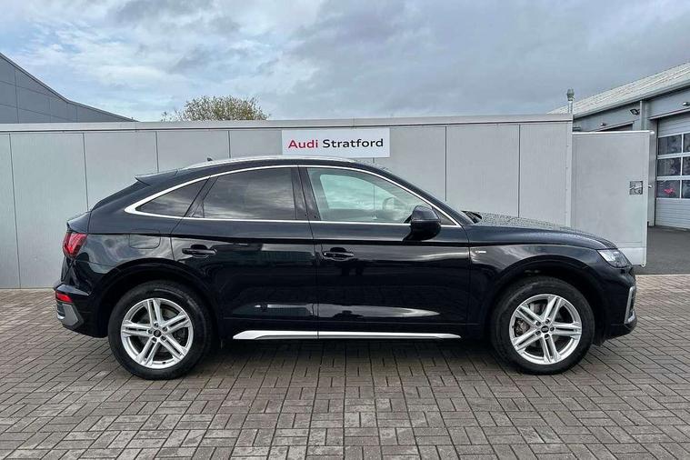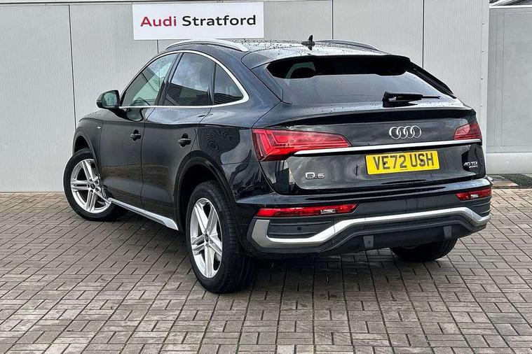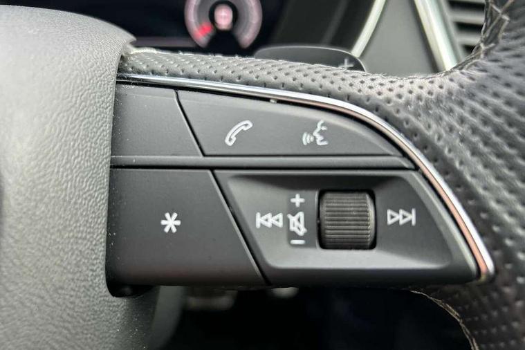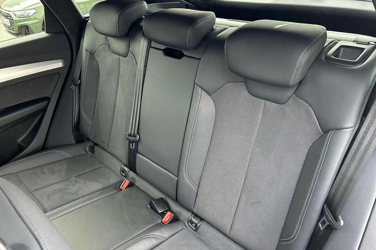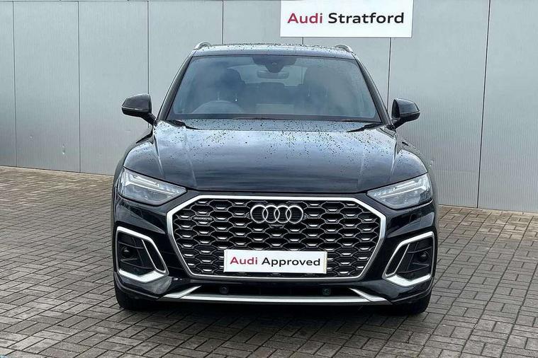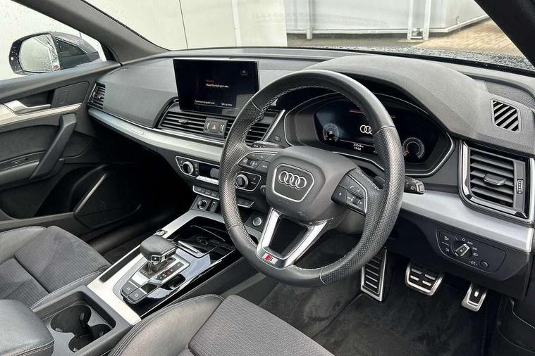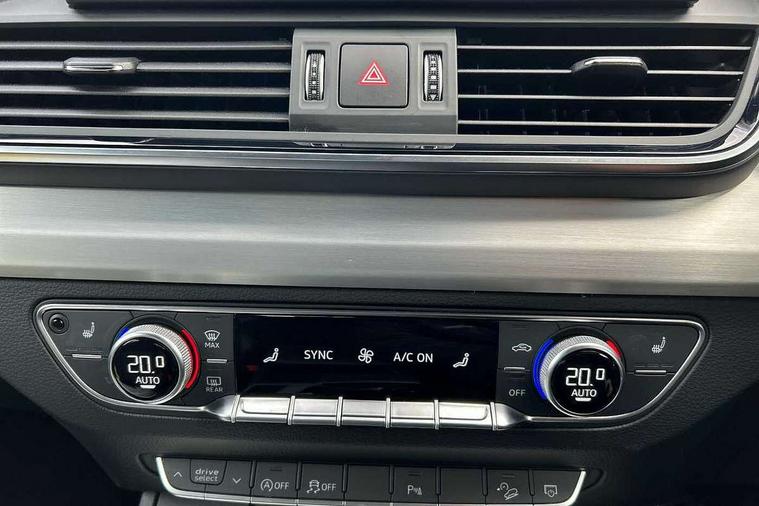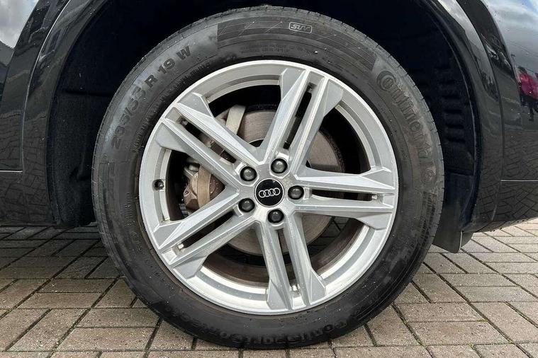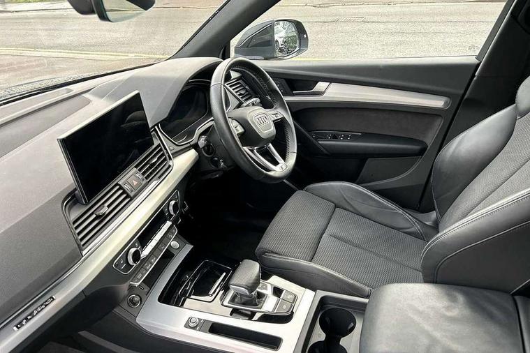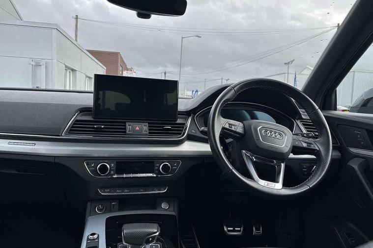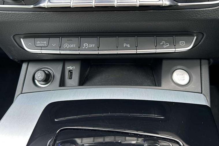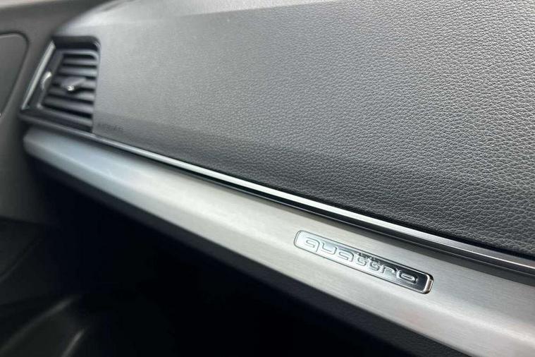 Audi connect safety and service (e-call), Audi connect with Amazon Alexa Integration, Audi drive select, Audi virtual cockpit plus with 12.3" screen and three different layout designs, Audi wireless smartphone interface, Automatic start-stop system with coasting functionality and efficiency programme, Bluetooth interface, Electro - mechanical power assisted steering, MMI navigation plus with 10.1" touch screen, Power tailgate, Reversing camera, Service interval indicator, Voice control system with Audi hotword activation "Hey Audi", Diesel particulate filter, Quattro on demand, S line sports suspension, 2 x USB charging port with aux input socket, DAB Digital radio, Acoustic windscreen, Aluminium roof rails, Audi matrix LED headlights with dynamic front and rear indicators, Auto dimming door mirrors, Auto dimming rear view mirror, Automatic headlight adjustment, Automatic headlights and windscreen wipers, Body colour door mirrors, Body colour rear diffuser with matt aluminium silver surrounds, Body colour underbody protection, Chrome plated exhaust trims, Daytime running lights, Door sills in Selenite silver, Electric adjustable/heated/folding door mirrors, Front air inlet surrounds in aluminium, Front and rear electric windows, Front radiator grille in honeycomb design, Headlight washers, High level LED brake light, Lower bumpers painted in contrast Manhattan grey, Rear chrome trim strip below lights, Rear privacy glass and rear side windows, Rear side wing doors, Rear wiper, Roof bars, S Line badges on the front wings, S Line front and rear bumpers, S Line rear spoiler, S Line side skirts, 3 rear headrests, 40:20:40 split folding 3 rear bench seat in 2nd row with rear centre armrest, Black cloth headlining, Comfort front centre armrest, Contrast stitching on seats, steering wheel and gear lever gaiter, Deluxe 3 zone electronic climate control, Front head restraints, Front/rear floor mats, Gear lever in black leather, Heated front seats, Height/reach adjustable steering column, Illuminated door sill trims with S logo, ISOFIX child seat mounting and top tether, Manual seat adjustment with 4-way electric lumbar support, Removable luggage compartment floor, Single front passenger seat, Stainless steel pedals, Sunvisors with vanity mirrors, Trunk roller cover, High gloss pack - Q5, LED interior light pack - Q5, 3 point seatbelts on all seats, 6 airbags - Driver, front passenger, curtain and side airbags, Electrically operated child locks on rear doors, Electromechanical parking brake, Electronic stabilisation control including ABS, ASR and EDL, Front passenger airbag deactivation, Hill descent control, Hill hold assist, Multi collision brake assist, Pop-up bonnet for pedestrian protection, Pre sense city, Seat belt force limiter, Seatbelt monitoring, Tyre pressure warning, Warning triangle and first aid kit, Anti theft alarm, Anti-theft wheel bolts, Keyless Go access/ignition system, Remote central locking, Matt brushed aluminium inlays,