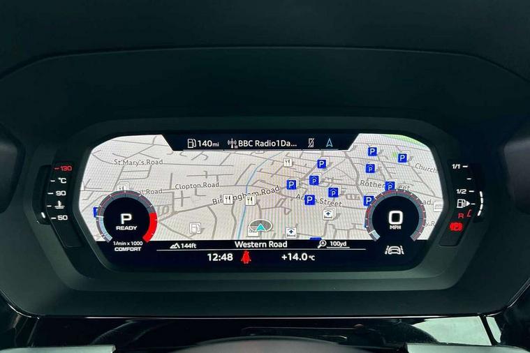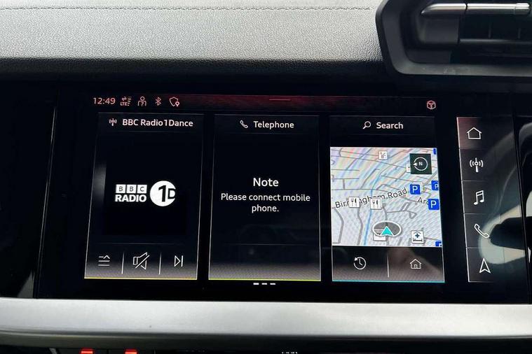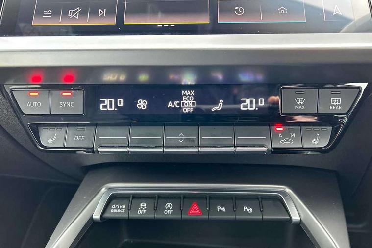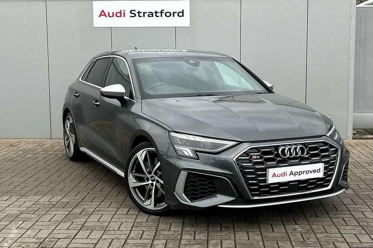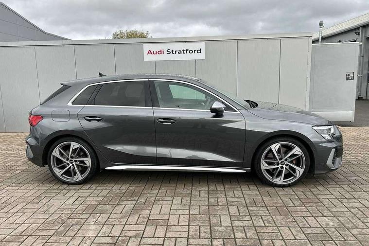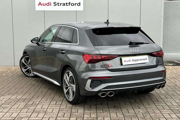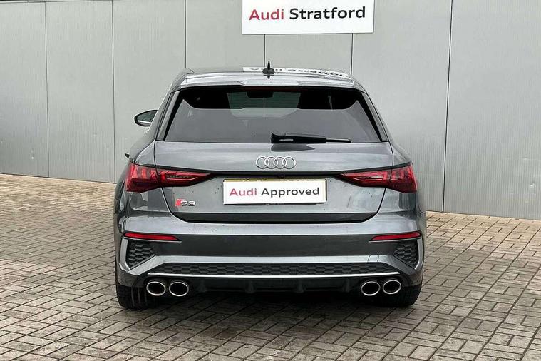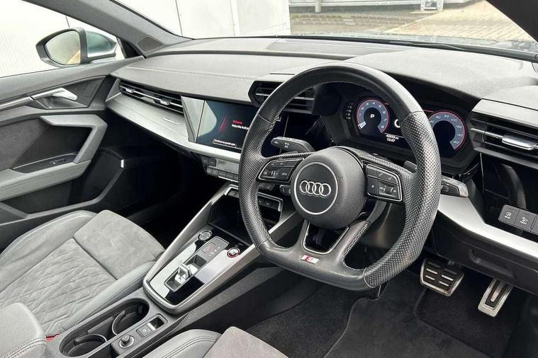 Audi drive select (Auto, Comfort, Dynamic, Efficiency and Individual), Audi smartphone interface, Audi Virtual Cockpit - 10.25" digital and colour instrument cluster, Automatic start/stop system with recuperation, Bluetooth interface, Collision avoidance assistant, e-Call (emergency call), Lane departure warning system, MMI Navigation Plus with high resolution 10.1" colour touch screen display, Progressive steering, Service indicator, Trip computer, Voice control system with natural language interaction, Quattro permanent all wheel drive, S sports suspension, 2xUSB-C connection with data and charging functions, 6 passive loudspeakers, DAB Digital radio, 3rd brake light, Acoustic glass windscreen, Aluminium window trim, Audi Beam uses LEDs to project the Audi S3 logo, Auto dimming frameless rear view mirror, Electrically adjustable/heated/folding/dimming door mirrors with kerb view includes integrated LED indications + kerb view function for passenger side, Front electric windows, Headlight washers, Illuminated aluminium inserts front door sills with S logo, LED daytime running lights, LED headlights with LED rear lights and dynamic rear indicators, Light and rain sensors, Privacy glass - dark tinted rear window, rear door and side windows, Rear electric windows, Rear side air outlets in grained matt black, Rear side wing doors, Rear wiper, 12V socket and storage compartment in front centre console, 3 seat bench in 2nd row, 40/20/40 split folding rear seat bench with cupholder, Black cloth headlining, Dual zone electronic climate control, Front and rear headrests, Front/rear floor mats, Heated front seats, Height and reach adjustable steering wheel, Illuminated vanity mirror, Interior lighting - glove compartment light and right hand side, Luggage compartment floor covering, Manually adjustable front seats, Seat side bolsters, Single front passenger seat, Stainless steel pedals and front footrest in black, Aluminium interior elements pack - A3 Sportback, Design body styling - A3 Sportback, LED interior lighting pack - A3 Sportback, Storage pack - A3 Sportback, 3x3 point rear seat belts, Audi pre sense front, Driver and front passenger airbag with passenger airbag deactivation, Electronic Stabilisation Control (ESC) including ABS, ASR and EDL, First aid kit with warning triangle and 2 safety vests, Front side airbags with head airbags and interaction airbag, Pre-sense front with pedestrian and cyclist detection, Seatbelt monitoring, Tyre pressure loss indicator, Anti theft alarm, Anti-theft wheel bolts, Electronically operated child lock, Immobiliser, Remote control central locking, Accent surfaces in the dashboard and centre console in platinum grey silk effect paint finish, Dark spectrum aluminium inlays,