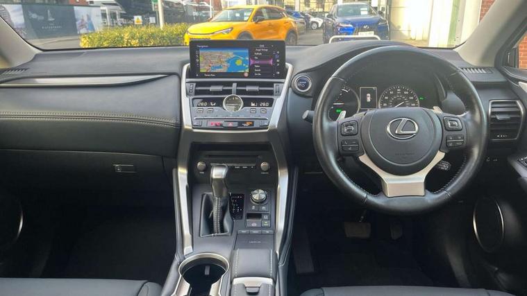 4 driving modes EV/Eco/Normal/Sport, 8" display screen with remote touch interface, Analogue clock, Apple car play/Android Auto, Bluetooth telephone connectivity, Electric speed sensitive power steering, Intelligent parking sensors - 4 front and 4 rear, Lane change flasher function, Lexus link connected services with available optional wifi, Lexus navigation system, Push button starter, Reversing camera, All wheel drive system, Vehicle Dynamics Integrated Management (VDIM), Vehicle Stability Control (VSC), 2 USB ports, 8 Speakers, AUX socket with VTR compatibility, CD player, DAB Digital radio, Auto dimming interior rear view mirror, Bi LED headlight with Auto high beam, Body adhesive, laser screw welding and laser brazed roof structure, Front and rear one touch power windows, with anti-jam protection, Heated and auto folding door mirrors with turn indicators, Hidden exhaust pipe, LED brake lights and rear lights with emergency brake signal, LED daytime running lights, LED front and rear sequential indicators, Rain sensor windscreen wipers, Roof rails, 12V accessory port centre console and luggage compartment, 2 cupholders in front centre console, 2 map pockets in the rear, 2 x fixed shopping bag hooks in boot, 2 x sun visors with vanity mirror and lamp, 6 tie down hooks in boot, 60/40 split folding rear seat, 8 way driver/passenger electrically adjustable front seats, Adjustable rear seat backrest, Card holder installed in driver and passengers sun visors, Centre armrest with storage box, Dual climate control air conditioning system, Front and rear head restraints, Front and rear textile carpet mats, Heated front seats, Leather gear lever, Leather steering wheel with paddle shifts, LED interior illumination, Rear air vents, Rear centre armrest with 2 cupholders, Self charging hybrid, Tahara leather upholstery, Whiplash Injury Lessening (WIL) feature (active headrest) for seats, 2 x Isofix child rear seat restraints, 3 point ELR front seatbelts with pretensioners, 3x3 point rear seat belts, ABS, Adjustable seat belt anchor points, Driver and front passenger 2 stage airbag, Driver/front passenger side airbags, Drivers knee airbag, EBD + Brake Assist, ECB (Electronically Controlled Brake System), Electronic parking brake, Front and rear curtain shield airbags, Front passenger seat cushion airbag, Hill start assist, Hybrid automatic with 6 stage sequential shift and kick down switch, Lexus safety system - dynamic radar cruise control, pre collision system day and night, lane tracing assist, road sign, automatic high beam, OTA, Passenger airbag cut-off device, Traction control, Tyre pressure warning, 2 x remote key fobs, Anti-theft system with siren, alarm, intrusion sensor, glass breakage sensor, tilt sensor and engine immobiliser, Locking wheel nuts, Speed sensitive auto door locking, Two motion door lock with double lock, VIN Window etching, Silver inlays, Space saver spare wheel,