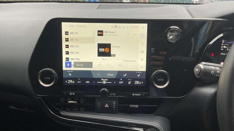 7" display in instrument binnacle, Blind spot monitoring with rear cross traffic alert, Bluetooth telephone connectivity, eCall emergency system, Electric speed sensitive power steering, Intelligent parking sensors - 4 front and 4 rear with object and pedestrain detection, Lane change flasher function, Lexus link connect - Cloud based navigation, cloud based voice assistant, always online and 9.8" VGA touchscreen, Push button starter, Reversing camera with back guidelines, Service interval indicator, Tailgate, Wireless Apple CarPlay/Android Auto, Wireless Smartphone charger, 6.6 kW onboard charger, All Wheel Drive (AWD), Hybrid automatic transmission, Vehicle Dynamics Integrated Management (VDIM), Vehicle Stability Control (VSC), 10 speakers, 4 USB ports - 2 front, one USB C, 2 rear USB C, DAB Digital radio, Auto dimming interior rear view mirror, Automatic headlights, Black roof, Double hidden exhaust pipes, Front and rear one touch power windows, with anti-jam protection, Heated and auto folding door mirrors, Illuminated door handles with puddle light, LED brake lights and rear lights with emergency brake signal, LED cornering lights, LED daytime running lights, LED front fog lights, LED Indicators, LED low beam and Hi-beam headlight, Power back door system, Privacy glass, rear doors and tailgate, Rain sensor windscreen wipers, Rear side wing doors, Rear wiper, Roof rails, 12V accessory port centre console and luggage compartment, 2 cupholders in front centre console, 2 way electrical lumbar adjustment for driver, 2 x fixed shopping bag hooks in boot, 2 x sun visors with vanity mirror and lamp, 3 seat bench in 2nd row, 4 x tie down hooks in the boot, 60/40 split folding rear seat, 8 way driver/passenger electrically adjustable front seats, Adjustable rear seat backrest, Ambient light in 64 colours, Card holder installed in driver and passengers sun visors, Centre armrest with storage box, Dual climate control air conditioning system, Front and rear head restraints, Front and rear textile carpet mats, Front passenger seat, Heated front seats, Heated steering wheel, LED interior illumination, Power adjustable leather steering wheel with paddle shifts, Premium Tahara leather upholstery, Rear centre armrest with 2 cupholders, Whiplash Injury Lessening (WIL) feature (active headrest) for seats, 3 point ELR front seatbelts with pretensioners, 3x3 point rear seat belts, ABS, Adjustable seat belt anchor points, Driver and front passenger 2 stage airbag, Driver/front passenger side airbags, Drivers knee airbag, E-Latch with safe exit assist, EBD + Brake Assist, ECB (Electronically Controlled Brake System), Electronic parking brake, Front and rear curtain shield airbags, Front center airbag, Front passenger seat cushion airbag, Hill assist control, Lexus safety system - dynamic radar cruise control, pre collision system day and night, lane tracing assist, road sign, automatic high beam, OTA, Manual rear child locks, Passenger airbag cut-off device, Traction control, Tyre pressure warning, Anti-theft system with alarm, intrusion sensor, glass breakage sensor, tilt sensor and engine immobiliser, Locking wheel nuts, Smart entry ( front/rear/boot), Speed sensitive auto door locking, Ultra Wide Band (UWB) Anti-theft system, VIN Window etching, 3D prism black Inlay, Organic inlay, Tyre repair kit,