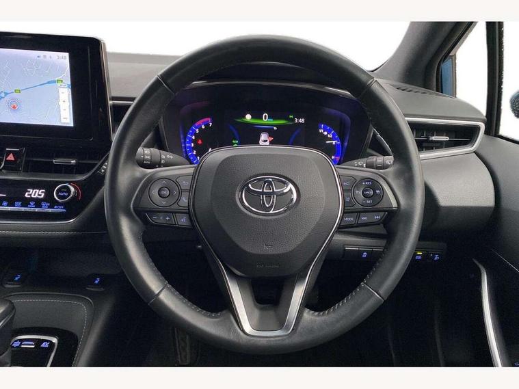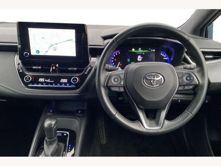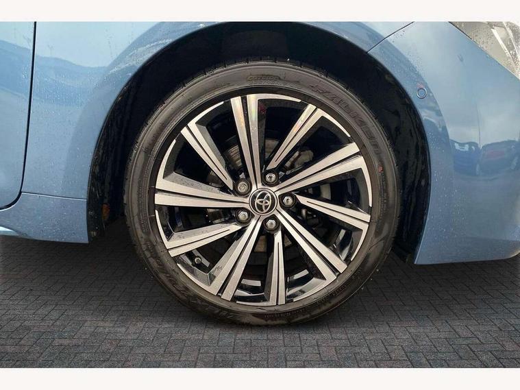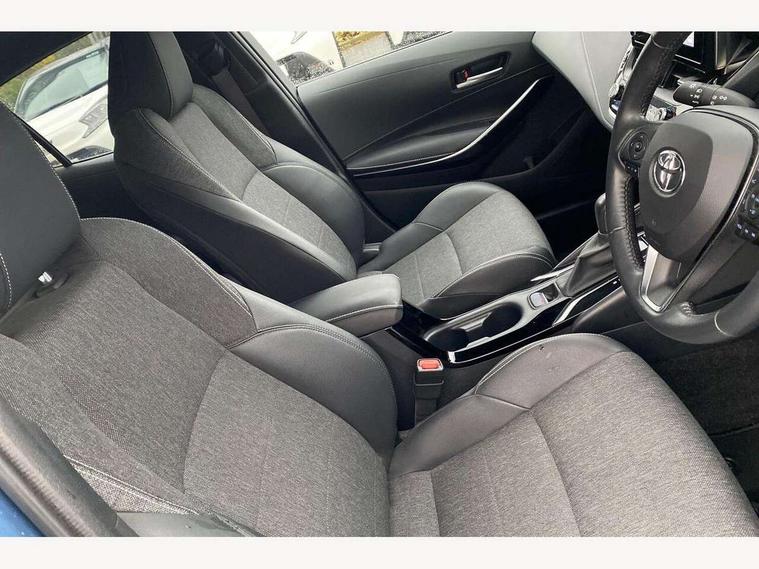 7" Multi information display screen, Bluetooth telephone connectivity, Connected car functionality upgrade, tracker, remote status and e-care, Door trim and centre console material, Dynamic radar cruise control (with RSA) including switch on steering wheel, E-call, Electrically assisted power steering, EV drive indicator, Intelligent park assist, Lane Departure Alert (LDA) switch on steering wheel, Memory on adjustable speed limiter, Push button start, Reversing camera, Smartphone integration with Apple CarPlay and Android auto, Gasoline particulate filter, Vehicle Stability Control (VSC), 6 speakers, 8" Touchscreen with MM19 Multimedia system and voice recognition, AM/FM radio, DAB Digital radio, Toyota touch 2 with go navigation system, USB and Aux in connectors + 12V front outlet, Anti-jam protection on power windows, Auto dimming inside rear view mirror, Auto up and down function on all power windows, Automatic folding mirrors, Automatic headlights with high beam assist, Black metallic surround on lower front grille, Black toyota logo in front, Black window frames, Body colour rear spoiler, Body coloured bumpers, Body coloured door mirrors, Body coloured outside door handles, Follow me home headlights, LED daytime running lights, LED front fog lights, LED Headlights, LED High mounted stop light, LED rear combi lights with LED lightguide, Power adjustable heated door mirrors, Power front windows, Power rear windows, Privacy glass, Rain sensing wipers, Rear side wing doors, Rear window defogger, Rear window wiper, Reverse tilting door mirrors, Shark fin antenna, Time adjustment on intermittent wiper, Turning signal integrated indicators in door mirrors, Unique lower skirt, Unique side rocker with black insert, UV-filter on driver and passenger windows, 3 rear headrests, 3 seat bench in 2nd row, 3 spoke leather steering wheel + gear knob, 60/40 split folding rear seat, Adjustable speed limiter switch on steering wheel, Audio, multimedia and telephone switches on steering wheel, Blue ambient interior illumination to centre tray, front cup holders and front door trim, Boot light, Centre room light, Clean air filter, Driver and front passenger personal light, Driver and passenger assist grip, Driver and passenger sun visor with mirror and light, Dual zone automatic air conditioning with ECO mode switch, Fabric/synthetic leather upholstery, Front and rear cup and bottle holders, Front door pockets, Front head restraints, Front passenger seat, Heated driver and front passenger seats, Illuminated entry system in room lamp, ISOFIX seat fixing (2 fixings on rear outer seats), Leather gear shift with satin chrome on gear shift console, Leather style armrests, Manual height adjustable for driver and front passenger seat, Parcel shelf, Passenger seat back pocket, Pollen filter, Power adjustable lumbar support on driver seat, Power window switches with satin chrome inserts, Rear armrest with 2 cupholders, Rear passenger coat hooks (2), Satin chrome inside door handles, Shopping bag hooks in luggage compartment, Sliding armrest on centre console box, Slow opening glovebox with lights, Tilt/telescopic steering column, Voice recognition switch on steering wheel, Whiplash Injury Lessening (WIL) feature (active headrest) for seats, Parking pack - Corolla, Toyota safety sense 2 pack - Corolla, 3x3 point rear seatbelts, Adjustable driver and front passenger seat belt extender to top anchor point, Anti lock braking system + Electronic brake force distribution, Brake assist function, Child locks on rear doors, Downhill Assist Control (DAC), Electronic parking brake, Emergency brake light signal (EBS), Front passenger airbag on/off switch, Front seatbelt reminder, HAC - Hill start assist control, Rear seat belt reminder, Seatbelt pretensioners and force limiters, Supplemental restraint system (SRS) 7 airbags - dual driver, dual side curtain, side impact and driver knee airbags, Traction control, Tyre pressure warning system, Acoustic vehicle alert system (AVAS), Alarm with motion sensor and immobilizer, Remote central locking + deadlocks, Smart entry, Satin chrome dash trim, Soft touch texture on upper dashboard, Unique wheel finish with red wheel cap,