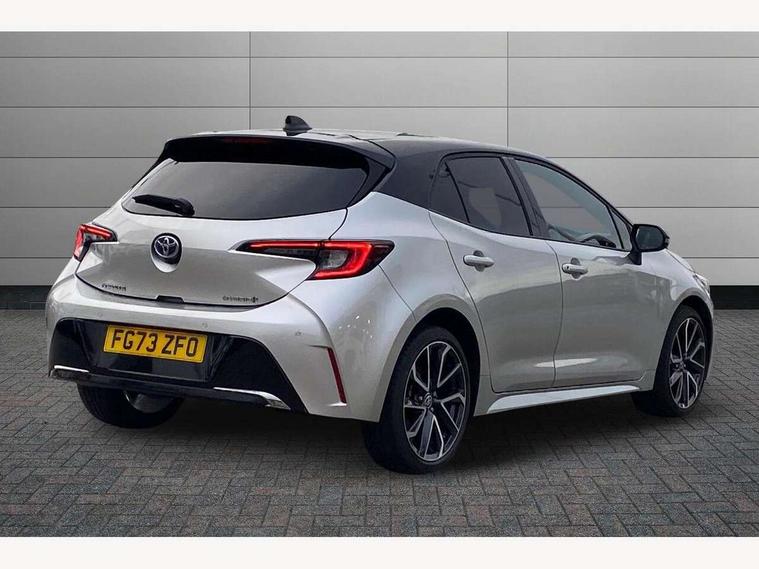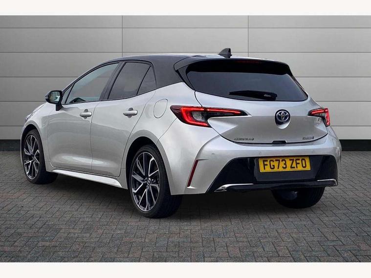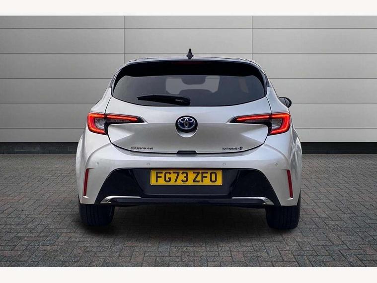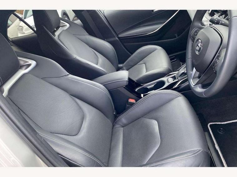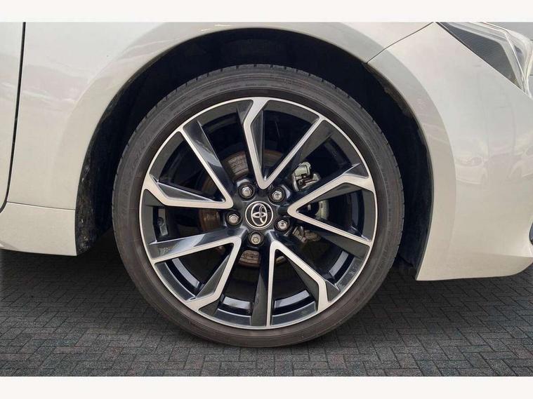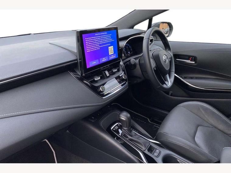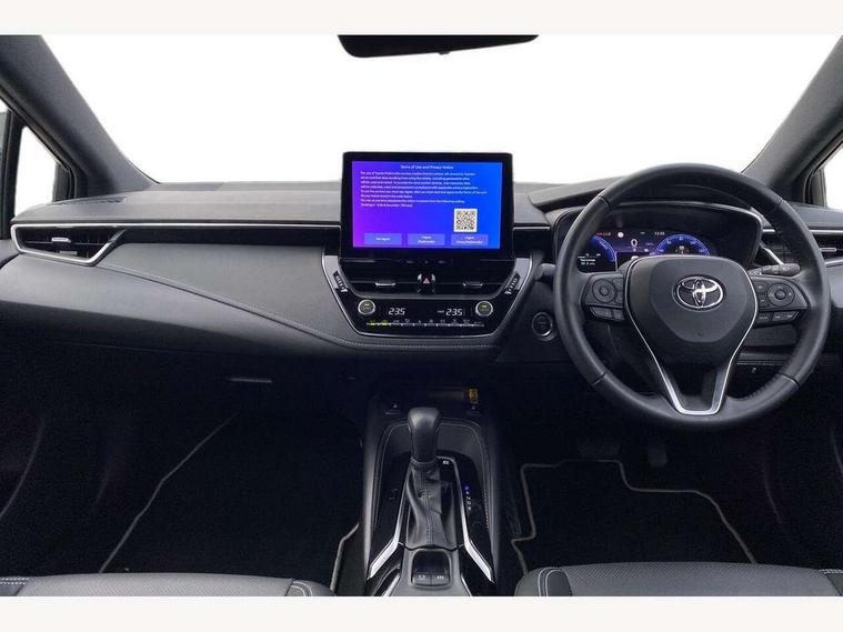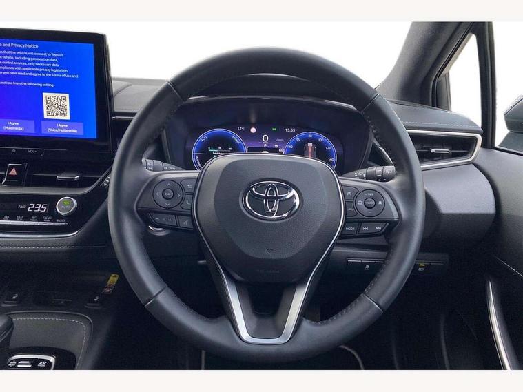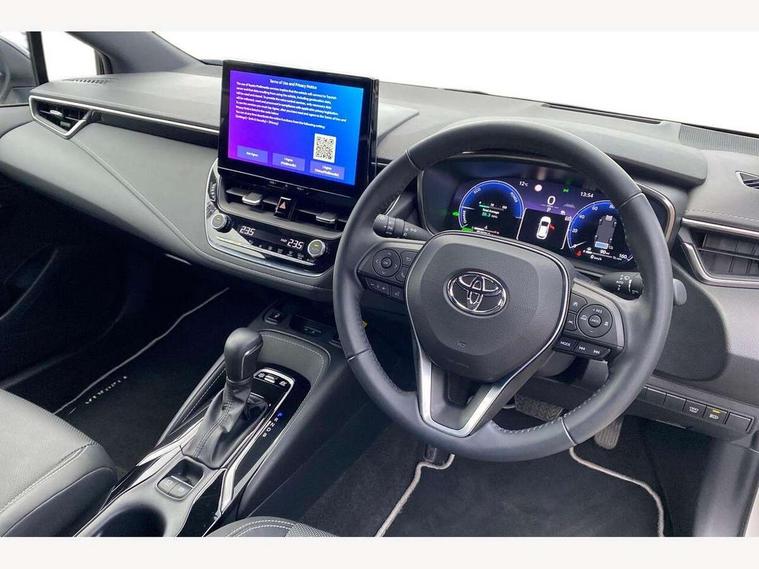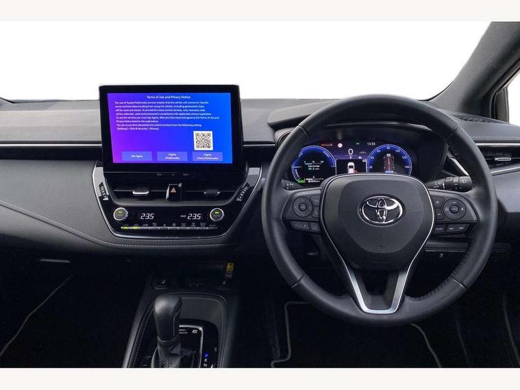 10.5" Multimedia display screen, Attention assist, Blind spot monitor and safe exit assist, Bluetooth telephone connectivity, Connected car functionality upgrade, tracker, remote status and e-care, Drive mode select (Eco, Normal), E-call, Electrically assisted power steering, EV drive indicator, Front and rear parking sensors with auto brake, Full Digital 12.3" TFT Digital Combimeter, Head up Display, Key reminder warning, Lane Departure Alert (LDA) switch on steering wheel, Memory on adjustable speed limiter, MyT connected services, Proactive driving assist (PDA), Rear cross traffic alert, Reversing camera, Smart entry and push button start, Smartphone integration with Apple CarPlay and wired android auto, Tailgate, Toyota remote services, Toyota smart connect navigation, Wireless charger, Gasoline particulate filter, Vehicle Stability Control (VSC), 6 speakers, AM/FM radio, DAB Digital radio, Front USB-C in centre console, Front USB-C in dashboard, Rear USB-C device charger, Smart voice assist/ Voice recognition, USB and Aux in connectors + 12V front outlet, Adaptive high beam system (AHS), Anti-jam protection on power windows, Auto headlight levelling system, Auto up and down function on all power windows, Automatic folding mirrors, Automatic headlights with high beam assist, Black centre and side air vents, Black metallic meshed front grille, Black toyota logo in front, Body coloured bumpers, Body coloured door mirrors, Body coloured front spoiler, Body coloured outside door handles, COROLLA alloy door scuff plates, Electrochromatic mirror, Follow me home headlights, LED daytime running lights, LED front fog lights, LED High mounted stop light, LED multi beam headlights, LED rear combi lights with LED lightguide, Noise reduction layer on windscreen, Piano black diffuser, Power adjustable heated door mirrors, Power front windows, Power rear windows, Privacy glass with UV filter, Rain sensing wipers, Rear bumper decoration with chrome plated inserts, Rear side wing doors, Rear under guard with chrome ornament, Rear window defogger, Rear window wiper, Reverse tilting door mirrors, Roof spoiler, Satin chrome insert on front air vents, Satin chrome insert on front door assist grips, Satin chrome inserts on rear passenger air vents, Shark fin antenna, Tailgate release with push button, Time adjustment on intermittent wiper, Turning signal integrated indicators in door mirrors, Unique grille pattern, Unique lower skirt, Unique side rocker with black insert, UV-filter on driver and passenger windows, 2 Shopping bag hooks in luggage compartment, 3 rear headrests, 3 seat bench in 2nd row, 3 spoke leather steering wheel with satin insert + gear knob, 4 tie down hooks in luggage compartment, 60/40 split folding rear seat, Adaptive cruise control (ACC) switch on steering wheel, Adjustable speed limiter switch on steering wheel, Audio, multimedia and telephone switches on steering wheel, Black armrest on centre console box, Black gear shift console, Boot light, Centre room light, Driver and front passenger personal light, Driver and passenger assist grip, Driver and passenger seatback pockets, Driver and passenger sun visor with mirror and light, Dual zone automatic air conditioning with ECO mode switch, Front and rear cup and bottle holders, Front door pockets, Front head restraints, Front passenger seat, Front sliding synthetic leather armrest, Heated seats, Illuminated entry system in room lamp, ISOFIX seat fixing (2 fixings on rear outer seats), Leather gear shift with satin chrome on gear shift console, Manual height adjustable for driver and front passenger seat, Manually tilt with sliding driver and front passenger seat, Parcel shelf, Perforated leather upholstery, Pollen filter, Power window switches with satin chrome inserts, Rear air conditioning, Rear armrest with 2 cupholders, Rear passenger coat hooks (2), Remote air conditioning, Satin chrome inside door handles, Satin chrome surround on heater control panel, Satin chrome surround on speedometer, Sliding armrest on centre console box, Slow opening glovebox with lights, Sports seats, Textile floor mats, Tilt/telescopic steering column, Voice recognition switch on steering wheel, Whiplash Injury Lessening (WIL) feature (active headrest) for seats, White ambient lighting on open tray and front cup holder, Toyota safety sense 3 pack - Corolla, 3x3 point rear seatbelts, Adjustable driver and front passenger seat belt extender to top anchor point, Anti lock braking system + Electronic brake force distribution, Brake assist function, Child locks on rear doors, Downhill Assist Control (DAC), Electronic parking brake, Emergency brake light signal (EBS), Front passenger airbag on/off switch, Front seatbelt reminder, HAC-Hill-start Assist Control, Rear seat belt reminder, Seatbelt pretensioners and force limiters, Supplemental restraint system (SRS) 7 airbags - dual driver, dual side curtain, side impact and driver knee airbags, Traction control, Tyre pressure warning system, Acoustic vehicle alert system (AVAS), Alarm with motion sensor and immobilizer, Power passenger window lock, Remote central locking + deadlocks, Satin chrome dash trim, Soft touch texture on upper dashboard, Stitching on lower dashboard, Stitching on upper dashboard, 18" Dark grey machined face 5 double spoke alloy wheels, Tyre repair kit, Unique wheel finish with red wheel cap,