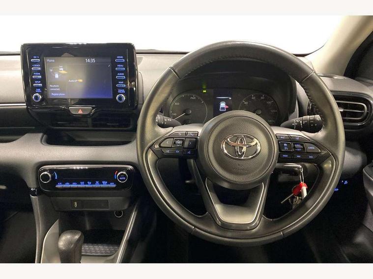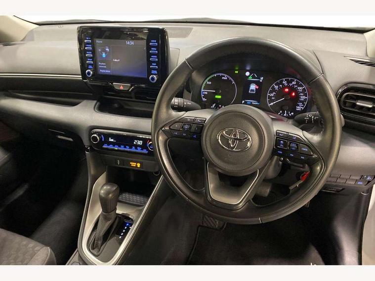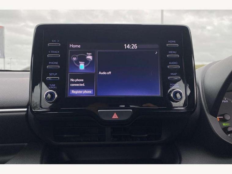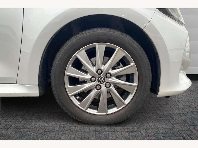 4.2" coloured TFT multi information display with analogue speedometer, Adaptive cruise control, Adjustable speed limit with speed warning, Bluetooth connectivity, E-call, Electric power steering, Hybrid energy display, Multi information display switches on steering wheel, Reversing camera, Smartphone integration with Apple CarPlay and Android auto, Tailgate, Voice recognition, Vehicle Stability Control (VSC), 4 speakers, 7" Multimedia display touch screen, Toyota Touch 2 with DAB, USB connection, Acoustic windscreen glass, Auto windscreen wipers, Automatic headlights, Body coloured door mirrors, Bulb indicators, Chequered front grille, Daytime running lights, Electric adjustable heated door mirrors, Follow me home headlights, Front auto power windows with anti jam protection, Halogen projector headlights, LED High mounted stop lamp, Manual headlight levelling, Rain sensor, Rear side wing doors, Rear spoiler, Rear wiper, Shark fin antenna, Turning signal integrated indicators in door mirrors, Variable front intermittent wipers, 3 adjustable rear headrests, 3 seat bench in 2nd row, 3 spoke leather steering wheel, 60/40 split folding rear seat, Active headrests, Adjustable boot height, Auto air conditioning, Coat hooks in rear grab handles, Cup holders (2 front & door), Data Communication Module (DCM) connected services, Fabric upholstery, Front armrest, Glovebox, Grey roof lining, Height adjustable driver's seat, Isofix seat fixing, Leather gearshift, Pollen filter, Shopping bag hooks, Single front passenger seat, Tilt/telescopic steering column, 3 point seatbelts on all rear seats, ABS+EBD+Brake assist, Electronic parking brake, Emergency brake light system (EBS), Front passenger airbag on/off switch, Front seatbelt reminder, Hill start assist control (HAC), Rear child proof door locks, Rear seat belt reminder, Supplemental Restraint System (SRS) 8 airbags: Driver & passenger's airbags, dual side curtain airbags, side impact airbags, front centre airbag, Toyota Safety Sense 2, Precollison + Night time Pedestrian & Cyclist Detection, Lane Trace Assist, Auto High Beam, Intelligent ACC & Road Sign Assist, Tyre pressure warning system, 2x Master key, Alarm/immobiliser, Remote powered central double locking doors, Soft touch instrument panel, Space saver spare wheel,
