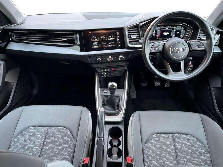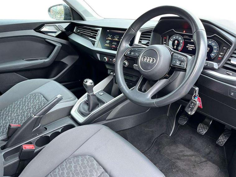 10.25" Digital instrument cluster display screen, Audi connect safety emergency and service including E-call, Audi drive select, Audi smartphone interface, Automatic start/stop system, Bluetooth interface, Driver's information system, Electromechanical power steering, Lane departure warning system, Service interval indicator, Speed limiter, Voice control system, Washer fluid level indicator, Dynamic suspension, 1 x SDXC card reader, 1 x USB type C and 1 USB type A charging points, Audi music interface, Bluetooth audio streaming, DAB Digital radio, MMI radio plus with 8.8" colour MMI display screen and MMI touch, Auto dimming rear view mirror, Body coloured bumpers, Body coloured door mirrors, Electric front and rear windows, Front side air inlets in grained matt black and C frame in titanium black, Heat insulating glass windscreen and side windows, Heated rear windscreen, LED headlights with LED rear lights + dynamic rear indicators, Radiator grille in matt titanium black, Radiator protective grille frame in matt aluminium silver, Rain and light sensors, Rear fog lights, Rear wiper, Side front spoiler lips in grained matt black, Titanium black matt diffuser, 12V socket in centre console with two cup holders, 3 rear seats, Door sills trims with aluminium inlays, Driver and passenger seat with manual height adjust with forward and backwards adjustment, Front head restraints, Front/rear floor mats, Height and reach adjustable steering wheel, Illuminated glovebox, ISOFIX child seat mounting in front passenger and rear outer seats, Leather gear knob with aluminium trim, Leatherette handbrake grip, Luggage compartment light with front and rear reading lights, Lumbar adjustment for front seats, Novum cloth upholstery with front sport seats, Rear head restraints, Split folding rear seats, Titanium grey cloth headlining, 3x3 point rear seatbelts, Audi pre-sense front with pedestrain and cyclist recognition, Brake assist function, Driver and front passenger airbag with front side and head airbags, Electronic Stability Control including ABS, EBD, ASR and EDL, Front and rear seatbelt reminder, Front passenger airbag deactivation switch, Hill hold assist, Seatbelt height adjustment for front seats, Seatbelt monitoring, Tyre pressure warning light, Warning triangle and first aid kit, Anti theft alarm, Anti theft wheel bolts and loose wheel warning, Immobiliser, Remote central locking with 2 remote folding keys, Aluminium trim for control switches, air vents and digital instrument cluster, Silver grey accent areas including air vents, door handle recesses and centre console in diamond paint finish, Slate grey inlays polygon structure in fine paint finish,