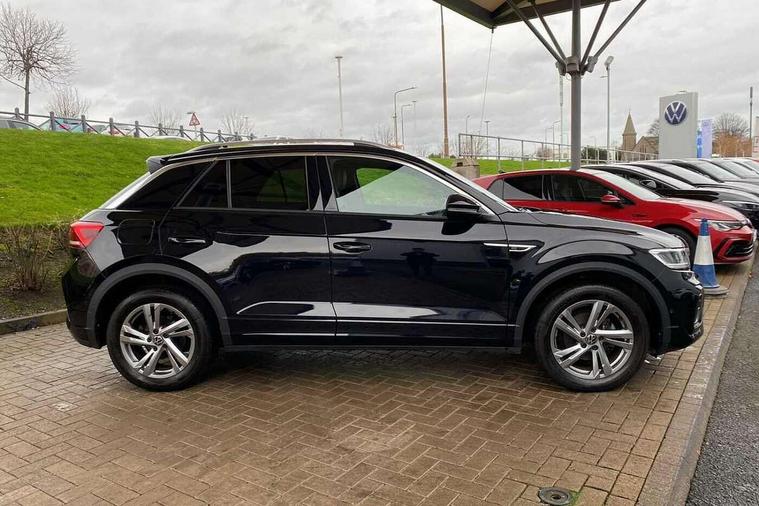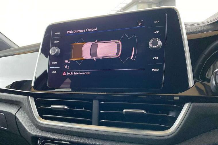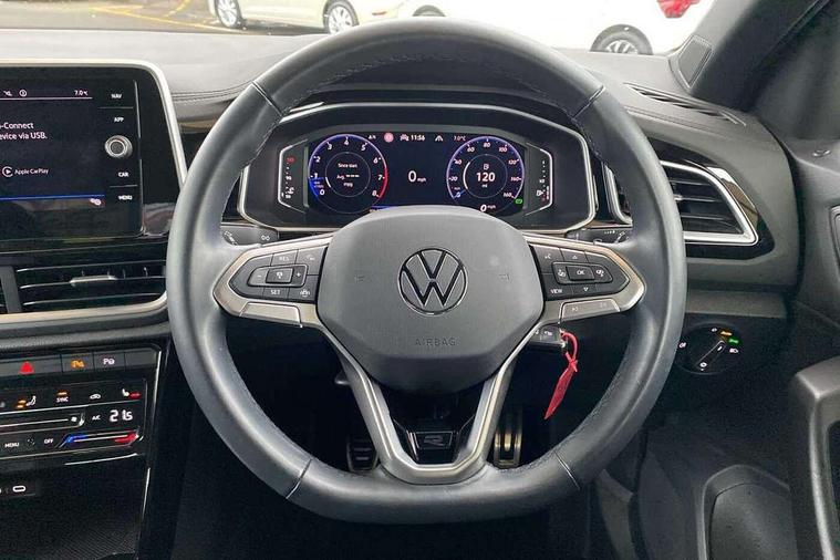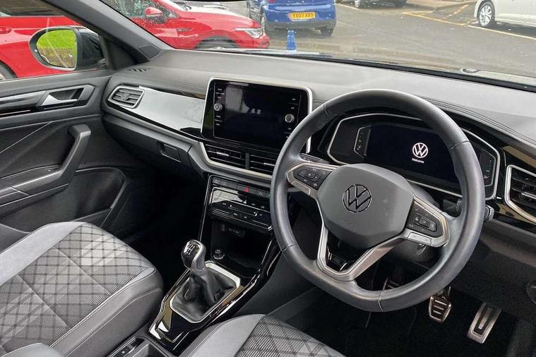 10.25" Digital cockpit pro, Advanced driver attention and drowsiness monitor, Bluetooth mobile phone interface, Driver tips and journey analysis, Emergency call service, Lane keeping system Lane Assist, Modified key software - reduce switch off time for key status change to Long no motion, Online services, Park assist including front and rear parking sensors, Service interval indicator, Tailgate/trunk lid release from outside, Think blue trainer driver tips and journey analysis, Warning sound and light for front seatbelts unfastened, Wireless app connect, Battery regeneration during braking, Start/stop function with battery regeneration, Diversity antenna for FM reception, Music playback - MP3, WMA and AAC files, Premium USB cable in choice of either Apple or Android smartphone compatibility, SD card slot, Simultaneous pairing of 2 compatible mobile devices, Title and cover art display, We Connect and We Connect Plus functionality, 3rd brake light, Auto dimming interior rear view mirror, Automatic hazard lights activation under emergency braking, Automatic headlight control with LED separate daytime running lights with coming/leaving home function, Extended roof spoiler, Exterior mirrors aspherical on driver side, convex on front passenger side, External USB type C socket and charging sockets, Front windscreen wiper with intermittent wipe and 4 position delay, Heated rear window, LED rear combination lamps, LED rear number plate lights, LED tail lamp rear comination lamps, Power windows with comfort operation and circuit breaker, R-Line design body coloured bumpers, Rain sensor, Rear exhaust tailpipe, Rear fog light on one side and reversing lights on both sides, Rear side wing doors, Rear wash/wipe with intermittent wipe setting, Remote electrically foldable door mirrors, puddle lights and reverse activated passenger's door mirror, 12V power socket in centre console, 3 rear head restraints, 3 seat bench in 2nd row, 4 load lashing points in luggage compartment, Air care climatronic air conditoning system with active combination filter and 2-zone temperature control, Black roof lining, Chrome plated radiator grille inserts, air vent surrounds and light switch surrounds, Door and side trim panel with leatherette insert, Front + rear carpet mats, Front centre armrest, Front cupholders x 2, Front footwell illumination, Front reading light, Front scuff plates with R logo, Instrument lighting, white adjustable panel illumination, Interior ambient lighting and surround lighting, Interior light delay, Isofix child seat preparation, Leather gearshift handle, Load-through provision with cup holder when folded down ('Unsplit rear seat bench, split folding backrest, with centre armrest), Luggage compartment lighting, Single front passenger seat, Stainless steel pedals, Storage compartment in left and right luggage area, Storage compartment in rear doors, Storage compartments in driver and front passenger doors, Sunvisors with illuminated vanity mirrors, Variable boot floor, height adjustable and removable, Driver assistance pack without proactive passenger protection - T-Roc, 3 point height adj front seatbelts + pretensioners, 3 point seatbelts in outer rear with ECE label, ABS, Child locks on rear doors, Driver and front passenger airbag with front passenger airbag deactivation, Driver and front passenger safety-optimised head restraints, Drivers seatbelt reminder, Electronic parking brake, Electronic Stability Control (ESC) inc EDL (Electronic Differential Lock) and ASR (Traction Control), Front and rear passengers curtain airbag system including front side airbags, Front assist with city emergency braking and pedestrian monitoring, Front seat side impact airbags, Hill start assist, Predictive pedestrian protection, Rear disc brakes, Two tone horn, Tyre pressure loss indicator, Volkswagen roadside assistance, Anti-theft alarm system with interior monitoring, backup horn, and towing protection, Remote central locking with SAFELOCK, radio remote control with 2 remote control folding keys, Trims for alloy wheels,