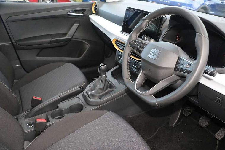 'Lights On' Reminder warning buzzer, 8" Digital cockpit, 9.2" touchscreen navigation system with type C USB socket, Voice control and DAB/AM/FM radio, Auto start and stop system, Bluetooth audio streaming with handsfree system, Cruise control, Digital clock, E-call, Full link smartphone integration with mirror link, wireless apple carplay, Google android auto + USB Type C cable for apple and android devices, Lane assist, Low fuel warning light, Outside temperature gauge, Power Steering, Rear parking sensor, Seat connect plus with safety, service, remote and online, SEAT logo boot release, Speed limiter, Traffic sign recognition, Trip computer, Comfort suspension, Auxiliary input socket, Radio/MP3 player, SD card slot, Steering wheel mounted controls, Anti theft roof antenna, Body colour bumpers, Body colour door handles, Body colour door mirror caps, Dimming interior rear view mirror, ECO LED automatic headlights and LED daytime running lights, Electric front windows, Electric headlight adjustment, Electrically adjustable door mirrors, Front/rear fog lights, LED tail lights, Rain sensor, Rear side wing doors, Rear wiper, Third brake light, 3 seat bench in 2nd row, 60/40 split folding rear seat, Air conditioning with dust and pollen filter, Chrome interior detailing and grey headlining, Cloth upholstery, Comfort seats, Front courtesy lights, Front cupholders x 2, Front reading lights, Gear shift indicator, Glovebox, Grey interior air vents, Height adjustable front and rear headrests (five), Height adjustable front seats, Height/reach adjust steering wheel, Illuminated boot, Instrument lighting with brightness control, Isofix, Leather multifunction flat bottomed sports steering wheel, Passenger sunvisor, Single front passenger seat, Sunvisors with mirror and driver side card holder, Safety and driving pack (S) - Ibiza, 3 point seatbelts on all 3 rear seats, ABS, Active front headrests, Child locks on rear doors, Electronic stability control, Energy recovery system, Front assist forward collision warning and autonomous emergency braking, Front driver and passenger side airbags with curtain airbag and front passenger airbag deactivation, Hill hold control, Multi-Collision braking, Seat belt reminder for front and rear seats, Tiredness recognition system, Tyre pressure monitoring system, Electronic engine immobiliser, Locking wheel bolts, Remote central locking + deadlocks, 16" Design machined alloy wheels in Nuclear grey,