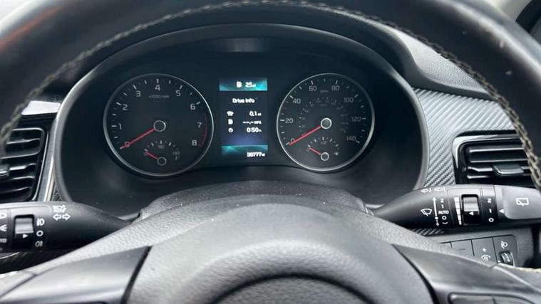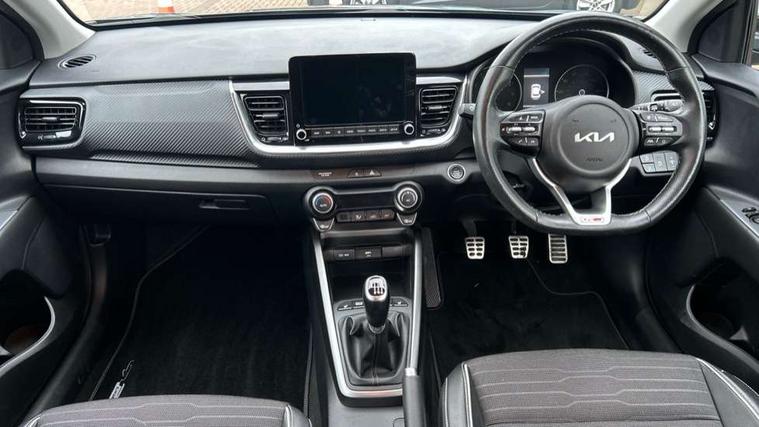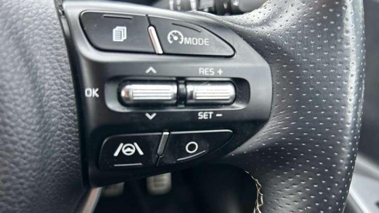 4.2" supervision colour cluster display, 8" touchscreen navigation, Apple car play/Android Auto with voice control, Blind spot collision warning, Cruise control + speed limiter, Drive mode selector, Electric power steering, Emergency stop signalling system, External temperature display, Forward Collision-Avoidance Assist (FCA) - City/Pedestrian/Cyclist, Front parking sensors, Intelligent speed limit assist, Kia connected services featuring TomTom live, Lane keeping assist system (LKAS), Driver attention warning (DAW) and High beam assist (HBA), Rear parking sensor, Reversing camera system, Trip computer, UVO connect, Intelligent Stop and Go, Audio system with 6 speakers, Bluetooth with music streaming, Front USB port, Rear USB port, Steering wheel mounted controls, Aero blade type windshield wipers, All round electric windows with drivers auto up/down function, Auto dimming rear view mirror, Automatic defog system, Automatic headlights control, Black side sill, door garnish and wheel arch trims, Black/body colour bumpers, Body coloured exterior door handles, Chrome side window trim, Electrically adjustable/heated/folding door mirrors with LED indicators, Front and rear silver skid plates, Gloss black door mirrors with matt black lower housing, GT-Line body kit, Headlight levelling device, Heated rear window, High gloss black and satin radiator grille, LED Bi-function projection headlights with static bending, LED daytime running lights, LED front fog lights, LED rear combination lights, Privacy glass - Rear windows and tailgate, Rain sensing front wipers, Rear fog lights, Rear wash/wipe, Roof coloured rear spoiler with high mounted braking light, Roof rails, Shark fin antenna, Solar windshield glass, Speed variable front wipers, Tinted glass, Two tone paint, Welcome and follow-me home light functionality, Windscreen Washer Level Warning, 12V power point front, 60/40 split folding rear seat, Air filter, All-round height adjustable headrests, Aluminium pedals, Automatic air conditioning, Centre armrest storage box, Centre console with cupholders, D-Cut perforated leather trimmed steering wheel, Dash illumination dimmer switch, Driver's seat height adjuster, Dual Height Luggage Area Floor, Front and centre cabin lights, Front and rear door map pockets with bottle holder, Gear shift indicator, Glovebox illumination, GT-Line cloth/faux leather upholstery, Heated front seats, Heated steering wheel, ISOFIX Child seat top tethers and anchor fixings outer rear seats, Leather trimmed gearshift, Luggage area light, Luggage area parcel shelf, Luggage net, Luggage net with hooks, Overhead console lamp, Overhead console with sunglasses cases, Passenger front seatback pockets, Passenger seat height adjuster, Satin chrome interior door handles, Sunvisors with vanity mirror illumination (Driver and front passenger), Tilt/telescopic adjustable steering wheel, ABS with Electronic Brakeforce Distribution (EBD) and Brake Assist System (BAS), All round 3-point seatbelts, Electronic stability control (ESC) and vehicle stability management (VSM), Front passenger airbag cut-off switch, Front seatbelt pretensioners + load limiters, Height adjustable front seatbelts, Hill start assist control (HAC), Impact sensing auto door unlocking, Rear seat Occupancy alert, Seatbelt reminder warning, Twin curtain airbags, Twin front airbags, Twin front side airbags, Tyre pressure monitoring system, Alarm system, Door deadlocks, Engine immobiliser, Locking wheel nuts, Smart key with engine start/stop button, Speed sensitive auto door locking, Visible vehicle identification number, High gloss black centre fascia, 17" GT-Line alloy wheels, Tyre mobility kit,