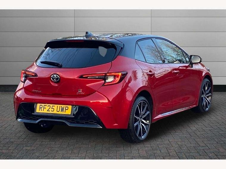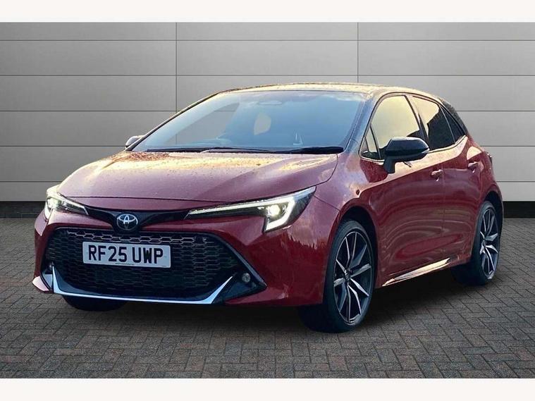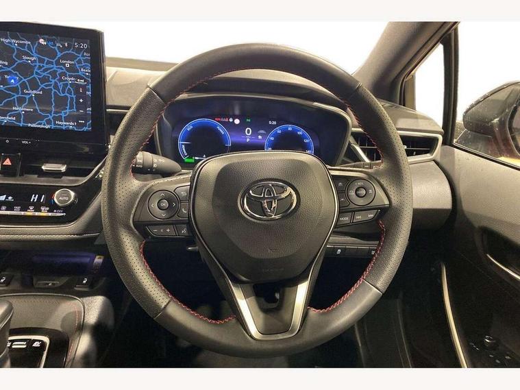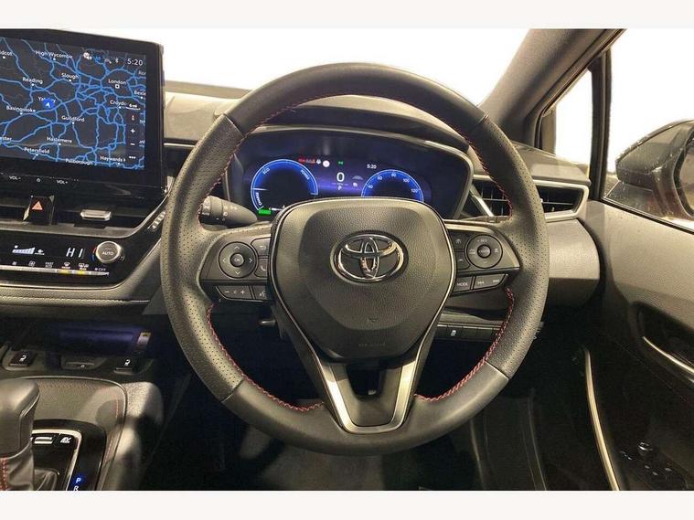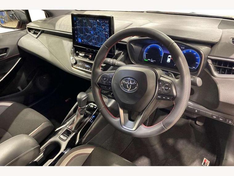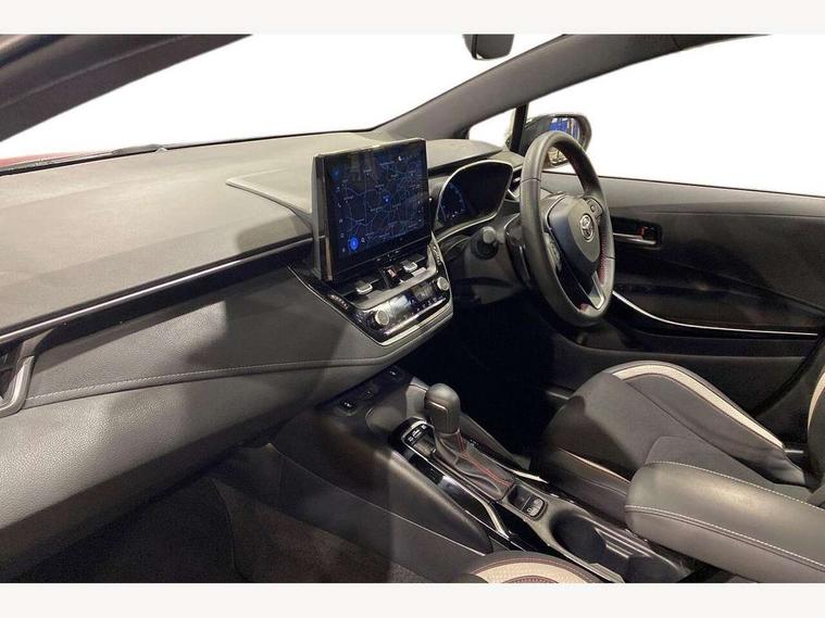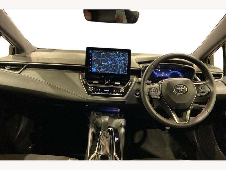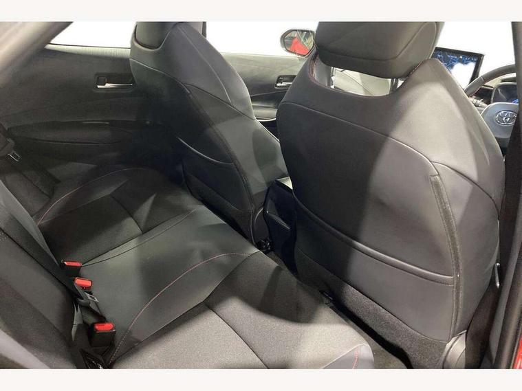 10.5" Multimedia display screen, Bluetooth telephone connectivity, Connected car functionality upgrade, tracker, remote status and e-care, Drive mode select (Eco, Normal), E-call, Electrically assisted power steering, EV drive indicator, Front and rear parking sensors, Full Digital 12.3" TFT Digital Combimeter, Intelligent clearance sonar, Key reminder warning, Lane Departure Alert (LDA) switch on steering wheel, Memory on adjustable speed limiter, MyT connected services, Proactive driving assist (PDA), Reversing camera, Smart entry and push button start with GR Logo, Smartphone integration with Apple CarPlay and wired android auto, Tailgate, Toyota remote services, Toyota smart connect navigation, Wireless charger, Gasoline particulate filter, Vehicle Stability Control (VSC), 6 speakers, AM/FM radio, DAB Digital radio, Front USB-C in centre console, Front USB-C in dashboard, Smart voice assist/ Voice recognition, USB and Aux in connectors + 12V front outlet, Anti-jam protection on power windows, Auto up and down function on all power windows, Automatic folding mirrors, Automatic headlights with high beam assist, Black centre and side air vents, Black toyota logo in front, Body coloured bumpers, Body coloured door mirrors, Body coloured outside door handles, Dark chrome lower grille, Electrochromatic mirror, Follow me home headlights, GR Sport dark chrome front mesh grille and black rear grille, GR Sport exclusive under guard, GR sport scuff plates, LED daytime running lights, LED dual beam projector headlights, LED front fog lights, LED High mounted stop light, LED rear combi lights with LED lightguide, Manual headlight levelling system, New grille pattern, Noise reduction layer on windscreen, Piano black diffuser, Power adjustable heated door mirrors, Power front windows, Power rear windows, Privacy glass with UV filter, Rain sensing wipers, Rear side wing doors, Rear window defogger, Rear window wiper, Reverse tilting door mirrors, Rocker and door lower moulding, Roof spoiler, Satin chrome insert on front air vents, Satin chrome insert on front door assist grips, Satin silver front spoiler, Shark fin antenna, Tailgate release with push button, Time adjustment on intermittent wiper, Turning signal integrated indicators in door mirrors, Unique lower skirt, Unique side rocker with black insert, UV-filter on driver and passenger windows, 2 Shopping bag hooks in luggage compartment, 3 rear headrests, 3 seat bench in 2nd row, 3 spoke steering wheel with satin insert and red stitching, 4 tie down hooks in luggage compartment, 60/40 split folding rear seat, Adaptive cruise control (ACC) switch on steering wheel, Adjustable speed limiter switch on steering wheel, Audio, multimedia and telephone switches on steering wheel, Black armrest on centre console box, Black gear shift console, Boot light, Boot underfloor storage, Centre room light, Driver and front passenger personal light, Driver and passenger assist grip, Driver and passenger seatback pockets, Driver and passenger sun visor with mirror and light, Dual zone automatic air conditioning with ECO mode switch, Electric lumbar support for passenger, Fabric/synthetic leather upholstery, Front and rear cup and bottle holders, Front door pockets, Front head restraints, Front passenger seat, Front sliding synthetic leather armrest, Gear knob, GR Sports seats with partial leather bolsters, Heated front seats, Illuminated entry system in room lamp, ISOFIX seat fixing (2 fixings on rear outer seats), Manual height adjustable for driver and front passenger seat, Manually tilt with sliding driver and front passenger seat, Nanoe-X air purifier, Paddle shifts, Parcel shelf, Pollen filter, Power adjustable lumbar support on driver seat, Power window switches with satin chrome inserts, Rear armrest with 2 cupholders, Rear passenger coat hooks (2), Red stitching on gear shift, Remote air conditioning, Satin chrome inside door handles, Satin chrome surround on speedometer, Sliding armrest on centre console box, Slow opening glovebox with lights, Textile floor mats, Tilt/telescopic steering column, Voice recognition switch on steering wheel, Whiplash Injury Lessening (WIL) feature (active headrest) for seats, White ambient lighting on open tray and front cup holder, Toyota safety sense 3 pack - Corolla, 3x3 point rear seatbelts, Adjustable driver and front passenger seat belt extender to top anchor point, Anti lock braking system + Electronic brake force distribution, Brake assist function, Child locks on rear doors, Downhill Assist Control (DAC), Electronic parking brake, Emergency brake light signal (EBS), Front passenger airbag on/off switch, Front seatbelt reminder, HAC - Hill start assist control, Rear seat belt reminder, Seatbelt pretensioners and force limiters, Supplemental restraint system (SRS) 7 airbags - dual driver, dual side curtain, side impact and driver knee airbags, Traction control, Tyre pressure warning system, Acoustic vehicle alert system (AVAS), Alarm with motion sensor and immobilizer, Power passenger window lock, Remote central locking + deadlocks, GR Sport interior and exterior styling, Satin chrome dash trim, Soft touch texture on upper dashboard, Stitching on lower dashboard, 18" 10 spoke black machined face alloy wheels, Tyre repair kit, Unique wheel finish with red wheel cap,