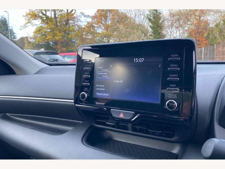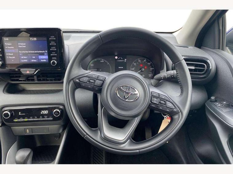 4.2" coloured TFT multi information display with analogue speedometer, Adaptive cruise control, Adjustable speed limit with speed warning, Bluetooth connectivity, E-call, Electric power steering, Hybrid energy display, Multi information display switches on steering wheel, Reversing camera, Smartphone integration with Apple CarPlay and Android auto, Tailgate, Voice recognition, Vehicle Stability Control (VSC), 4 speakers, 7" Multimedia display touch screen, Toyota Touch 2 with DAB, USB connection, Acoustic windscreen glass, Auto windscreen wipers, Automatic headlights, Body coloured door mirrors, Bulb indicators, Chequered front grille, Daytime running lights, Electric adjustable heated door mirrors, Follow me home headlights, Front auto power windows with anti jam protection, Halogen projector headlights, LED High mounted stop lamp, Manual headlight levelling, Rain sensor, Rear side wing doors, Rear spoiler, Rear wiper, Shark fin antenna, Turning signal integrated indicators in door mirrors, Variable front intermittent wipers, 3 adjustable rear headrests, 3 seat bench in 2nd row, 3 spoke leather steering wheel, 60/40 split folding rear seat, Active headrests, Adjustable boot height, Auto air conditioning, Coat hooks in rear grab handles, Cup holders (2 front & door), Data Communication Module (DCM) connected services, Fabric upholstery, Front armrest, Glovebox, Grey roof lining, Height adjustable driver's seat, Isofix seat fixing, Leather gearshift, Pollen filter, Shopping bag hooks, Single front passenger seat, Tilt/telescopic steering column, 3 point seatbelts on all rear seats, ABS+EBD+Brake assist, Electronic parking brake, Emergency brake light system (EBS), Front passenger airbag on/off switch, Front seatbelt reminder, Hill start assist control (HAC), Rear child proof door locks, Rear seat belt reminder, Supplemental Restraint System (SRS) 8 airbags: Driver & passenger's airbags, dual side curtain airbags, side impact airbags, front centre airbag, Toyota Safety Sense 2, Precollison + Night time Pedestrian & Cyclist Detection, Lane Trace Assist, Auto High Beam, Intelligent ACC & Road Sign Assist, Tyre pressure warning system, 2x Master key, Alarm/immobiliser, Remote powered central double locking doors, Soft touch instrument panel, Space saver spare wheel,