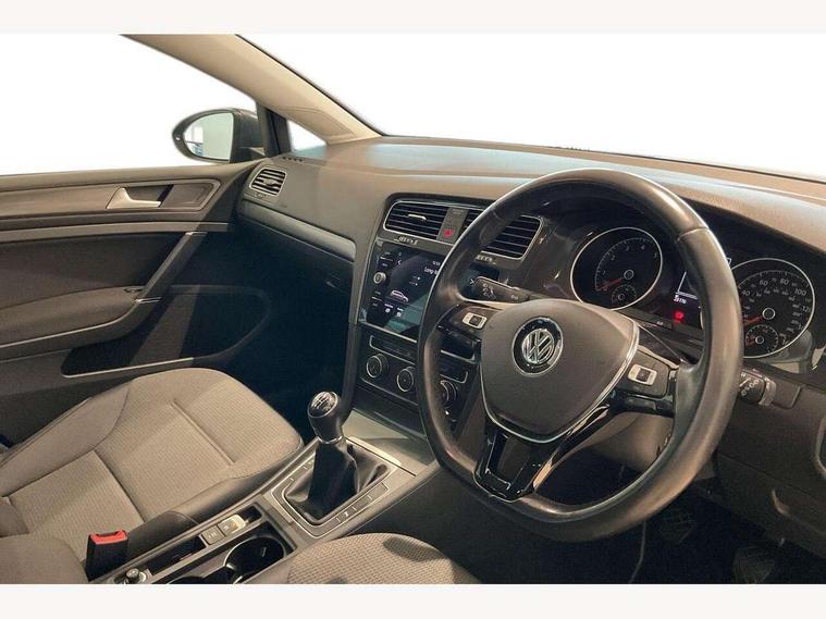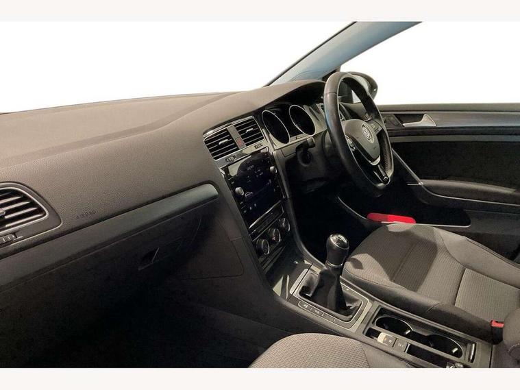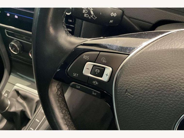 'Lights On' Reminder warning buzzer, ACC - Adaptive cruise control with front assist, forward collision warning, distance monitoring, city emergency brake and speed limiter, Bluetooth telephone and audio connection for compatible devices, Brake pad wear indicator warning light, Driver alert system, Driver profile selection, Driving Mode Selection with four preset modes - Eco, normal, sport or individual modes, Instrument cluster in white, Multifunction computer with visual gear change recommendation for fuel consumption, Power assisted speed sensitive electro-mechanical steering, Push tank flap, Speedo, rev counter, electronic odometer, trip, service interval display, exterior temperature and fuel gauge, Stop/start system, Warning buzzer and light for front seatbelts unfastened, Battery regeneration during braking, XDS electronic differential lock, Composition media system, DAB Digital radio receiver, Driver Personalisation profile selection, MP3/WMA compatability, Multi device interface (MDI) with USB connection, Personalisation 1.1 profile for media, Premium USB cable in choice of either Apple or Android smartphone compatibility, SD card slot, SMS Functionality, USB and SD card connectivity, Black front air intake and radiator grille with chrome insert, Black rear diffuser, Black roof rails, Body colour bumpers, Body colour door handles, Body colour door mirrors with integrated indicators, Dusk sensor + automatic driving lights, Electric front windows, Electric rear windows, Electrically adjustable and heated door mirrors, Fully galvanised body, Heated rear windscreen, Hidden exhaust pipe, High level 3rd brake light incorporating LED Technology, LED daytime running lights, LED front fog lights with static cornering light function, LED rear lights, Rear fog lamp, Rear tinted glass 65% light absorbing from B pillar backwards, Rear window aerial, Rear window wash/wipe with intermittent wipe, Reflectors in all doors, Tailgate with integrated rear roof spoiler, Windscreen wipers/ intermittent wipe + 4 position delay, 12V socket in luggage compartment, 3 rear headrests, 4 load lashing points in luggage compartment, 60/40 split folding rear seat backrest, Auto fold down lever in rear seat backrest, Bag hook in luggage compartment x 2, Cooled glovebox, Cupholder cover, Dust/pollen filter, Front and rear reading lights incorporating LED technology, Front centre armrest with storage compartment and two rear air vents, Front seat back storage pockets, Grab handles front x 2, rear x 2 with integrated coat hooks, Height and reach adjustable steering wheel, Illuminated vanity mirrors, Instrument lighting white adjustable panel illumination, Interior light delay, Isofix preparation for 2 rear child seats, Load through provision with rear centre armrest and cupholders x2, Luggage compartment lighting, Overhead storage box, Passenger underseat drawer, Pearl grey headlining, Storage box in luggage compartment, Storage compartment in roof console with cover, Storage compartments in centre console, Storage compartments in front doors, Storage compartments in rear doors, Stowable luggage compartment cover, Sun visors, Variable boot floor, height adjustable and removable, Convenience Pack - Golf, Light and Sight pack - Golf, Mirror pack - Golf, 3 rear three point seatbelts, Airbags - Driver's and front passenger's, curtain airbag, Driver's knee, front side impact and passenger's airbag deactivation switch, Anti-lock Braking System (ABS) with Hydraulic Brake Assist (HBA), Automatic post collision braking system, Child locks on rear doors, Driver/Passenger optimised head restraints, Electronic parking brake with auto hold, Electronic stability control (ESC) including Electronic differential lock (EDL) and ASR (Traction control) with deactivation via infotainment system, Front ventilated disc brakes and rear disc brakes, Pre crash preventive occupant protection, Three point height adjustable front seatbelts with tensioners, Tyre pressure loss indicator, Alarm with interior protection and deactivation via infotainment system, Electronic engine immobiliser, Remote central locking with 2 remote folding keys, Brushed dark silver decorative inserts in dash and door panels, Chrome plated air vent surround, Chrome plated electric mirror adjustment light switch surround, Polar night black centre console, Steel space saver spare wheel,