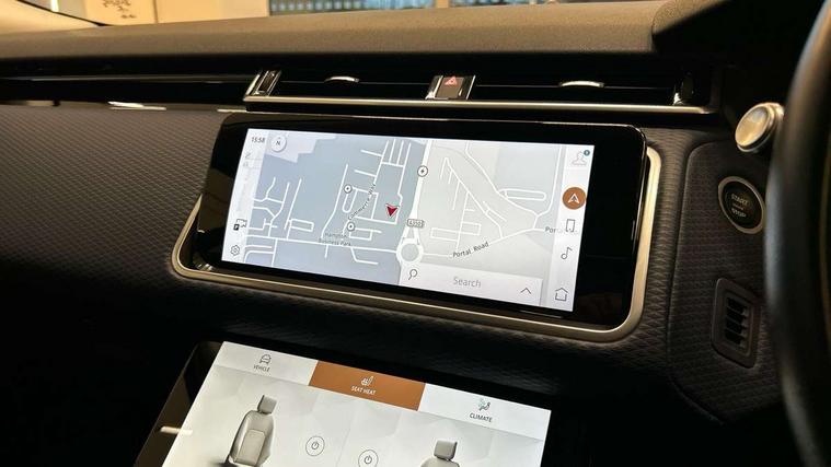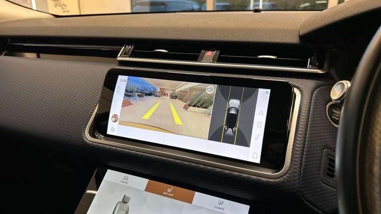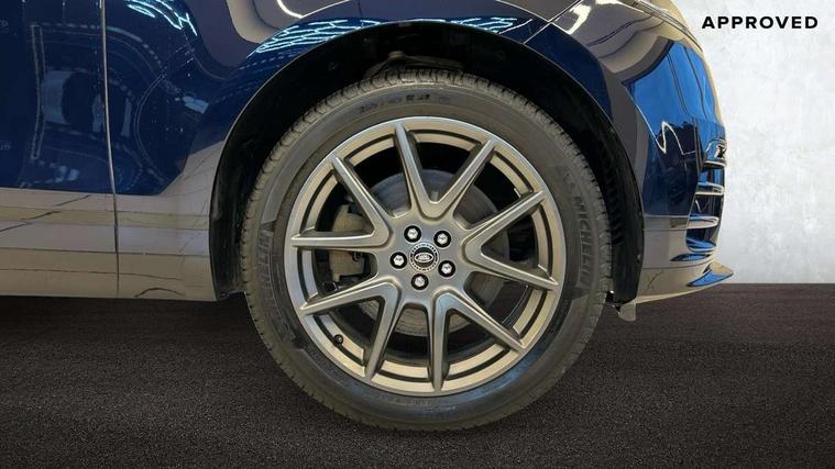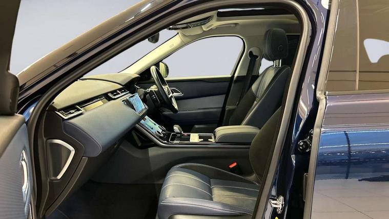 10" deployable touchscreen, Android Auto, Apple car play, Blind spot assist, Bluetooth connectivity, Brake pad wear indicator warning light, Driver condition monitor, eCall emergency call system, InControl remote, Interactive Driver display instrument cluster, Land Rover InControl apps, Lane keep assist, Pivi pro with connected navigation, Push button start, Rear traffic monitor, Service indicator, Speed proportional electronic power assisted steering (EPAS), Traffic sign recognition with adaptive speed limiter, Trip computer, Voice control system, 8 speed automatic transmission, AC/DC charging, Adaptive dynamics, All terrain progress control, Coil suspension system, Home charging cable, Open differential with torque vectoring by braking, Public charging cable, Single speed transfer box, Digital Audio Broadcast radio-DAB, Steering wheel mounted controls, Acoustic laminated windscreen, Adaptive front lighting system, Auto dimming interior rear view mirror, Automatic headlamp levelling, Automatic headlights, Body coloured bumpers, Boot protection plate, Electric heated/power fold door mirrors with approach lights and auto dimming driver side, Electric windows with one touch open/close and anti trap, Flush deployable exterior door handles, Follow me home headlights, Heated rear window with timer, Heated washer jets, Heated windscreen, LED 3rd brake light, Metal load space scuff plates, Rain sensor windscreen wipers, Rear animated directional indicators, Rear fog lights, Rear side wing doors, Rear wash/wipe, Tailgate/boot lid spoiler, Trailer stability assist, Velar and R-dynamic badge, 3 seat bench in 2nd row, Ambient lighting, Bright metal pedals, Driver/passenger sunvisors with illuminated vanity mirrors, Isofix system on outer rear seats, Loadspace cover, Overhead lighting console, Overhead stowage for sunglasses, Passive front headrests, Rear air vents, Rear centre headrest, Satin chrome gearshift paddles, Single front passenger seat, Standard interior, Twin front cupholders, Twin sliding front centre armrest, Online pack with data plan - Velar, 380mm front brakes and 325mm rear brakes, 3x3 point rear seatbelts, Anti-lock braking system (ABS), Cornering brake control, Curtain airbags, Customer configurable autolock, Door side intrusion beams, Driver airbag, DSC - Dynamic Stability Control, Electronic brake force distribution, Electronic parking brake, Electronic traction control, Emergency brake assist, Emergency braking, Front and rear seatbelt reminder, Hill descent control, Hill launch assist, Low traction launch, Passenger airbag, Power operated child locks, Rear airbags, Roll stability control, Side airbags, Tyre pressure monitoring system, Unpainted brake calipers, Global lock and unlock switch on driver door, Immobiliser, Intrusion sensor, Keyless entry, Lock only switch on front passenger door, Locking wheel nuts, Perimetric alarm, Remote central locking,