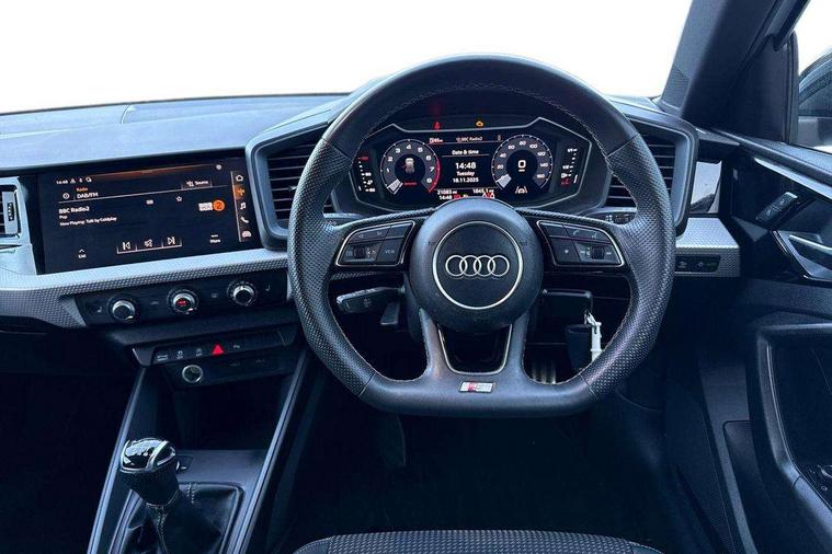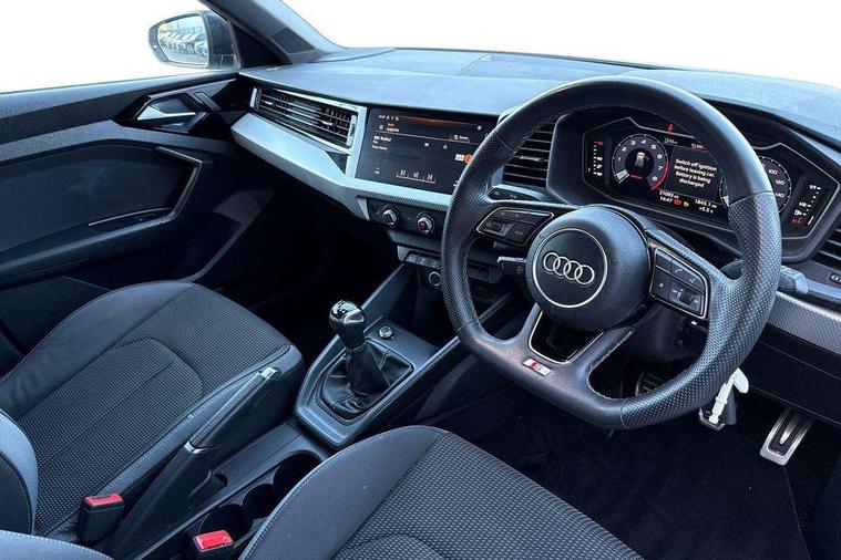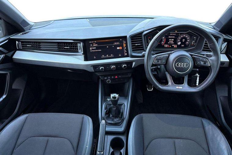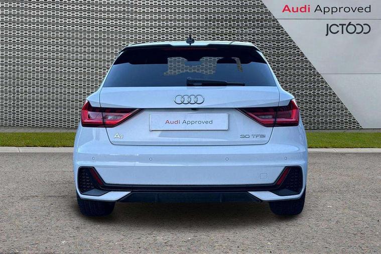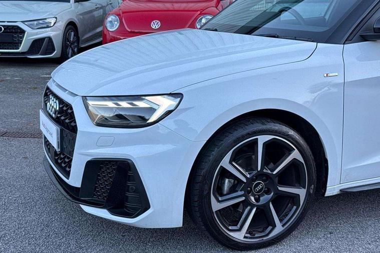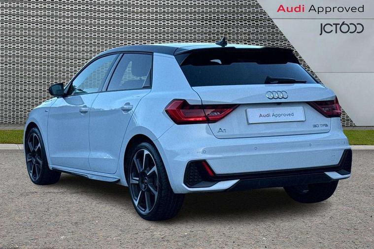 10.25" Digital instrument cluster display classis style instrument dials + speed, odometer, time, outside temperature, telephone menu + fuel level warning, Audi drive select - power steering assistance + engine, Audi smartphone interface with connect compatible smartphone via USB directly MMI display + Nav, music, third party apps controlled via MMI controller, Automatic start/stop system, Bluetooth interface, Cruise control, Driver's information system, Electromechanical power steering, Emergency e-call, Emergency services call system, Lane departure warning system, Service interval indicator, Speed limiter, Voice control system, Washer fluid level indicator, Sports suspension, 1 x SDXC card reader, 2 x USB type C connection points, DAB Digital radio, MMI radio plus with 8.8" colour MMI display screen and MMI touch, Auto dimming rear view mirror, Black door mirrors, Black side skirts, Body coloured bumpers, Door sill trims with aluminium inlays and logo, Electric front and rear windows, Electrically adjustable, heated, folding door mirrors with integrated LED side indicator, Front side air inlets in grained matt black and C frame in anthracite black, Front wing badges, Heat insulating glass windscreen and side windows, Heated rear windscreen, High level LED brake light, LED headlights with LED rear lights + dynamic rear indicators + headlight adjustment and high beam, turning light + LED daytime running lights, Radiator protective grille frame in matt aluminium silver, Rain and light sensors, Rear diffuser strip in matt titanium black, Rear fog lights, Rear side wing doors, Rear wing door, Rear wiper, Side front spoiler lips in grained matt black, 12V socket in centre console with two cup holders, 3 rear seats with headrests, 3 seat bench in 2nd row, 3 spoke flat bottomed multi-function plus leather steering wheel with S badging, grips in preforated leather and contrast stitching, 40:60 Split folding rear seat or folded fully, Black cloth headlining, Driver and passenger seat with manual height adjust with forward and backwards adjustment, Front and rear black floor mats with contrast stitching in fine silver, Front head restraints, Front passenger seat, Height and reach adjustable steering wheel, ISOFIX child seat mounting for front passenger and outer rear seats including top tether attachment point of outer rear seats, Leather gear knob with aluminium trim, Luggage compartment light with front and rear reading lights, Manually adjustable lumbar support in front seats, Stainless steel pedals, Black styling pack - A1 Sportback Black Edition, LED interior lighting pack - A1, Luggage compartment pack - A1, 3x3 point rear seatbelts, Audi pre-sense front with pedestrain and cyclist recognition, Brake assist function, Driver and front passenger airbag with front side and head airbags, Electronic Stability Control including ABS, EBD, ASR and EDL, Front passenger airbag deactivation switch, Hill hold assist, Manual rear child locks, Seatbelt height adjustment for front seats, Seatbelt monitoring, Tyre pressure warning light, Warning triangle and first aid kit, Anti theft alarm, Anti theft wheel bolts and loose wheel warning, Immobiliser, Remote central locking with 2 foldaway keys, Aluminium trim for control switches, air vents and digital instrument cluster, Silver grey inlays polygon structure in diamond paint finish, Structured grey accent areas including air vents, door handle recesses and centre console in quartz paint finish, 18" 7 spoke rotor design alloy wheels in gloss anthracite black, diamond cut finish,