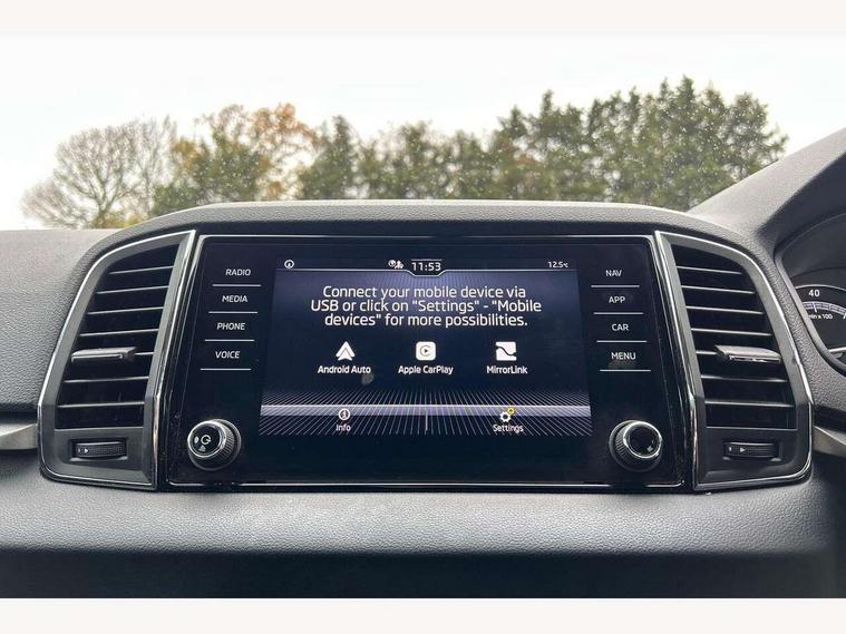 Amundsen satellite navigation with 8" touchscreen display with maps Europe, WLAN and web radio, Care connect, Driver fatigue sensor, Electro-mechanical PAS, Outside temperature gauge, Service interval indicator, SmartLink wireless for Apple and wired for Android, Start/stop system with regenerative braking, USB C Port x 2 in front centre console, DAB radio with Bluetooth, USB connection, Acoustic glass, Aero front windscreen wipers with intermittent function, Automatic headlight control system, Black electric window control buttons, Body colour door mirrors and handles, Body coloured bumpers, Electric front and rear windows with child proof lock, Electrically adjustable heated folding and auto dimming door mirrors, Heated rear windscreen, LED rear lights with high functionality, Light assistant (coming/leaving home/tunnel light), Privacy glass, Safety reflectors on front doors, Third brake light, 1.5 litre bottle holders in driver and front passenger door panels, 12V socket in boot, 12v socket in front centre armrest with storage compartment and rear air vents, 2 Folding hooks and nets in boot, 2 Front readings lights for driver and passenger, 3 rear height adjustable headrests, 4 foldable roof handles with rear coat hooks, Cargo elements in boot, Chrome inner door handles, Driver and passenger seats height adjust, Folding tables on the front seat backrests, Front head restraints, Height adjustable front three point seats belts with tensioners, Height/reach adjust steering wheel, Ice scraper, Illuminated and cooled glovebox, Illuminated luggage compartment, Isofix child seat preparation outer rear, Manual lumbar support for front seats, Net programme in boot, Pen holder, Pollen filter, Rear boot cover, Rear reading lights, Safety vest holder, Storage box in upper central dashboard closed, Sunvisors with illuminated vanity mirrors, Umbrella under passenger seat, Airbags - Front side, head, knee and curtain, Automatic door unlocking in case of crash, Automatic fuel cut off in case of crash, Driver airbag, Electronic parking brake with auto hold function, Emergency rear braking signal, ESC including ABS, MSR, ASR, EDS, HBA, DSR, RBS, MKB and traction control, Front assist radar scanning of the space in front of the car with automatic braking, Hill hold control, Passenger airbag with switch-off function, Pedestrian monitor, Seatbelt reminder signalisation and pretensioner for all seats, Three point seatbelts rear, Two tone horn, Tyre pressure display, Tyre pressure monitor, Alarm with interior monitoring, back up horn and tilt sensor with safe function, Electronic engine immobiliser, Remote central locking with 2 remote folding keys, Chrome framed air vents, Storage on wheel cover,