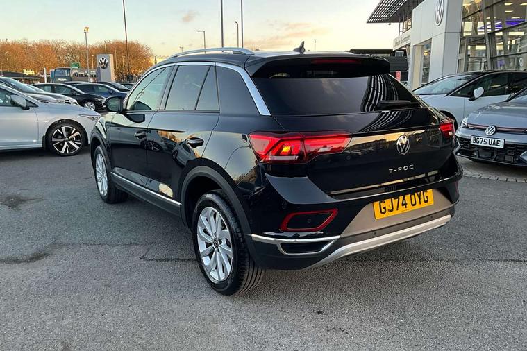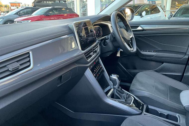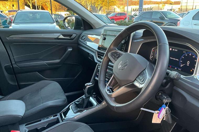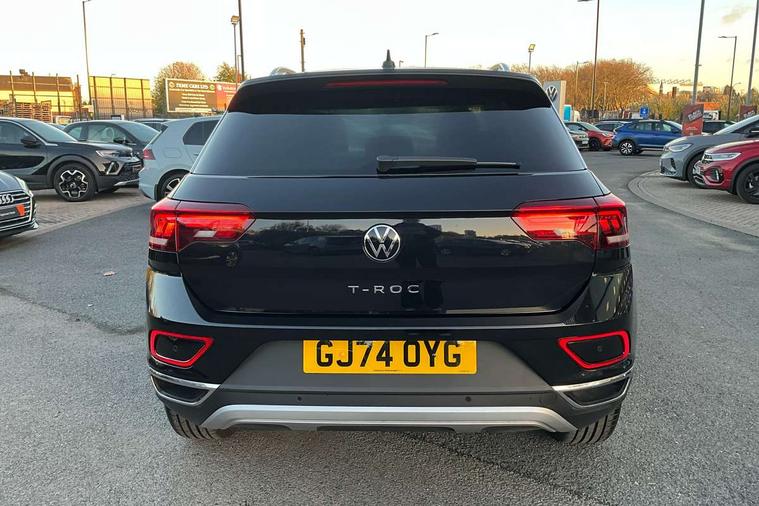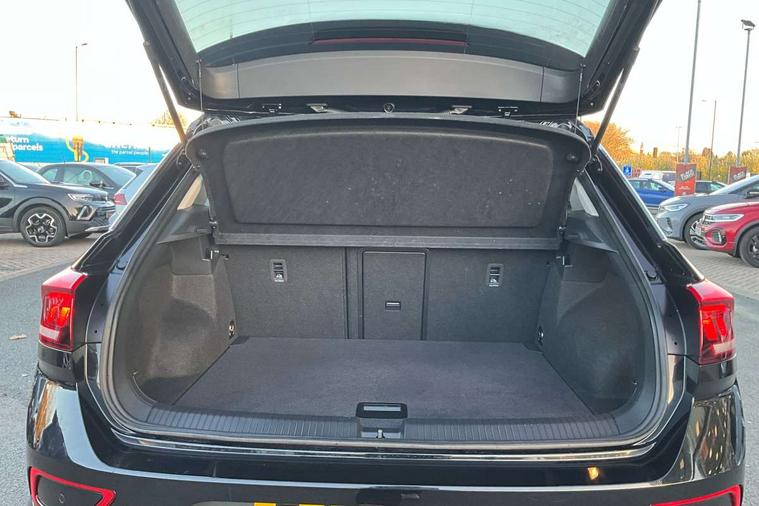 10.25" Digital cockpit pro, Advanced driver attention and drowsiness monitor, Emergency call service, Lane keeping system Lane Assist, Mobile phone interface, Modified key software - reduce switch off time for key status change to Long no motion, Online services, Park assist including front and rear parking sensors, Power assisted speed sensitive steering, Service interval indicator, Tailgate/trunk lid release from outside, Think blue trainer driver tips and journey analysis, Warning sound and light for front seatbelts unfastened, Wireless app connect, Wireless Smartphone charger, Battery regeneration during braking, Start/stop function with battery regeneration, DAB Digital radio, Diversity antenna for FM reception, Front and rear 6 speakers, Music playback - MP3, WMA and AAC files, Premium USB cable in choice of either Apple or Android smartphone compatibility, SD card slot, Simultaneous pairing of 2 compatible mobile devices, Title and cover art display, We Connect and We Connect Plus functionality, Auto dimming interior rear view mirror, Automatic hazard lights activation under emergency braking, Automatic headlight control with LED separate daytime running lights with coming/leaving home function, Body colour sports bumpers with silver metallic underbody fascia, Dynamic headlight range control with self adjusting whilst driving, Electrically adjustable and heated door mirrors, Extended roof spoiler, Exterior mirrors aspherical on driver side, convex on front passenger side, External USB type C socket and charging sockets, Front windscreen wiper with intermittent wipe and 4 position delay, Heated rear window, LED 3rd brake light, LED rear combination lamps, LED rear number plate lights, Light mode for poor weather, rain, fog or snow, Power windows with comfort operation and circuit breaker, Rain sensor, Rear exhaust tailpipe, Rear fog light on one side and reversing lights on both sides, Rear side wing doors, Rear wash/wipe with intermittent wipe setting, Remote electrically foldable door mirrors, puddle lights and reverse activated passenger's door mirror, 12V power socket in centre console, 3 rear head restraints, 3 seat bench in 2nd row, 4 load lashing points in luggage compartment, Air care climatronic air conditoning system with active combination filter and 2-zone temperature control, Chrome plated radiator grille inserts, air vent surrounds and light switch surrounds, Door and side trim panel with leatherette insert, Drawer under drivers seat, Front + rear carpet mats, Front centre armrest, Front comfort sports seats, Front cupholders x 2, Front footwell illumination, Front seat back storage pockets, Glove compartment door with light, Instrument lighting, white adjustable panel illumination, Interior ambient lighting and surround lighting, Interior light delay, Isofix child seat preparation, Leather gearshift handle, LED interior light with switch off delay/dimmer and 2 front/rear LED reading lights, Load-through provision with cup holder when folded down ('Unsplit rear seat bench, split folding backrest, with centre armrest), Luggage compartment lighting, Non-folding front passenger seat backrest, Single front passenger seat, Storage compartment in left and right luggage area, Storage compartment in rear doors, Storage compartments in driver and front passenger doors, Sunvisors with illuminated vanity mirrors, Variable boot floor, height adjustable and removable, Driver assistance pack without proactive passenger protection - T-Roc, 3 point height adj front seatbelts + pretensioners, 3 point seatbelts in outer rear with ECE label, ABS, Child locks on rear doors, City emergency braking and pedestrian monitoring, Driver and front passenger airbag with front passenger airbag deactivation, Driver and front passenger safety-optimised head restraints, Drivers seatbelt reminder, Electronic parking brake, Electronic Stability Control (ESC) inc EDL (Electronic Differential Lock) and ASR (Traction Control), Front and rear passengers curtain airbag system including front side airbags, Predictive pedestrian protection, Rear disc brakes, Two tone horn, Tyre pressure loss indicator, Volkswagen roadside assistance, Trims for alloy wheels,