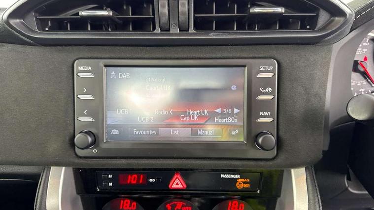 Bluetooth system, Cruise control, PAS, Push button starter, Trip computer, Limited slip differential, Vehicle Stability Control (VSC), 6 speakers, Aux-in socket, DAB Digital radio, MP3 compatible radio/single CD player, Steering wheel mounted audio controls, Touch screen audio system, USB connection, Body colour door handles, Body colour door mirrors, Body coloured bumpers, Dual chrome tipped exhausts, Electric adjustable/heated/folding door mirrors, Electric front windows, Follow me home headlights, Front fog lamps, Front/rear mudflaps, Headlight washers, LED daytime running lights, LED headlamps with dusk sensors, Rear spoiler, Scuff plates, Side skirts, 12V socket, Aluminium foot rest, Aluminium sports pedals, Bench folding rear seat, Chrome inner door handles, Dual zone automatic air conditioning, Front floor mats, Front leather armrest, Heated front seats, Height adjustable driver's seat, Isofix rear child seat preparation, Leather gearknob, Leather parking brake handle, Leather steering wheel, Leather/Alcantara upholstery, Tilt/telescopic adjustable steering wheel, ABS + EBD + EBA, Curtain airbags, Driver/Front Passenger airbags, Driver/front passenger side airbags, Drivers knee airbag, Front seatbelt pretensioners with force limiters, Hill start assist, Passenger airbag cut-off device, Traction control, Tyre pressure monitoring system, WIL whiplash protection front seats, Alarm/immobiliser, Keyless entry, Smart entry + Smart start, Suede dashboard trim, Suede door trim, 17" Alloy wheels, Space saver spare wheel,