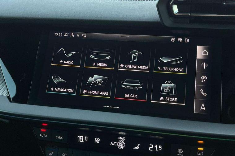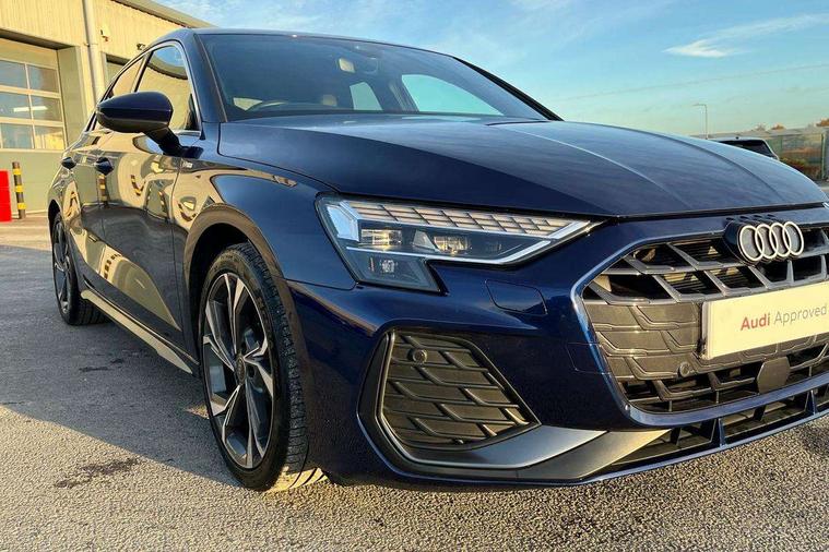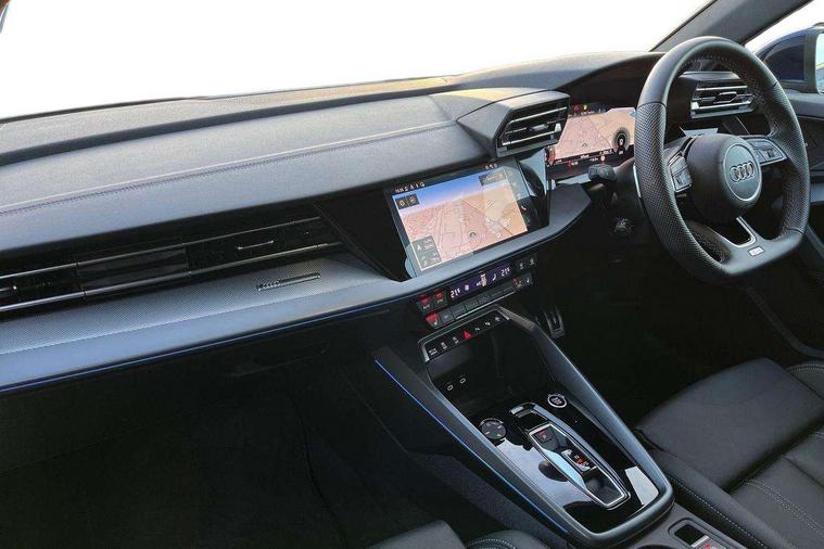 Adjustable speed limiter, Audi drive select, Audi smartphone interface with app store includes wireless Apple carplay, Android auto and Amazon alexa integration, Audi virtual cockpit plus - 12.3" full HD resolution dynamic digital instrument cluster, Automatic start/stop system with recuperation, Bluetooth interface, Camera based traffic sign recognition, Collision avoidance assistant, Cruise control, Distraction and Fatigue warning, e-Call (emergency call), Electromechanical power speed sensitive steering, Emergency assist, Lane departure warning system, MMI Navigation Plus with high resolution 10.1" colour touch screen display, Park Assist with parking system Plus, Service indicator, Tailgate, Trip computer, Voice control system with natural language interaction, Sports suspension, Audi Phonebox light with wireless charging, Audi sound system - 10 loudspeakers including centre loudspeaker and subwoofer, DAB Digital radio, USB ports with charging function in the rear, Acoustic glass windscreen, All weather light, Aluminium window trim, Auto dimming frameless rear view mirror, Automatic dynamic range control, Body colour exterior mirrors, Chrome exhaust tailpipes, Dipped beam, main beam, position light and turning light, Electrically adjustable/heated/folding/auto dimming door mirrors with integrated LED indications + kerb view function for passenger side, Exterior model badging, Front and rear side air inlets in grained matt black with dark liquid chrome frame, Front electric windows, Front radiator grill in high gloss dark chrome, Heat insulating glass windscreen, Illuminated door sills with aluminium inserts at the front with S logo, Intersection light, LED 3rd brake light, LED brake lights, LED daytime running x3, LED headlights with LED rear lights and dynamic rear indicators, LED rear number plate lights, LED reverse light, LED tail lights, Light and rain sensors, Manoeuvring light, Motorway light, Privacy glass - dark tinted rear window, rear door and side windows, Rear diffuser and grill in grained matt black with inlay in dark liquid chrome, Rear electric windows, Rear side wing doors, Rear wiper, S line bumpers, S roof spoiler, Side S line emblems on front wings, Side sill trim in dark liquid chrome, Static Cornering lights, 12V socket and storage compartment in front centre console, 3 seat bench in 2nd row, 3 spoke flat bottomed leather multifunction sport steering wheel with gear shift paddles, 3-zone deluxe automatic air conditioning, 4 way electrically adjustable lumbar support for driver and front passenger, 40/20/40 split folding rear seat bench, Black cloth headlining, Black front and rear floor mats, Front and rear centre armrest in artificial leather with contrasting stitching on armrests and instrument panel, Front and rear headrests, Heated front seats, Height and reach adjustable steering wheel, Manual boot compartment lid, Manually adjustable front seats, Rear centre armrest with cupholder, S badging on the steering wheel, Seat side bolsters, Single front passenger seat, Stainless steel pedals and front footrest in black, Twin leather upholstery with front sports seats S embossed logo, Aluminium interior elements pack - A3, Multi-coloured LED interior lighting package with Multi-coloured contour lighting of instrument panel - A3, 3x3 point rear seat belts, Driver and front passenger airbag with passenger airbag deactivation, Electronic Stabilisation Control (ESC) including ABS, ASR and EDL, First aid kit with warning triangle and 2 safety vests, Front side airbags with head airbags and interaction airbag, Hill hold assist, Pre-sense front with pedestrian and cyclist detection, Seatbelt monitoring, Tyre pressure loss indicator, Anti theft alarm, Anti-theft wheel bolts, Electronically operated child locks, Immobiliser, Remote central locking with safelock, Black dashboard, Inlay in dark aluminium spectrum,