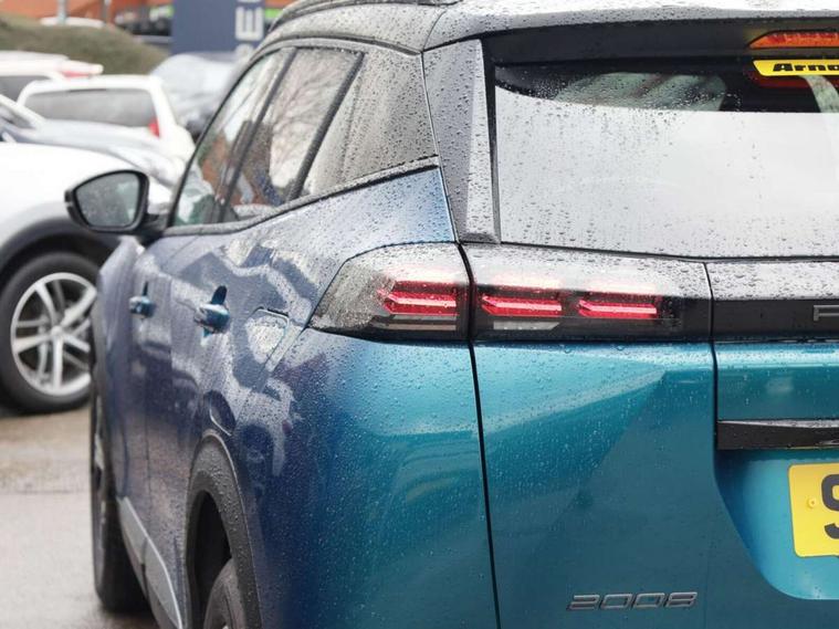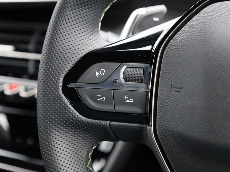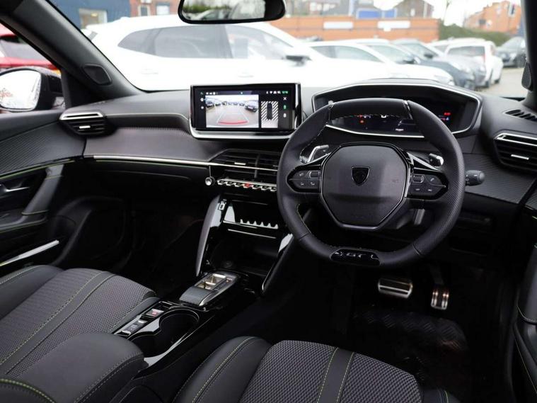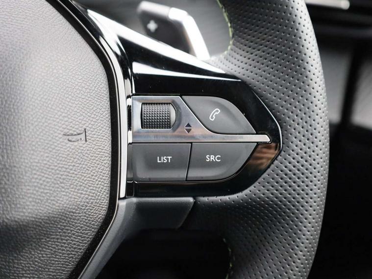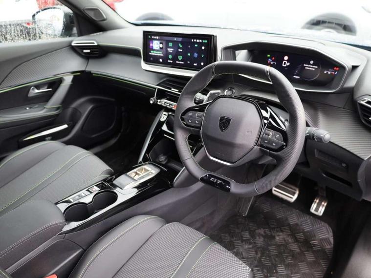 Bluetooth telephone facility, Driver attention warning, E-call, Exterior temperature indicator with ice warning, Front and rear parking sensors, Multi function trip computer, PEUGEOT i-Cockpit with 10" high definition capacitive touchscreen, PEUGEOT i-Cockpit with compact steering wheel, PEUGEOT i-Cockpit with configurable 3D headup instrument panel, PEUGEOT SOS and assistance, Speed limit recognition and recommendation, Wireless mirror screen with mirror link, apple carplay and android auto, Petrol Particulate Filter, 1x USB-C socket in rear and 1x USB-A socket in rear, 2 USB-C ports in the front, 6 speakers radio with mp3 compatible, DAB Radio (Digital Audio Broadcasting), Voice recognition for radio, navigation and telephony features, 2 X Rear number plate lights, Aluminium door sill scuff plates with peugeot lettering, Automatic hazard light activation upon heavy brake application, Black diamond roof, Black front wing trim with gloss black detail and GT badging, Body coloured exterior door handles, Dark tinted rear side and tailgate windows, Diamond black mirror shells, Diamond black rear roof spoiler, Electric, heated, and power folding door mirrors, Frameless electrochrome interior rear view mirror, Front bumper - Meteor grey lower trim, Full LED headlights with smartbeam assist with auto height adjustment, Gloss black finish on B pillar, Gloss black rear cluster connecting strip, Gloss black roof bars, Gloss black window surround, GT model designation badging on tailgate, Headlights left on audible warning, LED daytime running lights with distinctive 3 claw signature, LED side indicator lights integrated into door mirrors, LED third brake light, Model designation badges front and rear, One touch electric front/rear windows with pinch protection, Radiator grille - body coloured vertical chequered grille, Radiator grille - gloss black top edge trim, Rear full LED 3D peugeot signature claw effect lights with daylight function, Rear reversing lights, Rear side wing doors, Rear windscreen wiper triggered automatically in reverse gear, Reinforcement of the front bumper, Tailgate with heated rear windscreen and wiper blade, Twin chromed exhaust pipes, Wheel arch extensions, 1/3 to 2/3 split folding rear seats, 12V socket, 3 seat bench in 2nd row, 8 Colour personalisable ambient lighting, Automatic air conditioning with pollen and active carbon filter, Central front armrest with storage compartment, Driver and front passenger sport seats, Electric power steering with reach and rake adjustable steering column, Front and rear carpet mats in black, Front LED interior light with 2 reading spotlights and rear interior light with timer, Front passenger seat manual adjustment - height, longitudinal and back rest angle, High centre console, ISOFIX child seat mounting points on passenger seat, Mistral full-grain perforated leather steering wheel with Lime Green stitch detail and satin chrome 'GT' emblem, Multifunction steering wheel, Piano keys: Gloss black and chrome toggle switches to access main functions of the vehicle and touchscreen functions, Roof lining - Mistral black, Seatbelt unfastened on the move audible and visual alert for front and rear seats, Single front passenger seat, Two position modular boot floor, Visibility pack - 2008, 2x 2nd row ISOFIX child seat mountings, ABS (Anti-lock Braking System) with EBD (Electronic Brakeforce Distribution) and EBA (Emergency Braking Assistance), Active safety brake with night function/cyclists/pedestrians, Adaptive driver and front passenger airbags with passenger airbag deactivation function, Advanced emergency braking system (AEB) with enhanced camera with the high beam and radar, Child locking functionality on rear doors, Driver/front passenger side airbags, Electric parking brake, ESP (Electronic Stability Program) + Hill Start Assist, Front and rear curtain airbags, Front and rear disc brakes, Front and rear three-point retractable seatbelts, with force limiters, Front optimised safety headrests and rear retractable headrests (x3), height adjustable, Tyre pressure sensor, Automatic door locking when moving off, Deadlocks, Electronic code immobiliser, Thatcham category 1 alarm, Carbon effect Dashboard, front and rear door panel finish,