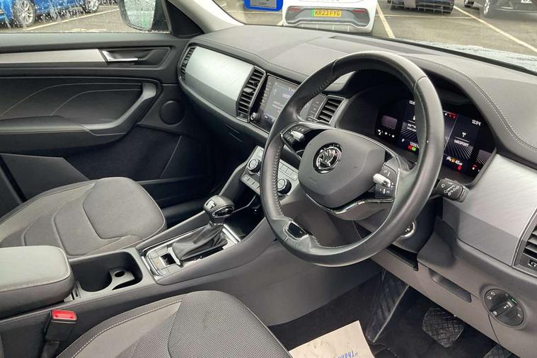 Bluetooth system, Colour multifunction trip computer, E-call, ECO Stop/start function, Exterior temperature indicator, Power assist steering, Smartlink wireless for apple carplay and wired for android auto, Speed limiter, Tailgate unlocking from outside, USB C Port x 2 in front centre console, 8 Speakers, DAB Digital radio, Aero front windscreen wipers with intermittent function, Aero rear window wiper, Auto dimming rear view mirror, Black wheel arch surrounds, Body colour bumpers, Body colour door mirrors and handles, Electric front and rear windows, Extended rear spoiler with finlets in gloss black, Front fog lights, Headlight washers, Heated rear window, Invisible tailpipe, LED rear fog light, LED third brake light in rear spoiler, Light assistant (coming/leaving home/tunnel light), Off-road style lower front bumper element, Privacy glass, Radiator grille frame in matt black with chrome strip, Rain and light sensors, Rear LED lights (high functionality) with welcome effect and dynamic indicators, Rear side wing doors, Safety reflectors on front and rear doors, Window control switches with black trim, 12V socket in boot, 2 rails with 2 hooks, 3 seat bench in 2nd row, 4 foldable roof handles with rear coat hooks, 60:40 foldable rear seat with sliding adjustment and backrest angle adjustment, Bottle holders in door panel in the 1.5 litre front and 1 litre rear, Chrome interior door handles, Cloth upholstery, Coat hooks on B pillar, Covered storage compartment on driver side, Dual zone automatic air conditioning with humidity sensor and control, Front centre armrest with storage compartment, cup holder and 12V socket, Gear shift lever with chrome frame and black gloss insert, Grey headlining, Grey stitching in front and rear armrests and door armrests + door inserts, Height adjustable front headrests, Height adjustable front seats, Illuminated and cooled glovebox, Illuminated luggage compartment, Isofix child seat fittings in outer rear seats with top tether, Manually adjustable steering column, Net programme in boot (1x horizontal Net, 2x vertical Nets), Overhead glasses storage compartment, Pollen filter, Rear centre armrest with cupholders, Single front passenger seat, Sliding trunk cover, Small Bags on the inner sides of the front backrests, Sunvisors with illuminated vanity mirrors, Three rear height adjustable headrests, Ticket holder on A Pillar, Umbrella in door panel, Auto door release and activation of warning lights in the event of an accident, Child locks on rear doors, Driver and front passenger airbag with knee airbag and front passenger airbag deactivation, Electronic parking brake with hill start assist, Emergency rear braking signal, ESC (incl. ABS+MSR+ASR+EDS+HBA+DSR+RBS+MKB), Front assist with autonomous emergency braking, Front side airbags with curtain airbags, Fuel cut off safety device, Height adjustable front 3 point seatbelts + pretensioners, Hill hold control, Rear disc brakes, Safety vest holder in door, Seat belt reminder for all seats, Three point rear seat belts, Two tone horn, Tyre pressure monitor, Alarm with interior monitoring and tilt sensor with safe function, Anti-theft wheel bolts, Immobiliser, Keyless entry and start system (KESSY), Remote central locking with 2 keys, Grey stitching in dashboard,