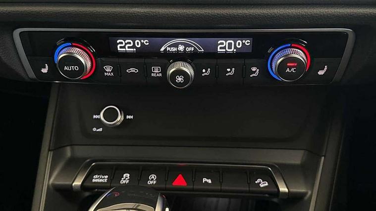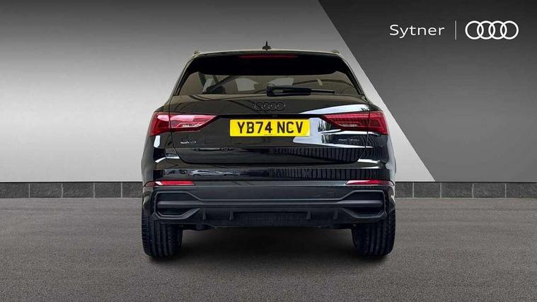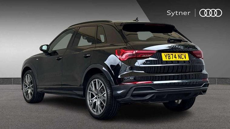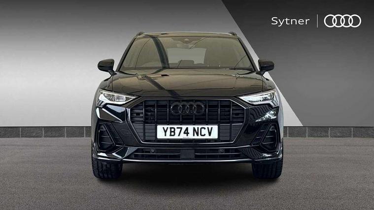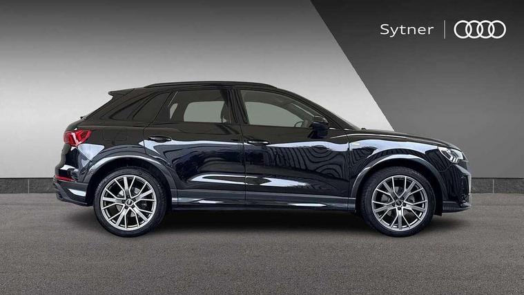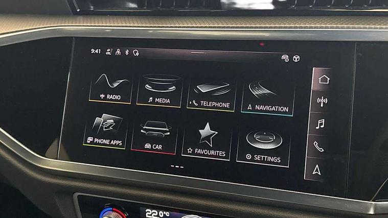 Amazon alexa Integration, Audi connect safety and service, Audi drive select, Audi lane departure warning, Audi Virtual Cockpit - 10.25" display, Bluetooth interface, Camera based traffic sign recognition, Distraction and Fatigue warning, Legal emergency call, MMI Navigation Plus with high resolution 10.1 inch touchscreen colour display, Power operated tailgate, Progressive steering, Service interval indicator, Smartphone interface includes wireless Apple carplay/Android Auto, Start stop system with recuperation, Voice control system with natural language interaction, Diesel particulate filter, Sports suspension, 2 USB-C ports with charge and data functions, 6 passive loudspeakers, DAB digital radio module, Acoustic windscreen, Audi Beam uses LEDs to project the Audi logo onto the ground as you exit your Q3, Auto dimming door mirrors, Auto dimming frameless rear view mirror, Black roof rails, Electrically folding, adjustable and heated door mirrors with integrated LED side indicators and kerb view function for passenger side, Front and rear electric windows, Front fog lights, Grille vertical bars in aluminium silver/Matt, High gloss black finish B and C pillars, LED Dynamic rear indicators, LED headlights with LED daytime running lights, LED rear lights, LED third brake light, Privacy glass dark tinted rear and rear-side windows (from B-pillar backwards), Rain and light sensors, Rear diffuser grille in grained matt black, Rear diffuser strip in matt anthracite black, Rear side wing doors, Rear wiper, S line bumpers in contrasting Manhattan grey, Variable front intermittent wipers, 12V socket in rear centre console, 3 seat bench in 2nd row, 40:20:40 folding with manual adjustment for 60:40 forwards/backwards position and backrest angle, Adjustable rear seat bench/backrest with centre armrest and cupholder, Black cloth headlining, Dual zone electronic climate control, Electric lumbar support, Front and rear black floor mats with contrast stitching in rock grey, Front and rear headrests, Front centre armrest, Height and reach adjustable steering wheel, Illuminated door sill trims with S logo, ISOFIX child seat mounting for front passenger with airbag deactivation and outer rear seat including top tether attachment point for outer rear seats, Manual front seats with height adjustment, Perforated leather gearknob, Single front passenger seat, Stainless steel luggage compartment sill finisher, Stainless steel pedals, Twin leather upholstery with front sport seats + S embossing, Black styling pack - Q3, Non smoking pack - Q3, 3x3 point rear seatbelts, 6 airbags - Driver, front passenger, curtain and side windows, Audi pre-sense front with pedestrain and cyclist recognition, Electrically operated child locks on rear doors, Electromechanical parking brake, Electronic stabilisation control including ABS, ASR and EDL, Front seatbelt reminder, Hill descent control, Hill hold assist, Pre sense basic, Seatbelt monitoring, Tyre pressure warning, Warning triangle and first aid kit, Anti theft alarm, Anti theft wheel bolts, Immobiliser, Remote central locking, Aluminium look interior elements, Detail dashboard around MMI touch colour display in glass look, black with surround in aluminium look, Leatherette door armrest, Piano black inlay,