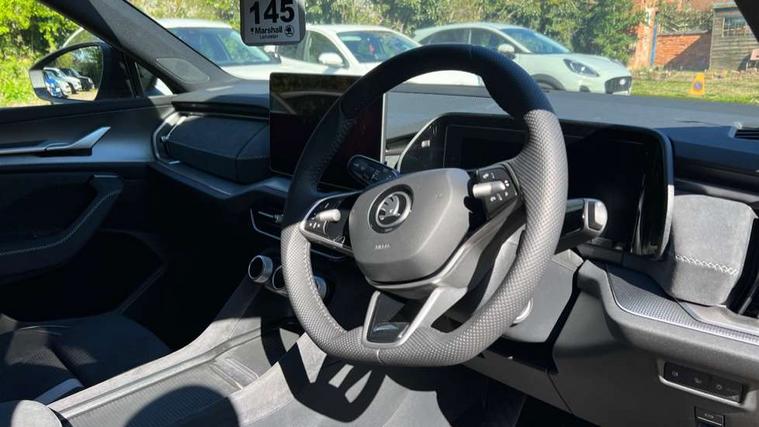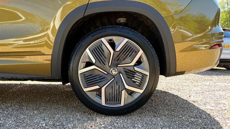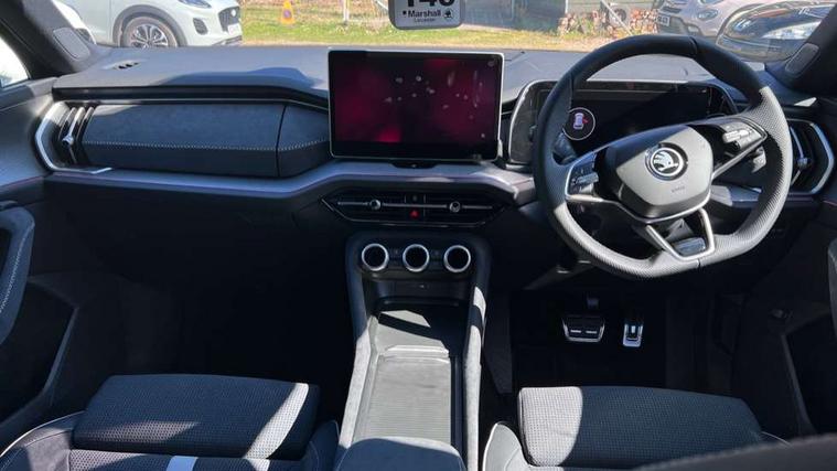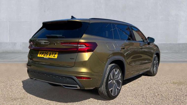13" satellite navigation touchscreen display, Blind spot detection with door exit warning, Bluetooth system, ChatGPT functionality, Driver alert - Fatigue and drowsiness monitor, Dry display cleaner, Emergency call, Front and rear parking sensors, Front cross traffic assist, Lane assist, Off road modes, PAS, Rear traffic assist, Tailgate unlocking from outside, Traffic sign recognition, USB C Port x 2 in front centre console, Virtual Cockpit - 10.25" digital display, Voice control system, Wireless charging for two smartphones (15W) with cooling function, Wireless SmartLink for Apple CarPlay and Android Auto, Stop/start function, 2x USB-C in the rear, DAB Digital radio, Aero front windscreen wipers with intermittent function, Auto dimming rear view mirror, AWL (all weather lighting) and all weather light with cornering function, Black diffuser and decorative tailpipe with a unique dark chrome finish, Black roof rails, Black sports styling including front grille and window surrounds, Black wheel arch surrounds, Body colour door handles, Cornering light and poor weather light, Electric folding /adjustable/separted heated/folding door mirrors, auto dimming with boarding sports and memory function, Electric front and rear windows, Exterior black decorative trims, Front and rear sports bumpers including lower rear chrome strip, Gloss black door mirrors, Gloss black window frame and D pillar, Heat insulating glass in windshield, Heated rear window, Ice scraper in fuel tank cap, LED daytime running lights, LED third brake light in rear spoiler, Light assistant with automatic headlight control and coming home feature, Logo projection in door mirrors, Privacy glass, Rear roof spoiler, Rear side wing doors, Rear window wiper, Red decorative strip between rear LED lights, Safety reflectors on front and rear doors, Sportline badge on front fenders, Tailgate lettering in Black, Unique dark chrome design logo on alloy wheels, Window control switches with black trim, Windscreen wipers with rain sensor, Without engine designation, 1.5l bottle holder points in all door, 1x centre rear reading light, 2 seat bench in 3rd row, 3 configurable smart dials with 32mm coloured display, 3 seat bench in 2nd row, 4 foldable roof handles with rear coat hooks, Aluminium pedals, Ambient interior lighting - Dashboard, front-door stowage compartments, front and rear door panels and footwell lighting, Automatic gear selector on steering column, Chrome interior door handles, Driver/front passenger reading lights, Fabric headlining, Fixed bench 40:60:40 split folding backrests, Front and rear floor mats, Front centre armrest with jumbo box storage compartment, cup holder and 12V socket, Front sport seats, Height adjustable front headrests, Interior black decorative trims, Isofix child seat fittings in outer middle row rear seats and front passenger with top tether, Manually adjustable steering column, Pollen filter, Rear centre armrest with cupholders, Rear seat boot backrest release, Single front passenger seat, Skoda lettering on steering wheel, Storage pocket including mobile phone pockets on the backs of the front seats, Sunvisors with illuminated vanity mirrors, Three rear height adjustable headrests, Ticket holder on A Pillar, Tri zone climate control, Umbrella in door panel x1 made from sustainable materials, Upper and lower glovebox with card holder and coin compartment, USB C port by rear view mirror for charging only (15W), Acoustic package - Kodiaq, Performance package - Kodiaq, Sportline design selection pack - Kodiaq, Auto door release and activation of warning lights in the event of an accident, Driver and front passenger airbag with knee airbag and front passenger airbag deactivation, Electric child locks, Electronic parking brake, ESC (incl. ABS+EMD+MSR+ASR+EDL+HBA+DSR+RBS+ESBS+MCB+TSA+XDS), Front assist with braking reaction to vehicles, pedestrians and cyclists, Front disc brakes, Fuel cut off safety device, Height adjustable front 3 point seatbelts + pretensioners, Hill hold assist, Junction assist with automatic emergency braking, Rear disc brakes, Safety vest holder in door, Seat belt reminder for all seats, Three point rear seat belts, Two tone horn, Tyre pressure monitor, Alarm with interior monitoring and tilt sensor with safe function, Anti-theft wheel bolts, Immobiliser, Remote central locking with 2 keys, 20" Rila anthacite polished alloy wheel with black matte aero covers,