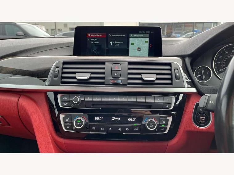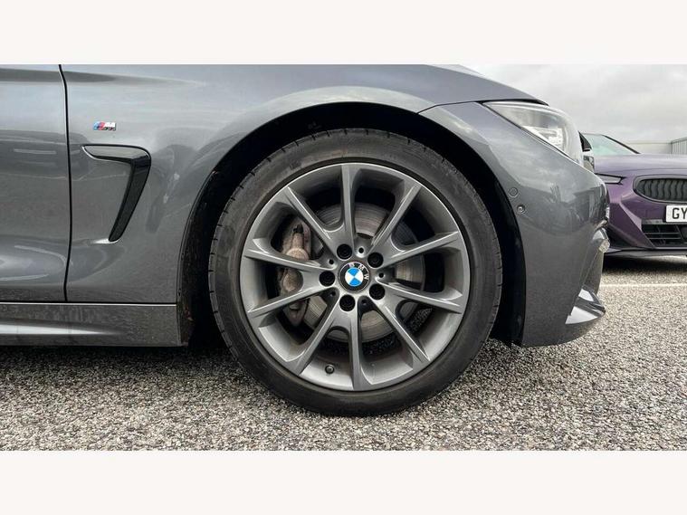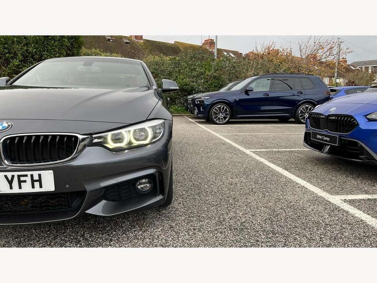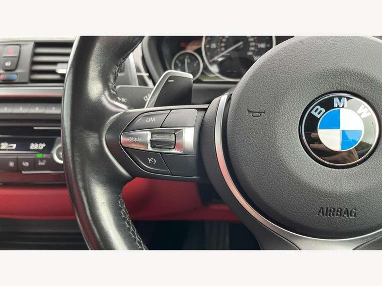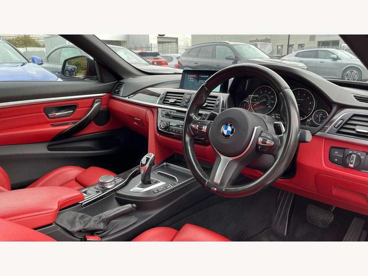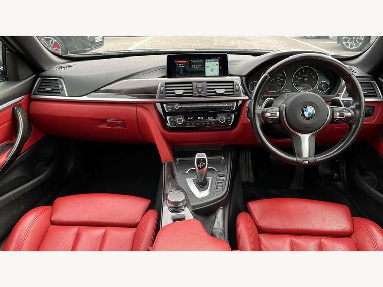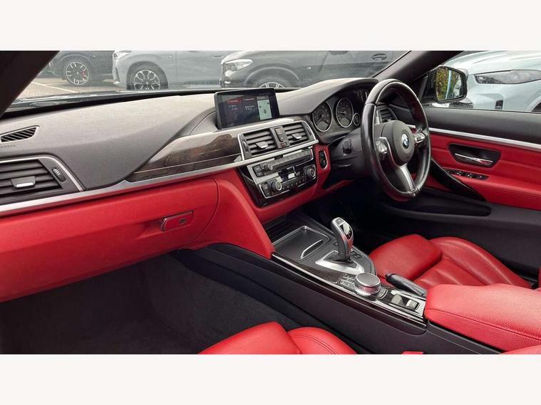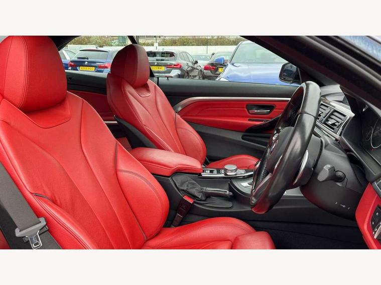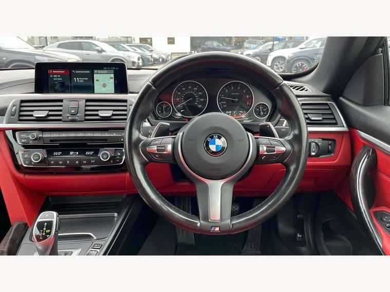 BMW Online services, BMW remote services, BMW Teleservices, Brake pad wear indicator warning light, Check control system, Door/boot open warning, Front/rear Parking distance control, iDrive controller and display with 6.5" monitor, Lights on warning, Oil temperature gauge, On board computer, Outside temperature display, Real time traffic information, Run flat indicator, Service interval indicator, Stop/start button, Drive Performance Control, Electronic differential lock, Sports function on gearbox with steering wheel mounted gearshift paddles, Bluetooth audio streaming, BMW professional radio/CD/MP3, DAB Digital radio, 2 speed adjustable intermittent wipers with wash/wipe function, Auto dimming rear view mirror, Body colour bumpers, Body colour door handles, Body colour door mirrors, Body colour roof mouldings, Chrome kidney grille with black vertical slats, Door sill finishers, Dual chrome exhaust, Electric adjustable heated door mirrors, Electric front windows/one touch facility, Follow me home headlights, Heat insulating tinted glass, Heated windscreen washer jets, High gloss shadow line, LED daytime running lights, LED front fog lights, Left and right single chrome exhaust tailpipes, M aerodynamic bodystyling, Rain sensor including auto headlights activation, Welcome lighting, Windscreen with grey shadeband, 12V sockets in front centre console and passenger footwell, 3 spoke leather M sport multifunction sports steering wheel, Anthracite Velour floor mats, Dual zone climate control, Folding front centre armrest with storage compartment, Folding storage compartment with glasses holder + coin tray, Front cupholders x 2, Front door storage with bottle holder, Front head restraints, Front sports seats with electric side bolster adjustment, Front/rear armrests within door panels, Glovebox with lid, Heated front seats, Integrated rear head restraints, ISOFIX child seat preparation+airbag deactivation, Lashing eyelets in boot, Leather handbrake grip, Reach + rake adjustable steering column, Rear centre armrest, Storage compartment behind rear seat, Storage compartment in centre rear seat base, Storage compartment in rear centre console, Toolkit located in luggage compartment, Extended lights package - 4 Series, 3 point seatbelts on all seats, ABS/EBD, Automatic Stability Control (ASC), BMW emergency call, Brake energy regeneration, Cornering brake control (CBC), Crash Sensor - activates hazard/interior lighting + unlocks doors, Driver seatbelt warning indicator, Driver/Front Passenger airbags, DSC+, Dynamic brake control, Dynamic Traction Control - DTC, Front passenger airbag deactivation, Front seatbelt force limiters, Front seatbelt pretensioner, Front side airbags, Hill start assist, Roll over protection, Side impact protection, Tyre pressure monitor, Warning triangle and first aid kit, Central locking including fuel filler and boot, Drive away door locking, Electronic immobiliser, Remote control Thatcham category 1 alarm,