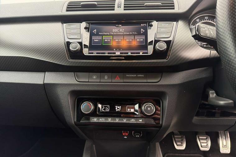 Exterior temperature gauge, Front assistant collision mitigation, Multi function trip computer, PAS, Service interval indicator, SmartLink plus, Speed limiter, Stop/start system, Sports suspension, Auxiliary socket for external MP3 player, DAB Digital radio, Radio swing plus with 6.5" touchscreen display, Bluetooth, SD card slot, USB port and 6 speakers, Body colour bumpers, Body colour door handles, Door sill inserts with Monte Carlo logo, Electric front windows, Electric rear windows, Electrically adjustable and heated door mirrors, Heated rear window, Height adjustable headlamps, Illuminated door sill inserts, Intermittent rear wash/wipe, LED daytime running lights, LED rear combination lamp, Monte Carlo logo and exterior styling including rear spoiler, rear diffuser, front grille and door mirrors in black, Privacy glass, Rear fog lights, Tinted windscreen, 1.5L bottle holder in front door panels, 2 height adjustable rear headrests, 3 spoke multifunction sports leather steering wheel with red stitching, 60/40 split folding rear seat, Boot stowage box, Cargo area storage tray, Climate control air conditioning, Folding grab handles, Front and rear interior lights, Front reading lights, Height adjustable driver's seat, Height adjustable front headrests, Height adjustable passenger seat, Height/reach adjust steering wheel, Isofix child seat mounting points on outer rear seats, Leather handbrake and gearshift lever, Lower glovebox cover, Luggage hooks in the boot, Monte Carlo styling with carbon artificial leather bolstered seats, Parcel shelf, Pearl grey headlining, Pollen filter, Rear courtesy light, Rear storage trays, Sunvisors with vanity mirrors, Textile floor mat set, Ticket holder, Umbrella under front passenger seat, 3x3 point rear seatbelts, Curtain and side airbags, Driver and front passenger airbag with front passenger airbag deactivation, ESC includes ABS, MSR, ASR, EDS and HBA, Front and rear passenger seatbelt warning light, Front seatbelt pretensioners, Tyre pressure monitor, Alarm with interior monitoring, Immobiliser, Locking wheel bolts, Remote central locking,