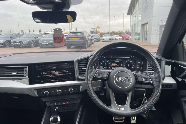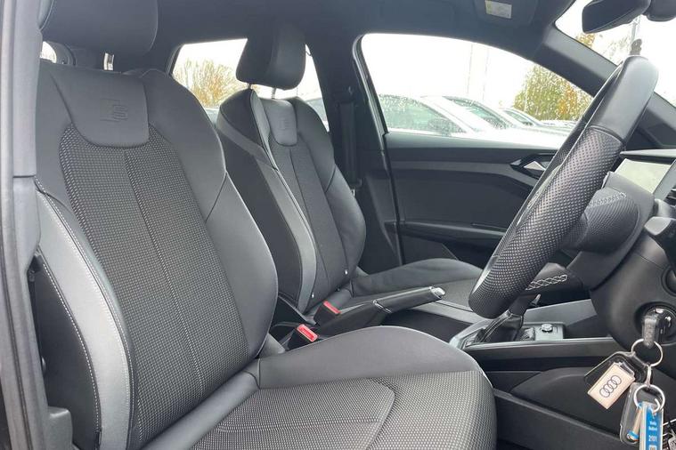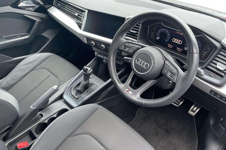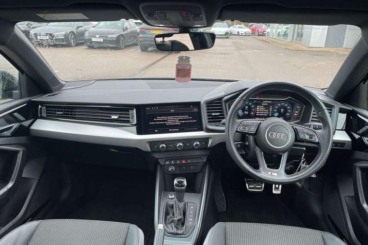 10.25" Digital instrument cluster display classis style instrument dials + speed, odometer, time, outside temperature, telephone menu + fuel level warning, Audi drive select - power steering assistance + engine + gear shift 3 preset modes (auto, dynamic, efficiency and an Individual mode), Audi smartphone interface with connect compatible smartphone via USB directly MMI display + Nav, music, third party apps controlled via MMI controller, Automatic start/stop system, Bluetooth interface, Cruise control, Driver's information system, Electromechanical power steering, Emergency e-call, Lane departure warning system, Rear parking sensor, Service interval indicator, Speed limiter, Voice control system, Washer fluid level indicator, Sports suspension, 2 x USB type C connection points, 6 passive loudspeakers, DAB Digital radio, MMI radio plus with 10.1" colour MMI display screen and MMI touch, Auto dimming rear view mirror, Body coloured door mirrors, Door sills with aluminium inlays and S Line logo, Electric front and rear windows, Electrically adjustable, heated, folding door mirrors with integrated LED side indicator, Front side air inlets in grained matt black and C frame in anthracite black, Heat insulating glass windscreen and side windows, Heated rear windscreen, High level LED brake light, LED headlights with LED rear lights + dynamic rear indicators + headlight adjustment and high beam, turning light + LED daytime running lights, Privacy glass, Radiator grille and rear diffuser in matt anthracite black, Radiator protective grille frame in matt aluminium silver, Rain and light sensors, Rear fog lights, Rear side wing doors, Rear wiper, S line badges on front wings, Side front spoiler lips in grained matt black, 12V socket in centre console with two cup holders, 3 rear seats with headrests, 3 seat bench in 2nd row, 3 spoke leather multi-function plus steering wheel features S badging and grips in perforated leather with contrast stitching, 40:60 Split folding rear seat or folded fully, Black cloth headlining, Driver and passenger seat with manual height adjust with forward and backwards adjustment, Front and rear black floor mats with contrast stitching in fine silver, Front head restraints, Front passenger seat, Height and reach adjustable steering wheel, ISOFIX child seat mounting for front passenger and outer rear seats including top tether attachment point of outer rear seats, Leather gear knob with aluminium trim, Leather handbrake grip, Luggage compartment light with front and rear reading lights, Manual air conditioning, Manually adjustable lumbar support in front seats, Stainless steel pedals, LED interior lighting pack - A1, Luggage compartment pack - A1, S line exterior styling pack - A1 Sportback, 3x3 point rear seatbelts, Audi pre-sense front with pedestrain and cyclist recognition, Brake assist function, Driver and front passenger airbag with front side and head airbags, Electronic Stability Control including ABS, EBD, ASR and EDL, Front passenger airbag deactivation switch, Hill hold assist, Manual rear child locks, Seatbelt height adjustment for front seats, Seatbelt monitoring, Tyre pressure warning light, Warning triangle and first aid kit, Anti theft alarm, Anti theft wheel bolts and loose wheel warning, Immobiliser, Remote central locking with 2 foldaway keys, Aluminium trim for control switches, air vents and digital instrument cluster, Black dashboard, Silver grey inlays polygon structure in diamond paint finish, Structured grey accent areas including air vents, door handle recesses and centre console in quartz paint finish,