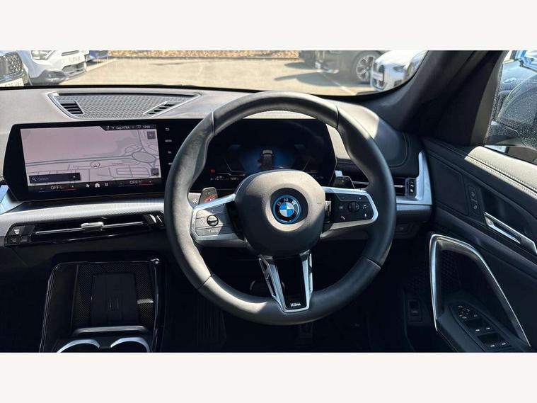 Attentiveness assist, Automatic start/stop function, BMW Live Cockpit Plus with 10.25" instrument cluster and 10.7" display, BMW Operating system 9 with BMW Maps, real-time traffic information, in-car experiences, remote services and smartphone integration, BMW Teleservices, Brake pad wear indicator, Condition based service, Connected eDrive Services, Drive off assistant, Electrically opening/closing tailgate with opening/closing with remote control and contactless opening and closing, iDrive controller, Language version English, My Modes, Parking Assistant with Reversing Assistant, active PDC, Lateral Parking Aid, Rear View Camera and Park Distance Control, Personal Profile - automatic lock when driving away selectable, Servotronic PAS, Tyre puncture warning system, Widescreen display, 11 kW AC charging power, eDrive exterior sound, EU6 emissions management, Fast charging cable professional mode 3 for public charging, M Adaptive suspension, Performance Control, Petrol Particulate Filter, Steptronic transmission with double clutch and gear shift paddles, xDrive intelligent four wheel drive system, BMW Personal eSim, DAB Digital radio, Badge on engine compartment lid and tailgate, Body colour door mirrors, Dynamic brake lights, Electric adjustable heated door mirrors, Electric windows - front and rear, with open/close fingertip control, anti-trap facility and comfort closing, Folding door handles integrated flush with surface, Follow me home headlights, Front and rear bumper panel with M specific design, in body colour with inserts in black high gloss, Front door exit lights, Heated rear window, High gloss shadowline, Invisible exhaust tailpipe, Key with M identification, LED 3rd brake light integrated in rear spoiler, LED daytime running lights, LED number plate light, M identification on the sides, M roof rails high gloss shadow line, M specific radiator grille in satinated aluminium, Matt black roof strips, Model inscription on right tailgate, Rain sensor including auto headlights activation, Rear side wing doors, Rear wiper, Sill cover in body colour, Trailer stabilisation logic, Windscreen washer nozzle for rear view camera, Windscreen wipers front with heated washer nozzles, 12V - Power sockets with front centre console and luggage compartment, 2 bag hooks in luggage compartment, 2 cup holders in front, 2 x USB Type C ports for charging in front centre console + 1 x USB Type C ports for charging in rear centre console, 3 rear headrests, 3 seat bench in 2nd row, 3 upper retaining strap clips integrated into rear panels of seat backrests, 4 grab handles, 40:20:40 split folding rear seats, Ambient interior lighting, Anthracite headlining, Anthracite Velour front and rear floormats, Bottle trays in all doors, Child seat ISOFIX attachment for two outer rear seats and front passenger seat with anchorage points, Clothes hook rear, Driver and front passenger heated seats, Dual zone automatic air conditioning, Front and rear door pockets, Front and rear footwell lighting, Front centre console storage compartment, Front/rear adjustable head restraints, Glove compartment, Interior door handle recess light on all doors, Light on right in luggage compartment, M sport leather steering wheel, Manual steering column height and depth adjustment, Middle centre console storage compartment, One piece parcel shelf opens together with tailgate and removable, Rear armrest in door trim panel, Single front passenger seat, Sport leather multifunction steering wheel with thumbrests and operation of instrument display, audio, telephone and driver assistance, Storage compartment net in left side trim panel, Storage compartment with folding cover under centre console armrest cushion, Storage tray in right side trim panel, Tilt adjustment incl. cargo function of 2nd row of seats, Vanity mirror lights, ABS/EBD, Automatic hold function, Automatic Stability Control (ASC), BMW emergency call, Braking readiness, Cornering brake control (CBC), Crash Sensor - activates hazard/interior lighting + unlocks doors, Driver/Front Passenger airbags, Driver/front passenger side airbags, Dry braking, Dynamic brake control, Dynamic stability control + (DSC+), Electromechanical parking brake, Energy recovery system, First aid kit, Front and rear brake discs, Front and rear head airbags, Front passenger airbag deactivation, Integrated brake system, PC iBrake PostCrash approach control warning with light braking function, Rear door child safety locks, Three point seat belts in all seats, Tyre pressure monitor, Warning triangle, Alarm system with tilt sensor, monitoring doors, bonnet interior and tailgate, Closing system with central locking, Locking wheel bolts, Luxury instrument panel, Tyre repair kit plus,