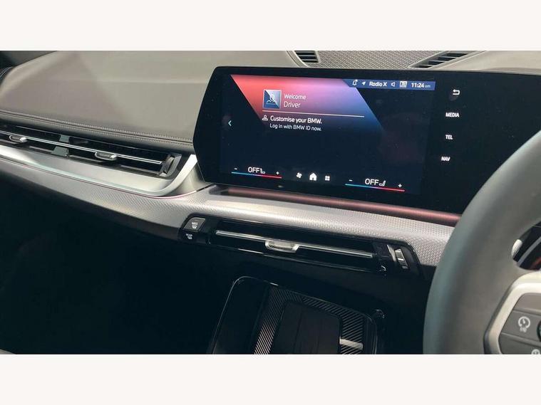 Attentiveness assist, Automatic start/stop function, BMW Live Cockpit Plus with 10.25" instrument cluster and 10.7" display, BMW Operating system 9 with BMW Maps, real-time traffic information, in-car experiences, remote services and smartphone integration, BMW Teleservices, Brake pad wear indicator, Condition based service, Connected eDrive Services, Drive off assistant, Electrically opening/closing tailgate with opening/closing with remote control and contactless opening and closing, iDrive controller, Language version English, My Modes, Parking Assistant with Reversing Assistant, active PDC, Lateral Parking Aid, Rear View Camera and Park Distance Control, Personal Profile - automatic lock when driving away selectable, Servotronic PAS, Tyre puncture warning system, Widescreen display, 11 kW AC charging power, eDrive exterior sound, EU6 emissions management, Fast charging cable professional mode 3 for public charging, M Adaptive suspension, Performance Control, Petrol Particulate Filter, Steptronic transmission with double clutch and gear shift paddles, xDrive intelligent four wheel drive system, BMW Personal eSim, DAB Digital radio, Badge on engine compartment lid and tailgate, Body colour door mirrors, Dynamic brake lights, Electric adjustable heated door mirrors, Electric windows - front and rear, with open/close fingertip control, anti-trap facility and comfort closing, Folding door handles integrated flush with surface, Follow me home headlights, Front and rear bumper panel with M specific design, in body colour with inserts in black high gloss, Front door exit lights, Heated rear window, High gloss shadowline, Invisible exhaust tailpipe, Key with M identification, LED 3rd brake light integrated in rear spoiler, LED daytime running lights, LED number plate light, M identification on the sides, M roof rails high gloss shadow line, M specific radiator grille in satinated aluminium, Matt black roof strips, Model inscription on right tailgate, Rain sensor including auto headlights activation, Rear side wing doors, Rear wiper, Sill cover in body colour, Trailer stabilisation logic, Windscreen washer nozzle for rear view camera, Windscreen wipers front with heated washer nozzles, 12V - Power sockets with front centre console and luggage compartment, 2 bag hooks in luggage compartment, 2 cup holders in front, 2 x USB Type C ports for charging in front centre console + 1 x USB Type C ports for charging in rear centre console, 3 rear headrests, 3 seat bench in 2nd row, 3 upper retaining strap clips integrated into rear panels of seat backrests, 4 grab handles, 40:20:40 split folding rear seats, Ambient interior lighting, Anthracite headlining, Anthracite Velour front and rear floormats, Bottle trays in all doors, Child seat ISOFIX attachment for two outer rear seats and front passenger seat with anchorage points, Clothes hook rear, Driver and front passenger heated seats, Dual zone automatic air conditioning, Front and rear door pockets, Front and rear footwell lighting, Front centre console storage compartment, Front/rear adjustable head restraints, Glove compartment, Interior door handle recess light on all doors, Light on right in luggage compartment, M sport leather steering wheel, Manual steering column height and depth adjustment, Middle centre console storage compartment, One piece parcel shelf opens together with tailgate and removable, Rear armrest in door trim panel, Single front passenger seat, Sport leather multifunction steering wheel with thumbrests and operation of instrument display, audio, telephone and driver assistance, Storage compartment net in left side trim panel, Storage compartment with folding cover under centre console armrest cushion, Storage tray in right side trim panel, Tilt adjustment incl. cargo function of 2nd row of seats, Vanity mirror lights, ABS/EBD, Automatic hold function, Automatic Stability Control (ASC), BMW emergency call, Braking readiness, Cornering brake control (CBC), Crash Sensor - activates hazard/interior lighting + unlocks doors, Driver/Front Passenger airbags, Driver/front passenger side airbags, Dry braking, Dynamic brake control, Dynamic stability control + (DSC+), Electromechanical parking brake, Energy recovery system, First aid kit, Front and rear brake discs, Front and rear head airbags, Front passenger airbag deactivation, Integrated brake system, PC iBrake PostCrash approach control warning with light braking function, Rear door child safety locks, Three point seat belts in all seats, Tyre pressure monitor, Warning triangle, Alarm system with tilt sensor, monitoring doors, bonnet interior and tailgate, Closing system with central locking, Locking wheel bolts, Luxury instrument panel, Tyre repair kit plus,