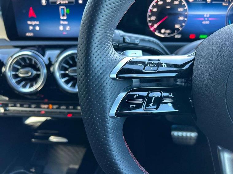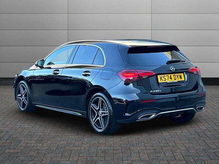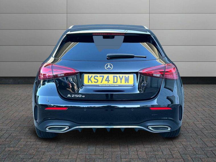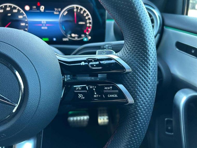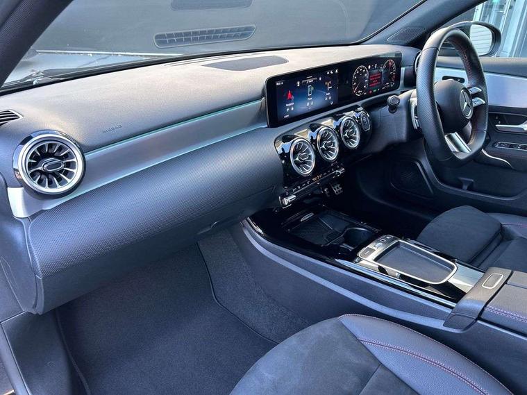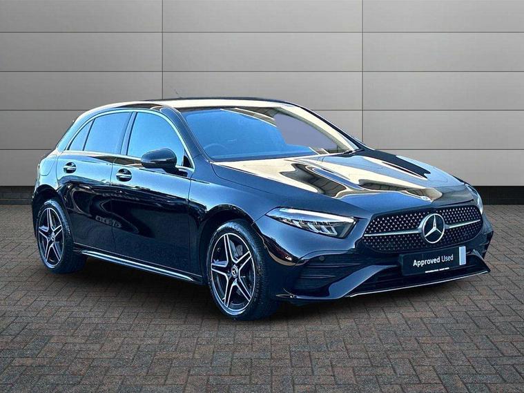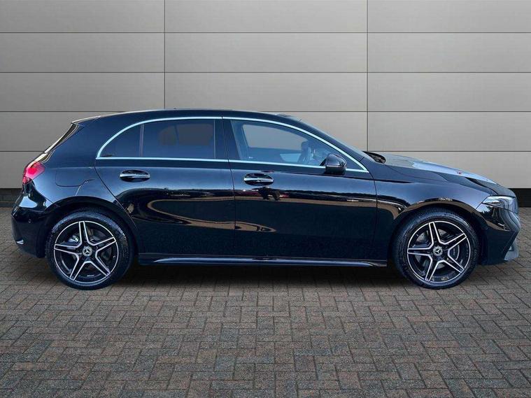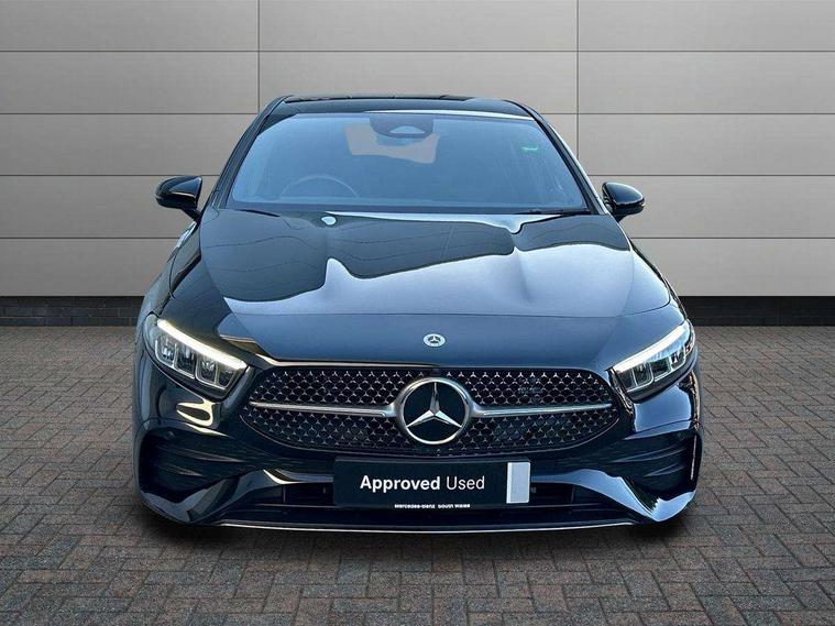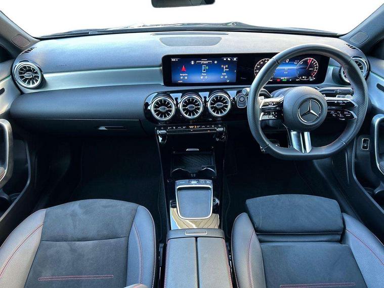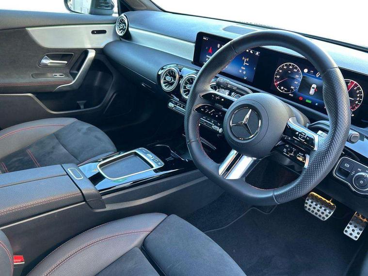 10.25 inch touchscreen central media display, 10.25" Digital instrument cluster display screen, Acoustic ambient protection, Attention assist, Blind spot assist, Brake pad wear indicator warning light, Car wash mode, Cruise control + speed limiter, Direct steering, Direction indicators with lane change function, Dual bluetooth interfaces, DYNAMIC SELECT with a choice of driving modes (ECO, Comfort, Sport and Individual), Easy pack tailgate hands-free access, ECO start/stop function, Engine start/stop button, Fingerprint scanner, Fluid level warning indicator for fuel, oil, coolant and washer fluid, Fluorescent jacket for driver, Hard-disk navigation, Hey Mercedes Voice activation, Lamp failure indicator, Lane keeping system, Mercedes me connect including emergency call system, accident recovery, breakdown and maintenance management, Mercedes me remote services, Outside temperature gauge, Owners manual in English, Pre-installation of private car share, Preinstallation for Mercedes Benz link, Remote and charging services plus, Remote boot closing, Service indicator (ASSYST), Smartphone integration with Apple CarPlay and Android auto, Speed limit assist, Speed sensitive power steering, Tailgate, Trip computer in multifunction display with current consumption indicator, Wireless charging, Charging system - AC charging system rated at 11kW, Charging system - DC charging system rated at 22 kW, Comfort suspension, Mode 2 charging cable for domestic socket with 5m up to 1.8kW, Mode 3 charging cable for wallbox and public charging stations with 4m upto 22 kW, DAB Digital radio, MBUX multimedia system, Mercedes Benz sound system (100 W) with 6 speakers, 4 Electric Front and Rear windows, Adaptive brake lights, AMG body styling - AMG front apron with front splitter and AMG rear apron and visible exhaust tailpipe trim elements, Body colour bumpers, Body colour door handles with chrome inserts, Body colour side skirt, Body coloured door mirrors, Chrome beltline strips, Diamond radiator grille with pins in fine star pattern, Electric adjustable and heated door mirrors with integrated LED side indicators, Exhaust system with 2 visible tailpipe trim elements and rear apron, Headlamp assist automatic headlamp activation, Heat insulating dark tinted rear and rear side windows, Heated glass rear windscreen + timer control, LED High level third brake light, LED High Performance headlamps including integral LED daytime running lamps and adaptive highbeam assist, LED tail lamp, Privacy glass, Radio aerial, Rain sensing windscreen wipers with two sensitivity settings, Rear fog lights, Rear side wing doors, Rear windscreen wiper, Window line trim strip in chrome, 3 seat bench in 2nd row, 3 Spoke flat bottom leather multi function steering wheel with perforated leather in grip area, 4 way lumbar support, 40:20:40 split folding rear seats, Air conditioning - One zone THERMATIC automatic climate control with automatically controlled air distribution, AMG floor mats, Automatic child seat recognition sensor, Black air vents with surround in silver chrome, Black roof lining, Brushed stainless steel sports pedals with rubber studs, Charging socket, Front centre armrest with stowage, Front door sills with Mercedes Benz lettering, Front seat backs luggage nets, Galvanished gear shift paddles on steering wheel, Heated front seats, Height/reach adjustable steering column, Interior lighting - 64 colour Ambient lighting, Interior mirror with reading lamps in black and frameless, Pre-entry climate control, Rear armrest with 2 cupholders, Seat occupancy sensor for front passenger seat, Single front passenger seat, Sports seats with integrated headrests, Stowage compartment in centre console with retractable cover, Sunvisors with illuminated vanity mirrors, Twin front cupholders, Light and sight package - A Class, Mirror package - A Class, Parking pack with 180 degree view - A Class, Seat comfort pack - A Class, USB pack plus - A Class, 3 rear 3 point seatbelts, ABS with Brake Assist, Active bonnet, Active brake assist includes forward collision warning system with autonomous braking, Adaptive brake assist with hold function and hill start assist, Black seatbelts, Bonnet with power domes, Childproof locks manually operated for rear doors and electrically operated for rear power windows, Crash responsive emergency lighting, Driver and passenger head and side airbags, Drivers knee airbag, Dual stage driver/passenger airbags, Electronic parking brake, ESP curve dynamic assist, ESP with ASR, Front and rear seatbelt reminder, ISOFIX and top tether child seat fixing points in two outer rear seats, Perforated front brake discs, Radar based regeneration, Tyre pressure monitoring system, Warning triangle and first aid kit, Window airbags, Alarm system/interior protection/immobiliser, Guard 360 degree vehicle protection, Keyless entry lock/unlock, Keyless Go, Remote central locking and crash sensor with emergency opening function, Light longitudinal grain aluminium trim, 18" AMG 5 twin spoke light alloy wheels, aerodynamically optimised, painted in black with high sheen finish, Summer tyres, Tirefit sealant kit,