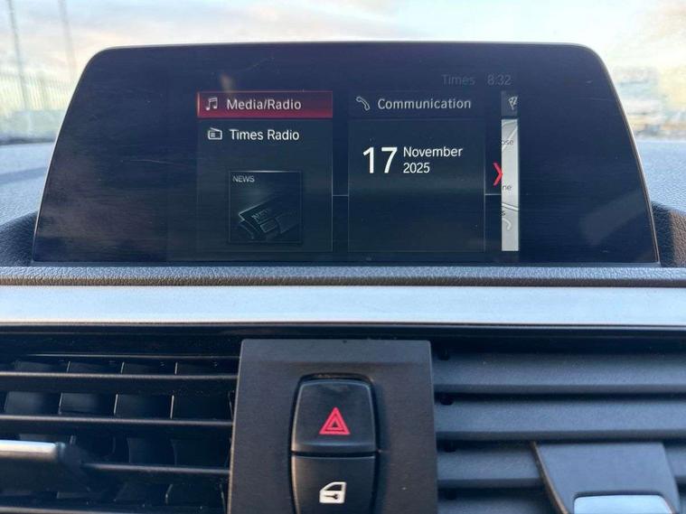 Automatic start/stop system, BMW Online services, BMW remote services, BMW Teleservices, Brake force display, Brake pad wear indicator in front and rear, Check Control warning system for monitoring of lights and door/luggage compartment open warning, Eco pro mode, Instrument cluster with speedometer with miles per hour read out, tachometer and fuel gauge, Lights on warning by audio warning signal when ignition is switched off, Oil temperature display via on board computer in instrument cluster, On board computer - average speed+fuel consumption, service interval, clock/date, odometer/trip meter, outside temperature display and ice warning, On board diagnostics, Optimum shift indicator, Personal Profile, Real time traffic information, Servotronic PAS, Battery age recognition function, Drive Performance Control, BMW professional radio with CD player, DAB Digital radio, Body colour door handles, Body colour front and rear bumpers, Body colour mirror caps, Body colour roof mouldings, Chrome exhaust tailpipe in single, round (Exhaust tailpipe, stainless steel - single, round), Chrome kidney grille with black vertical slats, Clear lenses direction indicator lights, Daytime driving lights, Direction indicator side lights in exterior mirrors, Dynamic brake lights, Electrically adjustable heated door mirrors and washer jets, Follow me home headlights, Front and rear bumper system with replaceable deformation elements, Front and rear electric windows with open and close fingertip control, anti trap facility and comfort closing, Green tinted heat protection glazing, Headlight beam throw control, Heated windscreen washer jets, High level third brake light, Lightweight engineering, Nearside reverse light in rear light cluster, Offside rear fog lights, Rain sensor including auto headlights activation, Rear window aerial, Rear window wiper, Shark fin antenna, Visible VIN plate, Welcome lighting, 12V power socket in centre console, 12V power socket in passenger footwell, 60/40 split folding rear seat, Anthracite Velour front and rear floor mats, Black door sill finishers with BMW designation, Conditioned based service, Four grab handles integrated in roof lining, Front and rear side armrest integrated into door trim, Front folding sliding armrest with storage compartment, Front head restraints, Front storage compartment in centre console and in door trim, Front/rear courtesy lights with soft on/off dimming, Glove box handle with chrome surround, Glovebox, Interior light in front centre interior mirrors and rear centre auto interior light activation when door is opened when ignition switched off, Isofix child seat for two outer rear seats, Leather gear knob and handbrake grip, Luggage compartment access via BMW roundel, Manually adjustable steering column, Multi-function controls for steering wheel, Rear folding head restraints, Two cupholders with sliding cover and inlay mat, Two sills lashing eyes in the luggage compartment, 3 point seatbelts on all seats, front pyrotechnic belt tensioners, stopper and belt force limiters, rear coded belt buckles, Active differential brake (ADB), electronic differential lock in DSC-OFF mode, Airbags - Front driver and passenger, front and rear head, front side, curtain head protection, Anti lock braking system (ABS) with brake assist, Automatic Stability Control (ASC), Battery safety cut-off, BMW emergency call, Brake drying, Brake energy regeneration, Braking readiness, CBC - (Cornering brake control), Crash sensor activating central locking release, hazard warning lights, Driver and front passenger seat belt security check, DSC+, Dynamic brake control, Dynamic Traction Control - DTC, Front passenger manual airbag deactivation, Front ventilated brake disc, Hill start assist, Rear brake discs, Rear child proof door locks, Side impact protection, Twin horns, Tyre pressure monitoring system, Warning triangle and first aid kit, Automatic drive away locking facility, Central locking switch for all doors, fuel filler cap and luggage compartment, Locking wheel bolts, Remote central locking with two Integrate key, one button for opening and closing all lock, open and close window, button for open luggage compartment, Start/stop button with comfort go keyless engine start and auto start stop deactivation button, Thatcham Cat.1 alarm and immobiliser, Reduced rolling resistance tyres,
