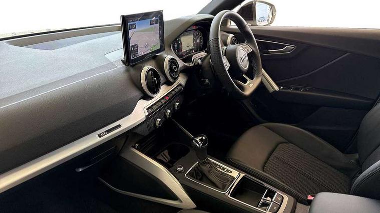 3D map display, Audi connect navigation and infotainment includes innovative services, Audi connect remote and control connects your vehicle to your smartphone, Audi drive select: S tronic - power steering assistance + engine + gearshift (modes: comfort, auto, dynamic, efficiency, individual), Audi smartphone interface - Apple carplay/Android Auto, USB connect, 2xSDXC card readers, voice control for navi, telephone, music and 3rd party apps, Audi virtual cockpit, Automatic start/stop system with recuperation, Bluetooth interface includes bluetooth audio streaming, Camera based traffic sign recognition, Cruise control, Distraction and Fatigue warning, E-call, Jukebox hard drive memory for music (10GB), Lane departure warning, MMI navigation plus with 8.8" touchscreen, Natural voice recognition, Power operated tailgate, Progressive steering, Rear parking sensors, Sport suspension, 6 passive loudspeakers, DAB Digital radio, USB type C port, Audi beam, Auto dimming rear view mirror, Black window trims, Bumper in full body colour paint finish, Electrically adjustable, folding, auto dimming and heated door mirrors with integrated LED side indicators, Front windscreen with grey tinted sunband, LED daytime running lights, LED headlights with dipped beam, high beam, position lights, indicators, LED rear lights, LED third brake light, Privacy glass - dark tinted rear and rear side windows from B-pillar backwards, Rear side wing doors, Rear wiper, Variable front intermittent wipers, Wheel arch trims in manhattan grey, 12V socket in front, 3 seat bench in 2nd row, 3 spoke flat bottomed multi-function leather sport steering wheel with gear shift paddles, 4-way electric lumbar support for front seats including manual seat height adjustment for both front seats, 60/40 split folding rear seat bench, Black carpets, Black cloth headlining, Front and rear head restraints, Front centre armrest, Front sport seats, Front/rear floor mats, Height/reach adjust steering wheel, Illuminated door sill trims with S logo, ISOFIX child seat mounting in front passenger and rear outer seats, Manual air conditioning, Single front passenger seat, Stainless steel pedals, Black styling pack - Q2, 3x3 point rear seatbelts, 6 airbags - Front, curtain and front side airbags, Electromechanical parking brake, Electronic stabilisation control including ABS, ASR and EDL, Front passenger airbag deactivation, Hill hold assist, Pre-sense front with pedestrian recognition, Seatbelt monitoring, Tyre pressure warning light with visual and acoustic warning, Warning triangle and first aid kit, Anti theft wheel bolts, Electronically operated child locks, Remote central door locking, Thatcham category 1 alarm, Aluminium interior element, Black dashboard, Gloss black centre console, Matt brushed aluminium trim inlays, Tool kit,