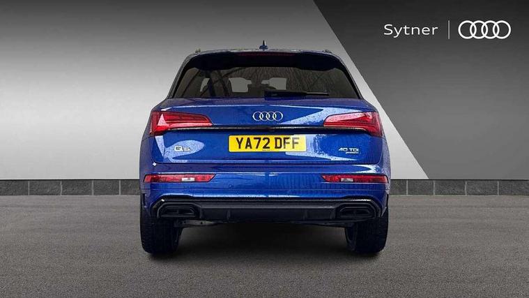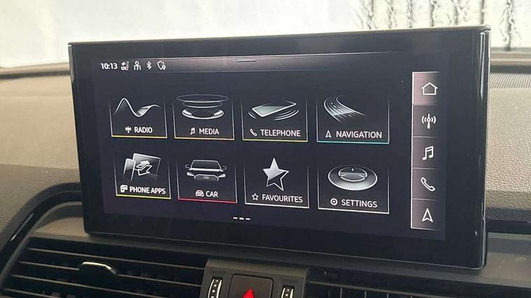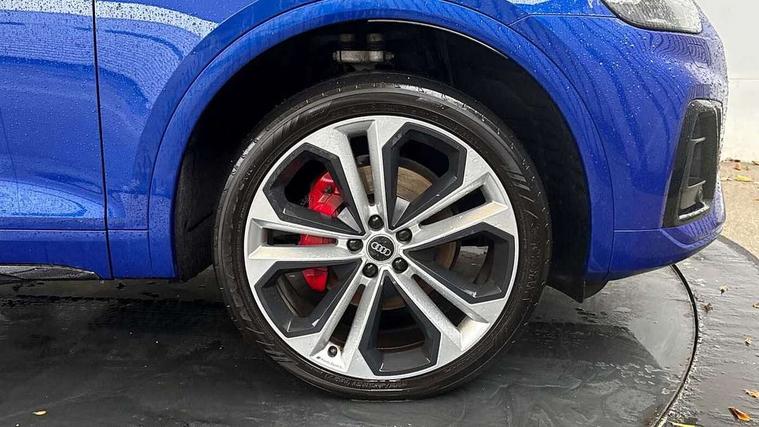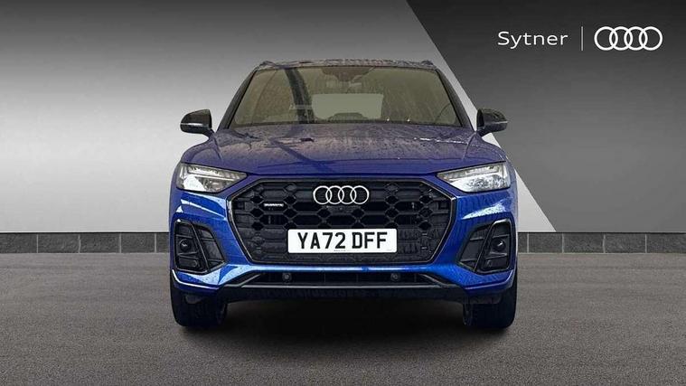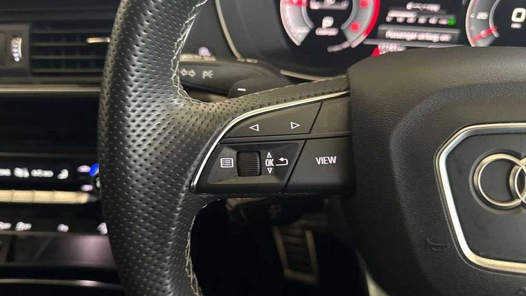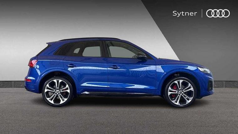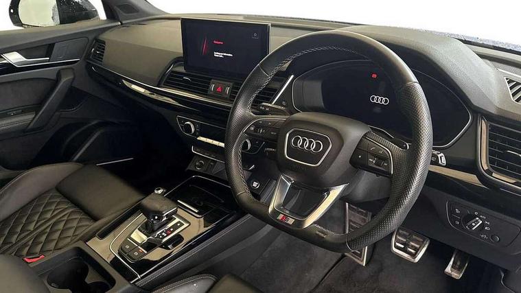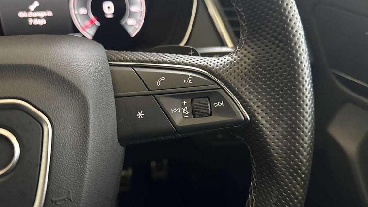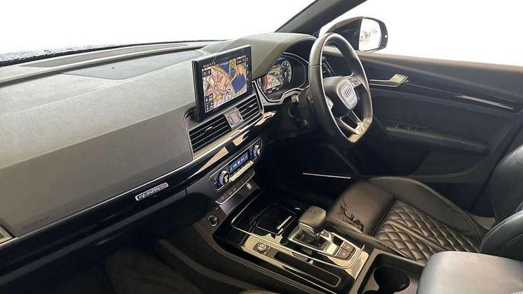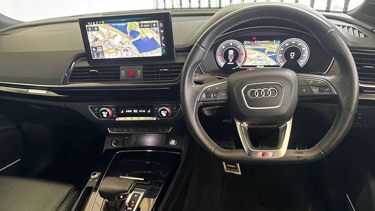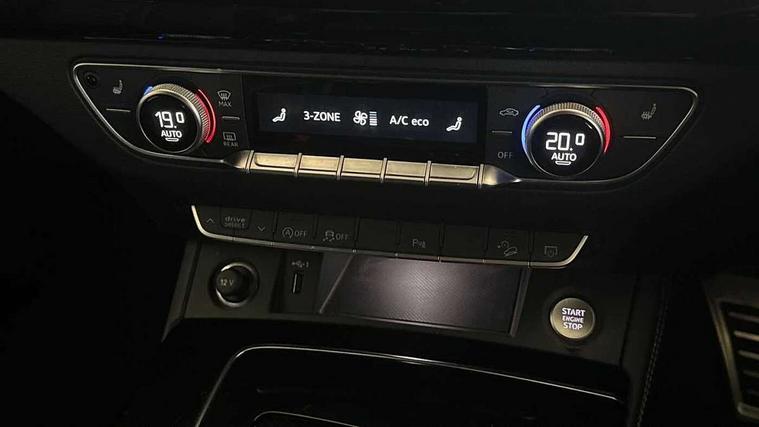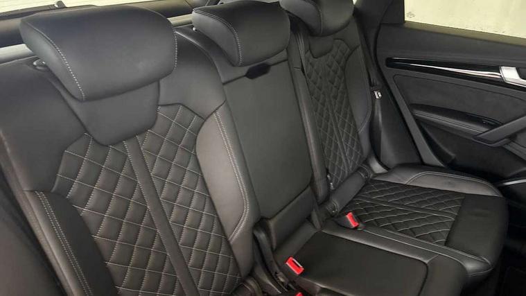 Audi connect safety and service (e-call), Audi connect with Amazon Alexa Integration, Audi drive select, Audi virtual cockpit plus with 12.3" screen and three different layout designs, Audi wireless smartphone interface, Automatic start-stop system with coasting functionality and efficiency programme, Bluetooth interface, Electro - mechanical power assisted steering, MMI navigation plus with 10.1" touch screen, Power tailgate, Reversing camera, Service interval indicator, Voice control system with Audi hotword activation "Hey Audi", Diesel particulate filter, Quattro on demand, S line sports suspension, 2 x USB charging port with aux input socket, DAB Digital radio, Acoustic windscreen, Audi matrix LED headlights with dynamic front and rear indicators, Audi rings at front and rear in black, Audi rings decal on rear doors, Auto dimming door mirrors, Auto dimming rear view mirror, Automatic headlight adjustment, Automatic headlights and windscreen wipers, Black roof rails, Body colour bumpers, Body colour underbody protection, Chrome plated exhaust trims, Daytime running lights, Door sills in Selenite silver, Electric adjustable/heated/folding door mirrors, Front air inlet surrounds in titanium black, Front and rear electric windows, Headlight washers, High gloss black B pillar trims and triangular rear door trim, High level LED brake light, Rear chrome trim strip below lights, Rear privacy glass and rear side windows, Rear side wing doors, Rear wiper, Roof bars, S Line rear spoiler, 3 rear headrests, 4 way electric lumbar support for driver and front passenger, 40:20:40 split folding 3 rear bench seat in 2nd row with rear centre armrest, Black cloth headlining, Comfort front centre armrest, Contrast stitching on seats, steering wheel and gear lever gaiter, Deluxe 3 zone electronic climate control, Electrically adjustable front seats, Fine Nappa leather upholstery with diamond pattern contrast stitching + front sport seats with S embossed logo, Front/rear floor mats, Gear lever in black leather, Heated front seats, Height adjustable front head restraints, Height/reach adjustable steering column, Illuminated door sill trims with S logo, ISOFIX child seat mounting and top tether, Luggage compartment cover, Rear seat bench plus, Removable luggage compartment floor, Single front passenger seat, Stainless steel pedals, Sunvisors with vanity mirrors, Black styling package - Q5 Edition 1, Extended interior upholstery pack - Q5, Extended LED Interior multi coloured Lighting Pack - Q5, 3 point seatbelts on all seats, 6 airbags - Driver, front passenger, curtain and side airbags, Electrically operated child locks on rear doors, Electromechanical parking brake, Electronic stabilisation control including ABS, ASR and EDL, Front and rear brake calipers painted in red, Front passenger airbag deactivation, Hill descent control, Hill hold assist, Multi collision brake assist, Pop-up bonnet for pedestrian protection, Pre sense city, Seat belt force limiter, Seatbelt monitoring, Tyre pressure warning, Warning triangle and first aid kit, Anti theft alarm, Anti-theft wheel bolts, Keyless Go access/ignition system, Remote central locking, Piano black finish inlay,