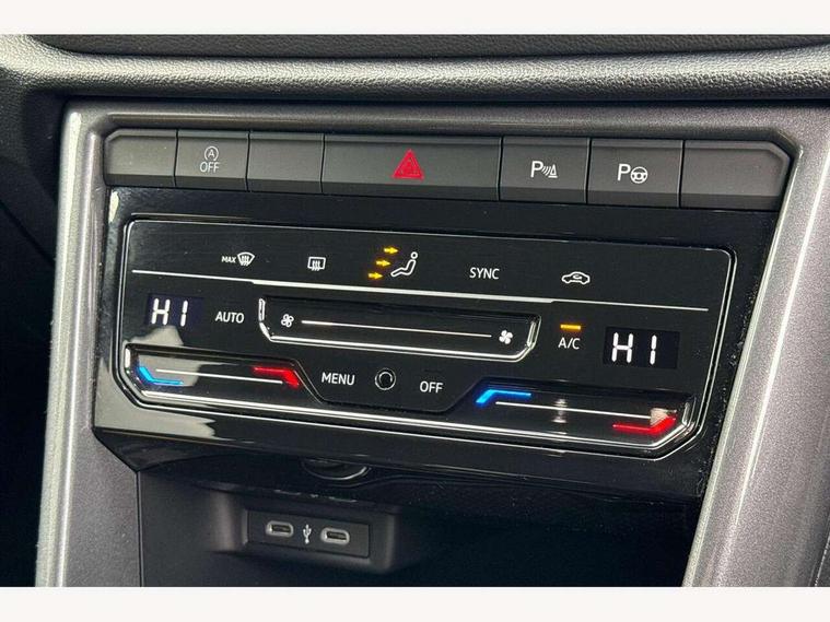 10.25" Digital cockpit pro, Bluetooth mobile phone interface, Driver alert system with fatigue detection, Driver tips and journey analysis, Emergency call service, Lane keeping system Lane Assist, Modified key software - reduce switch off time for key status change to Long no motion, Online services, Park assist including front and rear parking sensors, Service interval indicator, Tailgate/trunk lid release from outside, Think blue trainer driver tips and journey analysis, Warning sound and light for front seatbelts unfastened, Wireless app connect, Battery regeneration during braking, Start/stop function with battery regeneration, Diversity antenna for FM reception, Music playback - MP3, WMA and AAC files, Premium USB cable in choice of either Apple or Android smartphone compatibility, SD card slot, Simultaneous pairing of 2 compatible mobile devices, Title and cover art display, We Connect and We Connect Plus functionality, 3rd brake light, Auto dimming interior rear view mirror, Automatic hazard lights activation under emergency braking, Automatic headlight control with LED separate daytime running lights with coming/leaving home function, Body colour sports bumpers with silver metallic underbody fascia, Dynamic headlight range control with self adjusting whilst driving, Extended roof spoiler, Exterior mirrors aspherical on driver side, convex on front passenger side, External USB type C socket and charging sockets, Front windscreen wiper with intermittent wipe and 4 position delay, Heated rear window, LED rear combination lamps, LED rear number plate lights, LED tail lamp rear comination lamps, Light mode for poor weather, rain, fog or snow, Power windows with comfort operation and circuit breaker, Rain sensor, Rear exhaust tailpipe, Rear fog light on one side and reversing lights on both sides, Rear side wing doors, Rear wash/wipe with intermittent wipe setting, Remote electrically foldable door mirrors, puddle lights and reverse activated passenger's door mirror, 12V power socket in centre console, 3 rear head restraints, 3 seat bench in 2nd row, 4 load lashing points in luggage compartment, Air care climatronic air conditoning system with active combination filter and 2-zone temperature control, Chrome plated radiator grille inserts, air vent surrounds and light switch surrounds, Door and side trim panel with leatherette insert, Drawer under drivers seat, Front + rear carpet mats, Front centre armrest, Front comfort sports seats, Front cupholders x 2, Front footwell illumination, Instrument lighting, white adjustable panel illumination, Interior ambient lighting and surround lighting, Interior light delay, Isofix child seat preparation, Leather gearshift handle, LED interior light with switch off delay/dimmer and 2 front/rear LED reading lights, Load-through provision with cup holder when folded down ('Unsplit rear seat bench, split folding backrest, with centre armrest), Luggage compartment lighting, Non-folding front passenger seat backrest, Single front passenger seat, Storage compartment in left and right luggage area, Storage compartment in rear doors, Storage compartments in driver and front passenger doors, Sunvisors with illuminated vanity mirrors, Variable boot floor, height adjustable and removable, Driver assistance pack without proactive passenger protection - T-Roc, 3 point height adj front seatbelts + pretensioners, 3 point seatbelts in outer rear with ECE label, ABS, Child locks on rear doors, Driver and front passenger airbag with front passenger airbag deactivation, Driver and front passenger safety-optimised head restraints, Drivers seatbelt reminder, Electronic parking brake, Electronic Stability Control (ESC) inc EDL (Electronic Differential Lock) and ASR (Traction Control), Front and rear passengers curtain airbag system including front side airbags, Front assist with city emergency braking and pedestrian monitoring, Front seat side impact airbags, Predictive pedestrian protection, Rear disc brakes, Single tone horn, Tyre pressure loss indicator, Volkswagen roadside assistance, Anti-theft alarm system with interior monitoring, backup horn, and towing protection, Remote central locking with SAFELOCK, radio remote control with 2 remote control folding keys, Trims for alloy wheels,