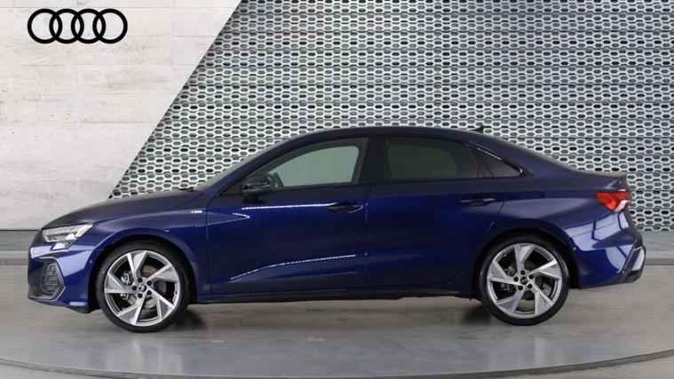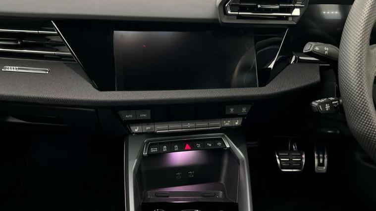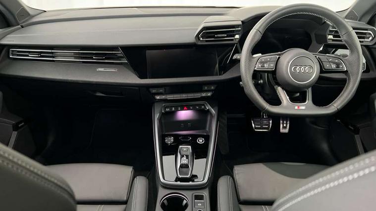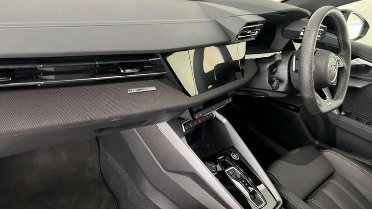 Adjustable speed limiter, Audi drive select, Audi smartphone interface with app store includes wireless Apple carplay, Android auto and Amazon alexa integration, Audi virtual cockpit plus - 12.3" full HD resolution dynamic digital instrument cluster, Automatic start/stop system with recuperation, Bluetooth interface, Camera based traffic sign recognition, Collision avoidance assistant, Cruise control, Distraction and Fatigue warning, e-Call (emergency call), Electromechanical power speed sensitive steering, Emergency assist, Lane departure warning system, MMI Navigation Plus with high resolution 10.1" colour touch screen display, Park Assist with parking system Plus, Service indicator, Trip computer, Voice control system with natural language interaction, Sports suspension, Audi Phonebox light with wireless charging, Audi sound system - 10 loudspeakers including centre loudspeaker and subwoofer, DAB Digital radio, USB ports with charging function in the rear, Acoustic glass windscreen, All weather light, Anthracite grey Audi rings (front and rear), Audi beam uses LEDs to project the Audi logo onto the ground as you exit your A3, Auto dimming frameless rear view mirror, Automatic dynamic range control, Black accents front and rear bumpers, Black accents in the area of the Audi single frame grille, Black accents window trims strips, Dipped beam, main beam, position light and turning light, Electrically adjustable/heated/folding/auto dimming door mirrors with integrated LED indications + kerb view function for passenger side, Exterior model badging, Front and rear side air inlets in grained matt black with dark liquid chrome frame, Front electric windows, Heat insulating glass windscreen, Illuminated door sills with aluminium inserts at the front with S logo, Intersection light, LED 3rd brake light, LED brake lights, LED daytime running x3, LED headlights with LED rear lights and dynamic rear indicators, LED rear number plate lights, LED reverse light, LED tail lights, Light and rain sensors, Manoeuvring light, Motorway light, Privacy glass - dark tinted rear window, rear door and side windows, Rear boot, Rear diffuser and grill in grained matt black with inlay in dark liquid chrome, Rear electric windows, Rear side wing doors, Static Cornering lights, 12V socket and storage compartment in front centre console, 3 seat bench in 2nd row, 3 spoke flat bottomed leather multifunction sport steering wheel with gear shift paddles, 3-zone deluxe automatic air conditioning, 4 way electrically adjustable lumbar support for driver and front passenger, 40/20/40 split folding rear seat bench, Black cloth headlining, Black front and rear floor mats, Front and rear centre armrest in artificial leather with contrasting stitching on armrests and instrument panel, Front and rear headrests, Heated front seats, Height and reach adjustable steering wheel, Manual boot compartment lid, Manually adjustable front seats, Rear centre armrest with cupholder, S badging on the steering wheel, Seat side bolsters, Single front passenger seat, Stainless steel pedals and front footrest in black, Twin leather upholstery with front sports seats S embossed logo, Aluminium interior elements pack - A3, 3x3 point rear seat belts, Driver and front passenger airbag with passenger airbag deactivation, Electronic Stabilisation Control (ESC) including ABS, ASR and EDL, First aid kit with warning triangle and 2 safety vests, Front side airbags with head airbags and interaction airbag, Hill hold assist, Pre-sense front with pedestrian and cyclist detection, Seatbelt monitoring, Tyre pressure loss indicator, Anti theft alarm, Anti-theft wheel bolts, Electronically operated child locks, Immobiliser, Remote central locking with safelock, Black dashboard,
