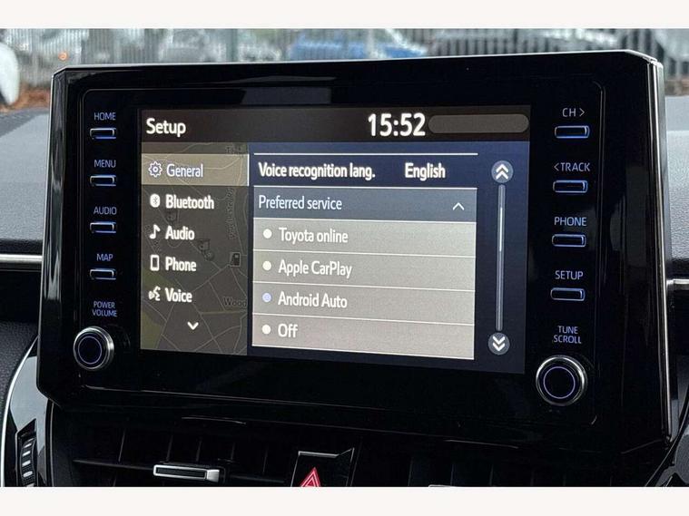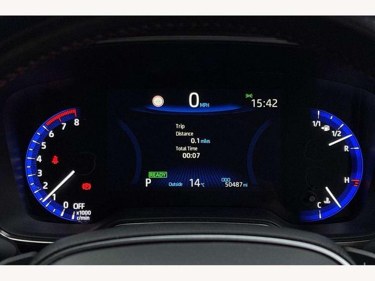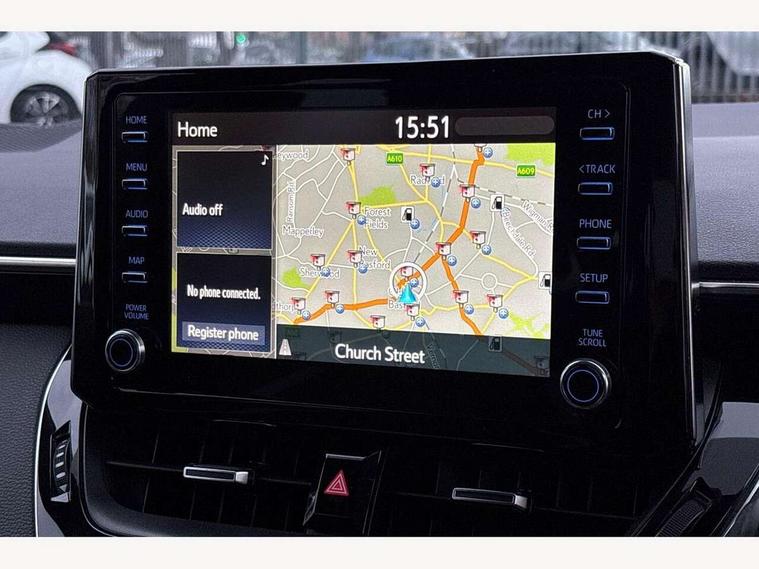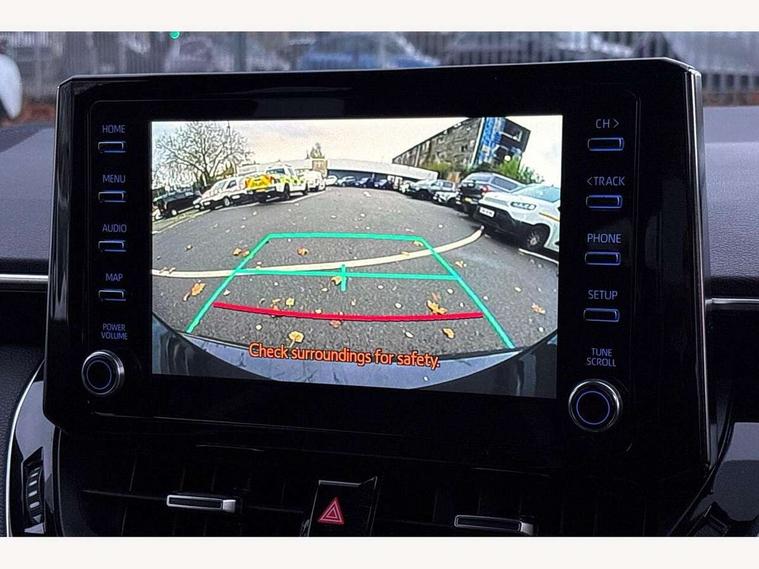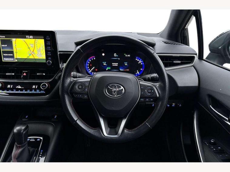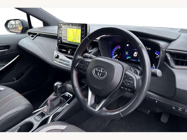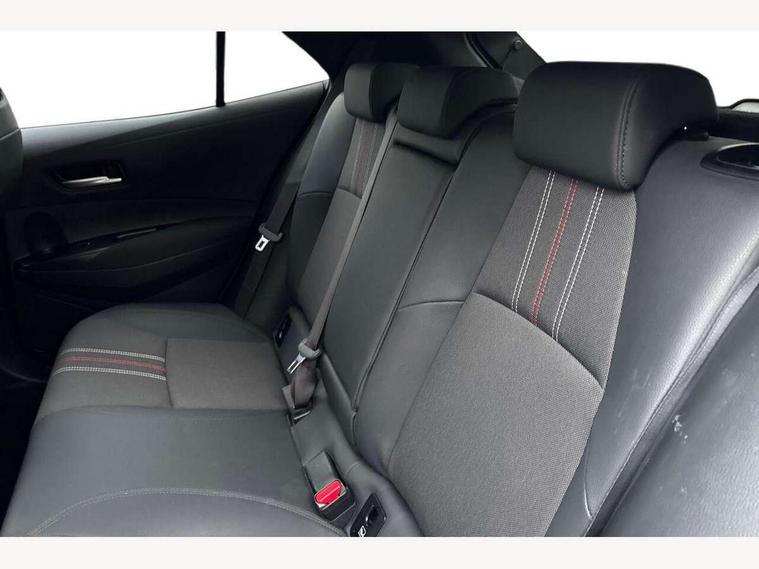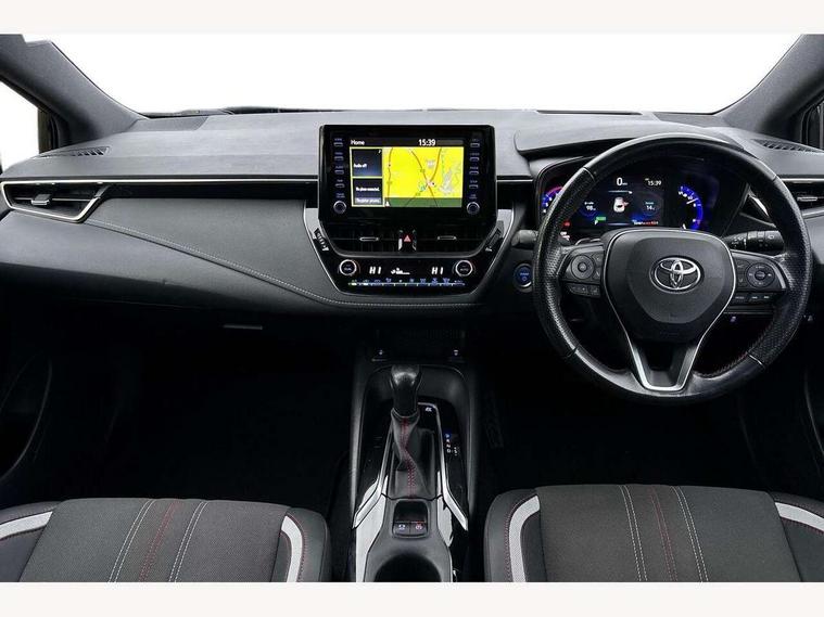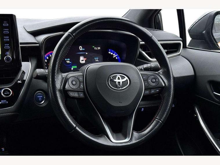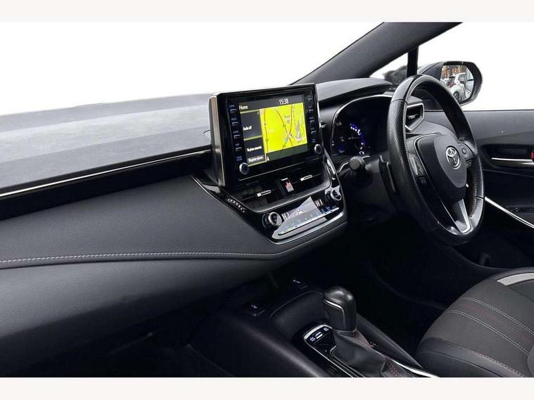 7" Multi information display screen, Bluetooth telephone connectivity, Connected car functionality upgrade, tracker, remote status and e-care, Dynamic radar cruise control (with RSA) including switch on steering wheel, E-call, Electrically assisted power steering, EV drive indicator, Head up Display, Intelligent park assist, Lane Departure Alert (LDA) switch on steering wheel, Memory on adjustable speed limiter, Push button start, Reversing camera, Smartphone integration with Apple CarPlay and Android auto, Gasoline particulate filter, Vehicle Stability Control (VSC), 6 speakers, 8" Touchscreen with MM19 Multimedia system and voice recognition, AM/FM radio, DAB Digital radio, Toyota touch 2 with go navigation system, USB and Aux in connectors + 12V front outlet, Anti-jam protection on power windows, Auto dimming inside rear view mirror, Auto up and down function on all power windows, Automatic folding mirrors, Automatic headlights with high beam assist, Black toyota logo in front, Black window frames, Body colour rear spoiler, Body coloured bumpers, Body coloured door mirrors, Body coloured outside door handles, Follow me home headlights, LED daytime running lights, LED front fog lights, LED Headlights, LED High mounted stop light, LED rear combi lights with LED lightguide, Piano black surround on lower front grille with dark chrome mesh effect, Power adjustable heated door mirrors, Power front windows, Power rear windows, Privacy glass, Rain sensing wipers, Rear bumper with satin chrome plated inserts, Rear window defogger, Rear window wiper, Reverse tilting door mirrors, Shark fin antenna, Time adjustment on intermittent wiper, Turning signal integrated indicators in door mirrors, Unique lower skirt, Unique side rocker with black insert, UV-filter on driver and passenger windows, 3 rear headrests, 3 spoke leather steering wheel + gear knob, 60/40 split folding rear seat, Adjustable speed limiter switch on steering wheel, Alcantara/partial leather upholstery, Audio, multimedia and telephone switches on steering wheel, Boot light, Centre room light, Clean air filter, Driver and front passenger personal light, Driver and passenger assist grip, Driver and passenger seatback pockets, Driver and passenger sun visor with mirror and light, Dual zone automatic air conditioning with ECO mode switch, Fabric armrests, Front and rear cup and bottle holders, Front door pockets, Front head restraints, Heated driver and front passenger seats, Illuminated entry system in room lamp, ISOFIX seat fixing (2 fixings on rear outer seats), Leather gear shift with satin chrome on gear shift console, Manual height adjustable for driver and front passenger seat, Paddle shifts, Parcel shelf, Pollen filter, Power adjustable lumbar support on driver seat, Power window switches with satin chrome inserts, Rear armrest with 2 cupholders, Rear passenger coat hooks (2), Satin chrome inside door handles, Shopping bag hooks in luggage compartment, Sliding armrest on centre console box, Slow opening glovebox with lights, Sports seats, Tilt/telescopic steering column, Voice recognition switch on steering wheel, Whiplash Injury Lessening (WIL) feature (active headrest) for seats, Parking pack - Corolla, Toyota safety sense 2 pack - Corolla, 3x3 point rear seatbelts, Adjustable driver and front passenger seat belt extender to top anchor point, Anti lock braking system + Electronic brake force distribution, Brake assist function, Downhill Assist Control (DAC), Electronic parking brake, Emergency brake light signal (EBS), Front passenger airbag on/off switch, Front seatbelt reminder, HAC - Hill start assist control, Rear seat belt reminder, Seatbelt pretensioners and force limiters, Supplemental restraint system (SRS) 7 airbags - dual driver, dual side curtain, side impact and driver knee airbags, Traction control, Tyre pressure warning system, Acoustic vehicle alert system (AVAS), Alarm with motion sensor and immobilizer, Remote central locking + deadlocks, Smart entry, Satin chrome dash trim, Soft touch texture on upper dashboard, Space saver spare wheel, Unique wheel finish with red wheel cap,