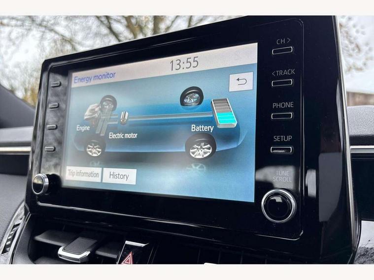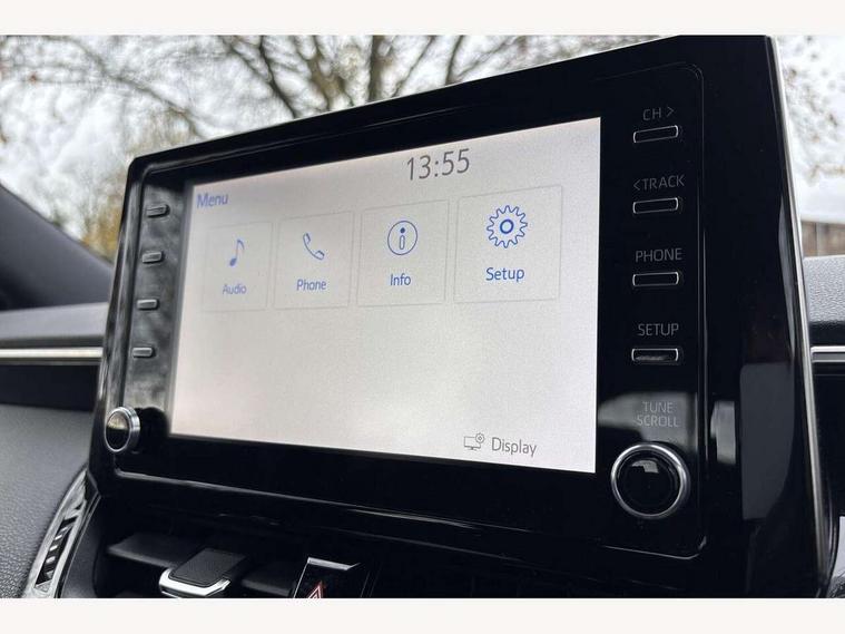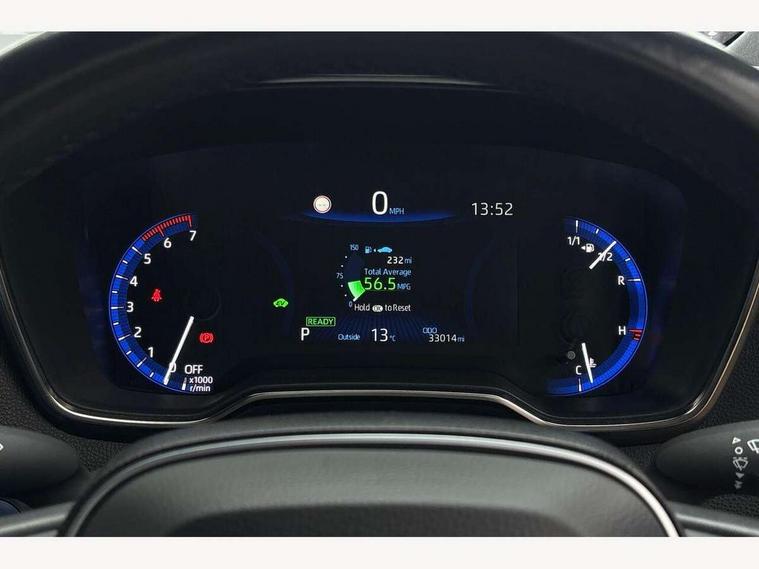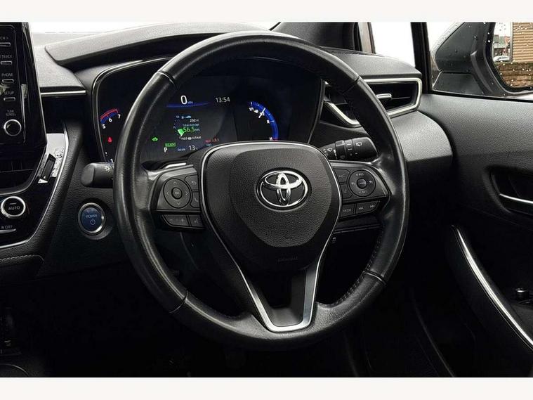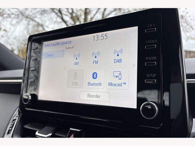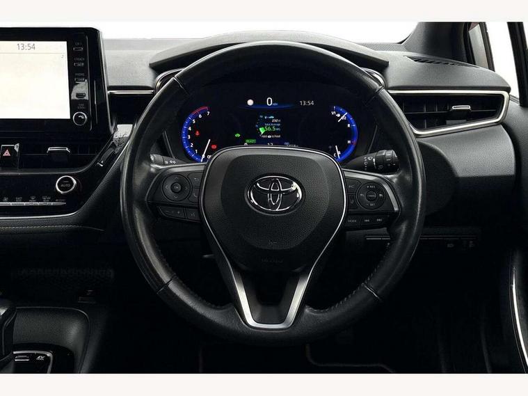 7" Multi information display screen, Bluetooth telephone connectivity, Connected car functionality upgrade, tracker, remote status and e-care, Dynamic radar cruise control (with RSA) including switch on steering wheel, E-call, Electrically assisted power steering, EV drive indicator, Lane Departure Alert (LDA) switch on steering wheel, Memory on adjustable speed limiter, Push button start, Reversing camera, Smartphone integration with Apple CarPlay and Android auto, Gasoline particulate filter, Vehicle Stability Control (VSC), 6 speakers, 8" Touchscreen with MM19 Multimedia system and voice recognition, AM/FM radio, DAB Digital radio, USB and Aux in connectors + 12V front outlet, Anti-jam protection on power windows, Auto up and down function on all power windows, Automatic headlights with high beam assist, Black metallic surround on lower front grille, Black toyota logo in front, Black window frames, Body colour rear spoiler, Body coloured bumpers, Body coloured door mirrors, Body coloured outside door handles, Follow me home headlights, LED daytime running lights, LED front fog lights, LED Headlights, LED High mounted stop light, Manual day/night rear view mirror, Power adjustable heated door mirrors, Power front windows, Power rear windows, Rain sensor, Rear side wing doors, Rear window defogger, Rear window wiper, Shark fin antenna, Time adjustment on intermittent wiper, Turning signal integrated indicators in door mirrors, Unique lower skirt, Unique side rocker with black insert, UV-filter on driver and passenger windows, 3 rear headrests, 3 seat bench in 2nd row, 3 spoke leather steering wheel + gear knob, 60/40 split folding rear seat, Adjustable speed limiter switch on steering wheel, Audio, multimedia and telephone switches on steering wheel, Boot light, Centre room light, Clean air filter, Driver and front passenger personal light, Driver and passenger assist grip, Driver and passenger sun visor with mirror and light, Dual zone automatic air conditioning with ECO mode switch, Fabric armrests, Front and rear cup and bottle holders, Front door pockets, Front head restraints, Front passenger seat, Heated driver and front passenger seats, Illuminated entry system in room lamp, ISOFIX seat fixing (2 fixings on rear outer seats), Leather gear shift with satin chrome on gear shift console, Manual height adjustable for driver and front passenger seat, Parcel shelf, Passenger seat back pocket, Pollen filter, Power adjustable lumbar support on driver seat, Power window switches with satin chrome inserts, Quilted fabric upholstery with grey stitches seats, Rear armrest with 2 cupholders, Rear passenger coat hooks (2), Satin chrome inside door handles, Shopping bag hooks in luggage compartment, Sliding armrest on centre console box, Slow opening glovebox with lights, Tilt/telescopic steering column, Voice recognition switch on steering wheel, Whiplash Injury Lessening (WIL) feature (active headrest) for seats, Toyota safety sense 2 pack - Corolla, 3x3 point rear seatbelts, Adjustable driver and front passenger seat belt extender to top anchor point, Anti lock braking system + Electronic brake force distribution, Brake assist function, Child locks on rear doors, Downhill Assist Control (DAC), Electronic parking brake, Emergency brake light signal (EBS), Front passenger airbag on/off switch, Front seatbelt reminder, HAC - Hill start assist control, Rear seat belt reminder, Seatbelt pretensioners and force limiters, Supplemental restraint system (SRS) 7 airbags - dual driver, dual side curtain, side impact and driver knee airbags, Traction control, Tyre pressure warning system, Acoustic vehicle alert system (AVAS), Alarm with motion sensor and immobilizer, Remote central locking + deadlocks, Satin chrome dash trim, Soft touch texture on upper dashboard, Unique wheel finish with red wheel cap,