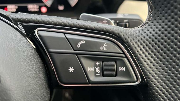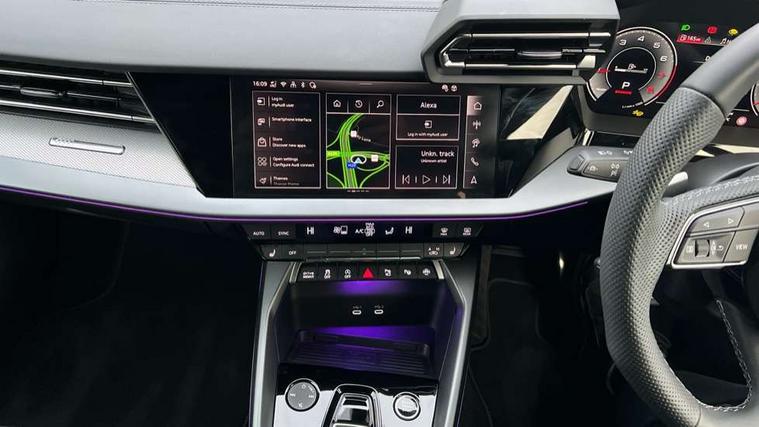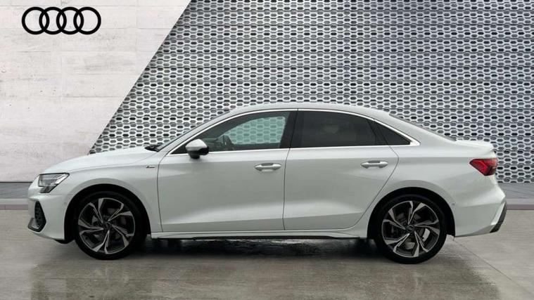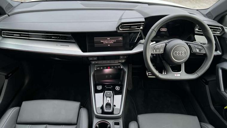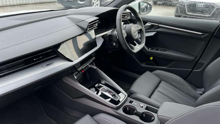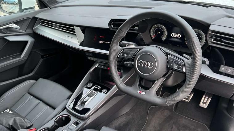 Adjustable speed limiter, Audi drive select, Audi smartphone interface with app store includes wireless Apple carplay, Android auto and Amazon alexa integration, Audi virtual cockpit plus - 12.3" full HD resolution dynamic digital instrument cluster, Automatic start/stop system with recuperation, Bluetooth interface, Camera based traffic sign recognition, Collision avoidance assistant, Cruise control, Distraction and Fatigue warning, e-Call (emergency call), Electromechanical power speed sensitive steering, Emergency assist, Lane departure warning system, MMI Navigation Plus with high resolution 10.1" colour touch screen display, Park Assist with parking system Plus, Service indicator, Trip computer, Voice control system with natural language interaction, Sports suspension, Audi Phonebox light with wireless charging, Audi sound system - 10 loudspeakers including centre loudspeaker and subwoofer, DAB Digital radio, USB ports with charging function in the rear, Acoustic glass windscreen, All weather light, Aluminium window trim, Auto dimming frameless rear view mirror, Automatic dynamic range control, Body colour exterior mirrors, Chrome exhaust tailpipes, Dipped beam, main beam, position light and turning light, Electrically adjustable/heated/folding/auto dimming door mirrors with integrated LED indications + kerb view function for passenger side, Exterior model badging, Front and rear side air inlets in grained matt black with dark liquid chrome frame, Front electric windows, Front radiator grill in high gloss dark chrome, Heat insulating glass windscreen, Illuminated door sills with aluminium inserts at the front with S logo, Intersection light, LED 3rd brake light, LED brake lights, LED daytime running x3, LED headlights with LED rear lights and dynamic rear indicators, LED rear number plate lights, LED reverse light, LED tail lights, Light and rain sensors, Manoeuvring light, Motorway light, Privacy glass - dark tinted rear window, rear door and side windows, Rear boot, Rear diffuser and grill in grained matt black with inlay in dark liquid chrome, Rear electric windows, Rear side wing doors, S line bumpers, Side S line emblems on front wings, Side sill trim in dark liquid chrome, Static Cornering lights, 12V socket and storage compartment in front centre console, 3 seat bench in 2nd row, 3 spoke flat bottomed leather multifunction sport steering wheel with gear shift paddles, 3-zone deluxe automatic air conditioning, 4 way electrically adjustable lumbar support for driver and front passenger, 40/20/40 split folding rear seat bench, Black cloth headlining, Black front and rear floor mats, Front and rear centre armrest in artificial leather with contrasting stitching on armrests and instrument panel, Front and rear headrests, Heated front seats, Height and reach adjustable steering wheel, Manual boot compartment lid, Manually adjustable front seats, Rear centre armrest with cupholder, S badging on the steering wheel, Seat side bolsters, Single front passenger seat, Stainless steel pedals and front footrest in black, Twin leather upholstery with front sports seats S embossed logo, Aluminium interior elements pack - A3, Multi-coloured LED interior lighting package with Multi-coloured contour lighting of instrument panel - A3, 3x3 point rear seat belts, Driver and front passenger airbag with passenger airbag deactivation, Electronic Stabilisation Control (ESC) including ABS, ASR and EDL, First aid kit with warning triangle and 2 safety vests, Front side airbags with head airbags and interaction airbag, Hill hold assist, Pre-sense front with pedestrian and cyclist detection, Seatbelt monitoring, Tyre pressure loss indicator, Anti theft alarm, Anti-theft wheel bolts, Electronically operated child locks, Immobiliser, Remote central locking with safelock, Black dashboard, Inlay in dark aluminium spectrum,