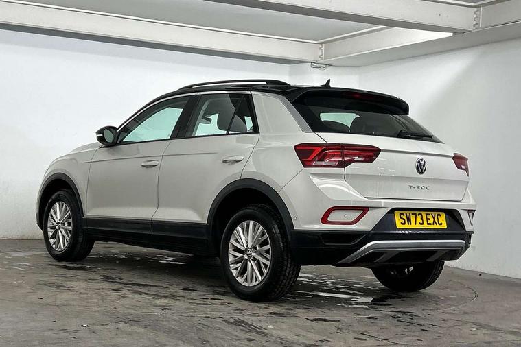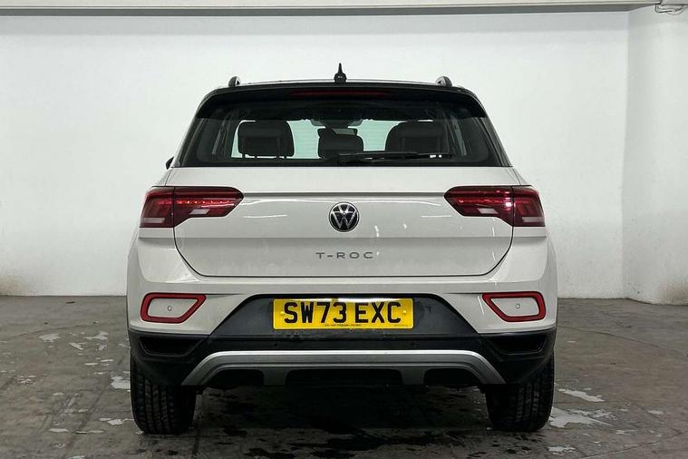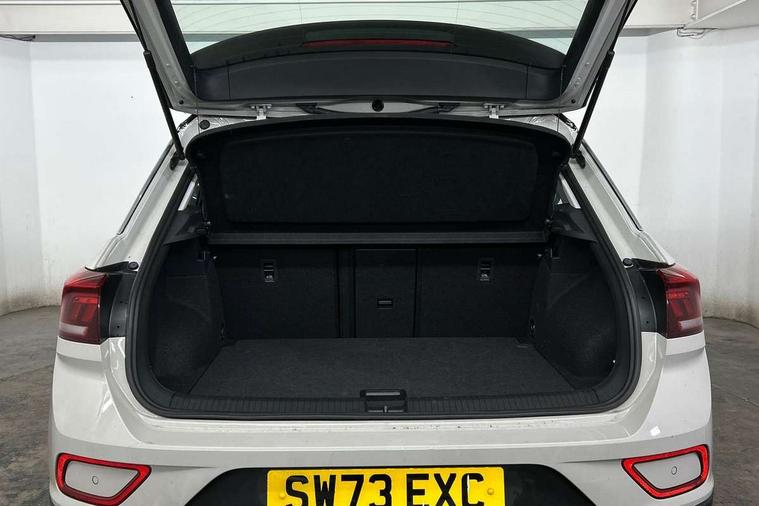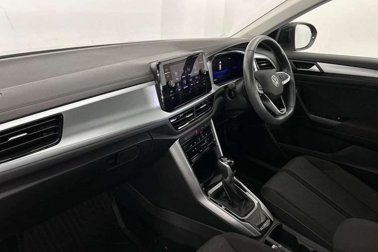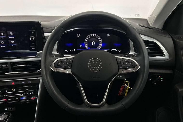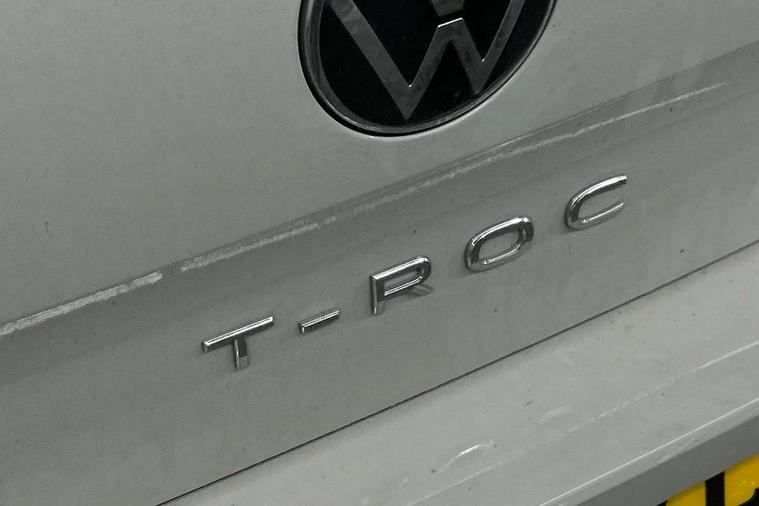 Advanced driver attention and drowsiness monitor, Bluetooth mobile phone interface, Driver tips and journey analysis, Emergency call service, Lane keeping system Lane Assist, Modified key software - reduce switch off time for key status change to Long no motion, Online services, Park assist including front and rear parking sensors, Power assisted speed sensitive steering, Service interval indicator, Tailgate/trunk lid release from outside, Think blue trainer driver tips and journey analysis, Warning sound and light for front seatbelts unfastened, Wireless app connect, Battery regeneration during braking, Front shock absorption, Rear shock absorption chassis with increased ride height, Start/stop function with battery regeneration, DAB Digital radio, Diversity antenna for FM reception, Music playback - MP3, WMA and AAC files, Premium USB cable in choice of either Apple or Android smartphone compatibility, SD card slot, Simultaneous pairing of 2 compatible mobile devices, Title and cover art display, We Connect and We Connect Plus functionality, 3rd brake light, Auto dimming interior rear view mirror, Automatic hazard lights activation under emergency braking, Automatic headlight control with LED separate daytime running lights with coming/leaving home function, Black roof rails, Body coloured bumpers and radiator grille with chrome trim and front fog lamps with chrome bezel, Body coloured exterior mirror housings and door handles, Extended roof spoiler, Exterior mirrors aspherical on driver side, convex on front passenger side, External USB type C socket and charging sockets, Front windscreen wiper with intermittent wipe and 4 position delay, Heated rear window, LED rear combination lamps, LED rear number plate lights, LED tail lamp rear comination lamps, Power windows with comfort operation and circuit breaker, Rain sensor, Rear exhaust tailpipe, Rear fog light on one side and reversing lights on both sides, Rear side wing doors, Rear wash/wipe with intermittent wipe setting, Remote electrically foldable door mirrors, puddle lights and reverse activated passenger's door mirror, 12V power socket in centre console, 3 rear head restraints, 3 seat bench in 2nd row, 4 load lashing points in luggage compartment, Air care climatronic air conditoning system with active combination filter and 2-zone temperature control, Ambient lighting with mirror logo projection, Cloth upholstery, Door and side trim panel in cloth, Drawer under drivers seat, Driver/front passenger seat height adjustment, Front centre armrest, Front comfort sports seats, Front cupholders x 2, Front reading light, Instrument lighting, white adjustable panel illumination, Interior light delay, Isofix child seat preparation, Leather gearshift handle, Load-through provision with cup holder when folded down ('Unsplit rear seat bench, split folding backrest, with centre armrest), Luggage compartment lighting, Lumbar support for driver's and front passengers seat, Non-folding front passenger seat backrest, Single front passenger seat, Storage compartment in left and right luggage area, Storage compartment in rear doors, Storage compartments in driver and front passenger doors, Sunvisors with illuminated vanity mirrors, Variable boot floor, height adjustable and removable, Driver assistance pack without proactive passenger protection - T-Roc, 3 point height adj front seatbelts + pretensioners, 3 point seatbelts in outer rear with ECE label, ABS, Child locks on rear doors, Driver and front passenger airbag with front passenger airbag deactivation, Driver and front passenger safety-optimised head restraints, Drivers seatbelt reminder, Electronic parking brake, Electronic Stability Control (ESC) inc EDL (Electronic Differential Lock) and ASR (Traction Control), Front and rear passengers curtain airbag system including front side airbags, Front assist with city emergency braking and pedestrian monitoring, Front disc brakes, Front seat side impact airbags, Hill start assist, Predictive pedestrian protection, Rear disc brakes, Two tone horn, Tyre pressure loss indicator, Volkswagen roadside assistance, Alarm with interior protection, Anti-theft alarm system with interior monitoring, backup horn, and towing protection, Remote central locking with SAFELOCK, radio remote control with 2 remote control folding keys, Pewter matt decorative inserts for intrument panel, centre console and door panels at the front, Trims for alloy wheels,