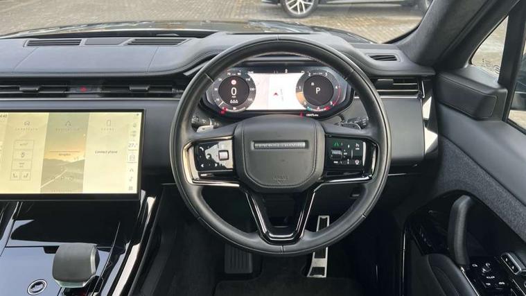 13.1" Touchscreen, 3D 360 degree surround camera with wade sensing, Adaptive cruise control with steering assist, Android Auto, Apple car play, Blind spot assist, Bluetooth connectivity streaming, Driver condition response, Eco mode, Electric power assisted steering (EPAS), Front and rear parking aid, Head up Display, Interactive Driver display instrument cluster, Lane departure warning system, Lane keep assist, Occupant protection assist, Park assist, Push button start, Rear collision monitor, Rear traffic monitor, Remote, Traffic sign recognition with adaptive speed limiter, Trip computer, Wireless device charging with phone signal booster, 8 speed automatic transmission, Adaptive dynamics, All wheel drive system, Automatic access height, Dynamic air suspension, Terrain Response 2, DAB Radio (Digital Audio Broadcasting), Incontrol protect - SOS emergency call with automatic collision detection, optimised assistance call and Incontrol remote app essential, Pivi pro connected, USB/aux input socket, Adaptive brake lights, Automatic headlight levelling, Automatic headlights, Centre high mounted stop light, ClearSight interior rear view mirror, Digital LED headlights with signature DRL and image projection, Electric heated/power fold memory door mirrors with approach lights and auto dimming driver side, Electric windows with one touch open/close and anti trap, Flush deployable exterior door handles, Follow me home lighting, Front and rear recovery eyes, Headlight power wash, Heated rear window, Heated washer jets, Heated windscreen, Illuminated metal tread plates with Autobiography script, LED tail lights, Metal load space scuff plates, Rain sensing windscreen wipers, Rear animated directional indicators, Rear fog lights, Rear side wing doors, Rear wash/wipe, Remote window closing, Side repeater indicators in mirror, Sliding panoramic roof with electric sunblind, Trailer stability assist, Winter wiper park position, 22 way heated and ventilated front and power recline rear seats, massage electric memory front seats and front and rear winged headrests, 3 seat bench in 2nd row, 60:40 seats with power recline and loadthrough, Air quality sensor, Auto air recirculation, Bright metal foot pedals, Centre console with armrest, Customer configurable single point entry, Driver's footrest, Easy boot loading, Ebony console door armrests and seatbelts, Electric adjustable steering column, Four zone climate control, Front and rear cupholders, Front door storage space, Front map lights, Front seat back map pockets, Front stowage pocket, Front/rear passenger grab handles, Gearshift paddles, Heated steering wheel, Isofix child seat preparation, Loadspace cover, Loadspace floor partition, Loadspace Hook, Loadspace light, Loadspace mounting provisions, Lockable glovebox, Luggage tie-downs in loadspace, Multifunction steering wheel, Pollen filter, Power socket, Premium cabin lighting, Rear centre armrest, Rear ISOFIX, Single front passenger seat, Soft close doors, SV bespoke carpet mats, Three 12V accessory power outlets, Twin blade sunvisors with Illuminated vanity mirrors, Upper secondary glovebox, Online pack with data plan - Range Rover Sport, 3 point seatbelts on all seats, Anti-lock braking system (ABS), Brake pre-fill technology, Configurable autolock, Cornering brake control (CBC), DSC - Dynamic Stability Control, EBD - Electronic brakeforce distribution, Electric parking brake, Electronic traction control, Emergency braking, Front seatbelt pretensioners, Front side airbags, Height adjustable front seatbelts, Hill descent control, Hill launch assist, Illuminated seat belt buckles, Low traction launch, Passenger seat occupant detector with front airbags, Power operated child locks, Roll stability control, Seatbelt warning, TPMS (Tyre pressure monitoring system), Immobiliser, Intrusion sensor, Keyless entry, Locking wheel nuts, Perimetric and volumetric anti theft alarm, Remote locking, Moonlight noble chrome interior finishers,